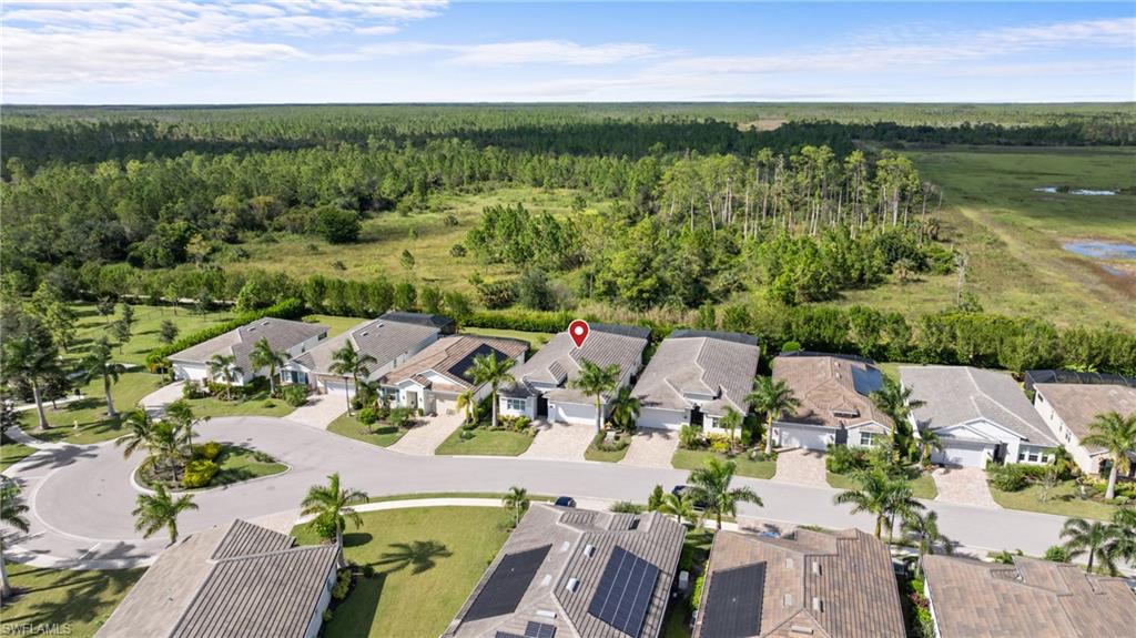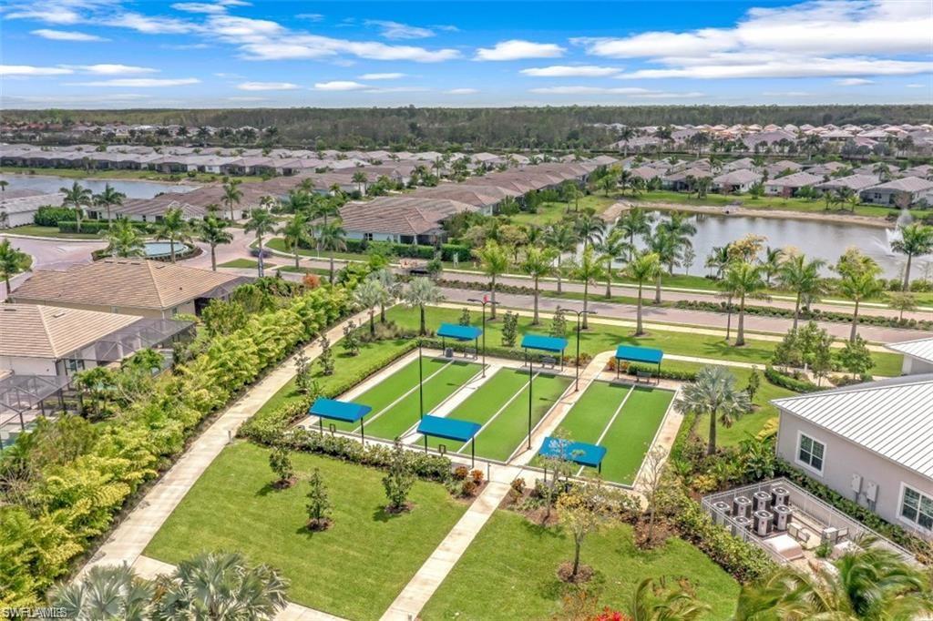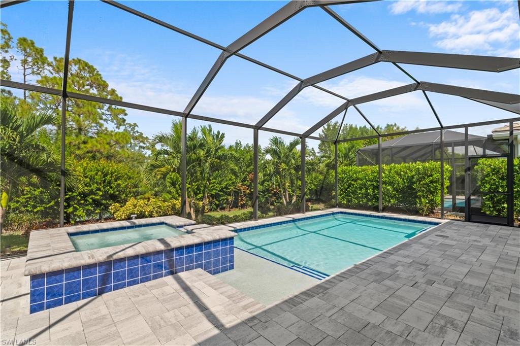 Shows like a model home! This stunning 3 bedroom plus den single family home is a testament to meticulous craftsmanship and thoughtful design with a perfect blend of luxury & functionality. Step into the inviting foyer and be greeted by the warmth of custom millwork with custom mirror accents and wood look tile flooring which flow throughout. The attention to detail is immediately apparent as you move through the open-concept living area into the private lanai with heated pool and raised spa. The spacious kitchen offers quartz countertops, quartz backsplash, over and under cabinet lighting, and stainess steel appliances which opens up to the large eat-in kitchen area and great room complete with floating built in cabinets. The master suite is complete with a luxurious bath with dual sinks, soaking tub, walk in shower, and a large walk in closet with quick access to the laundry to room. Step outside into your private paradise with an extended lanai that leads to a sparkling pool and spa which is surrounded by lush landscaping. The extra-deep garage (33’x20’) provides ample space for both parking and storage. A long list of special features include: plantation shutters on all windows; wood look tile floors throughout (no carpet anywhere); custom millwork and moldings throughout; upgraded lights & fans; screened front porch; and more! Enjoy peace of mind in a non-flood zone and take advantage of low HOA dues of just $1,081/quarter (includes home landscaping & irrigation) while still gaining access to all of Seasons at Bonita’s resort-style amenities which include a stunning clubhouse, resort pool with beach entry and lap lanes, hot tub, fitness center, three tennis courts, eight pickleball courts, dog park, and walking trails!