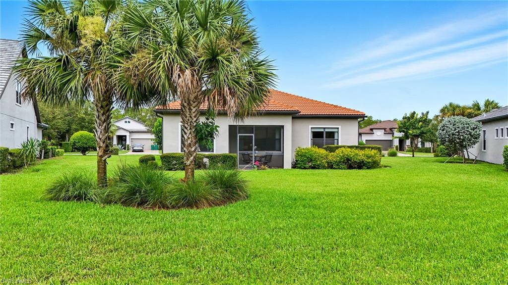 This is a unique opportunity to experience resort-style living in Greyhawk at Golf Club of the Everglades. Set on a park-like and oversized 10,000 square-foot lot, you will find this charming and carefully maintained home, featuring a split-bedroom floor plan, versatile den with French doors, bright sunroom, covered lanai, and abundant storage space. Considering your own pool? There is more than enough space to bring your vision to life. In addition to the casually elegant Amenity Center with its restaurant and bar, outdoor Bahama bar, pool with lap lanes, tennis, pickleball, bocce, and fitness center with movement studio, all homeowners enjoy social membership at the Golf Club of the Everglades with an additional bar and restaurant (full golf membership is optional). This gated community has a dynamic social and sports calendar to enhance your Southwest Florida lifestyle.