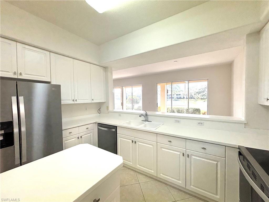 This Vineyards home has stunning LAKE views and an array of recent upgrades, making it move-in ready. Featuring brand NEW flooring, this home also boasts a NEW water heater, NEW air conditioner, NEW fixtures, NEW bathroom faucet, NEW fans and NEW Stainless Steel kitchen. The spacious, neutral interiors create an inviting atmosphere and serve as the perfect canvas for your unique decorating style. Enjoy the convenience of a first-floor residence—no stairs to climb—and a generous TWO CAR garage providing ample storage and parking. The large DEN can be used as a 3rd bedroom. The kitchen and foyer are beautifully tiled on the diagonal, complemented by an elegant decorative inlay in the foyer. The kitchen is enhanced with upgraded easy pullout drawers, adding both style and functionality. Additional upgrades include a NEWER roof and gutters installed in 2020, offering low maintenance living and peace of mind for years to come. Accessibility is effortless thanks to the first-floor location, and the home’s open layout makes entertaining and daily living a breeze. This well-maintained residence is truly a blank canvas, ready for your personal touch. Located in one of Naples’ most sought-after communities, The Vineyard’s offers optional membership to the award-winning Vineyards Country Club. Take advantage of this opportunity to enjoy a vibrant community lifestyle with all the modern luxuries and conveniences you deserve.