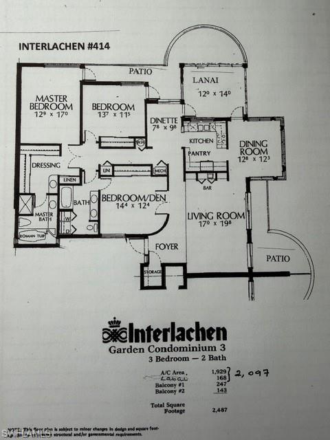 A spacious and very popular Interlachen first floor, 3-bedroom condo featuring two patios with lake, fountain and golf course views. Recently freshly painted and with tile flooring throughout, the floor plan offers a breakfast room, a separate dining room, a large living room with a wet bar, and a glass enclosed lanai with sliders to one of the patios. All rooms, with the exception of bedroom 3/den, enjoy access to outdoor patios with beautiful views of the golf course and lake. Interlachen is a well managed, low-density community, noted for its unique 'Frank Lloyd Wright inspired' architecture with a sparkling circular communal pool surrounded by a moat set amongst tropical landscaping. This condo building recently had a new roof and suffered no damage or flooding from recent storms. Situated just across Pelican Bay Boulevard are the trams and walkways leading to 3 miles of white sand beaches with beach furniture provided and two private beachfront bars and restaurants. Pelican Bay offers an active lifestyle where owners can enjoy 18 Har-tru tennis courts with an active tennis program, new pickleball courts, a full service gym with personal trainers and group classes, sailing and kayaking, and a community center with many activities for all interest types.