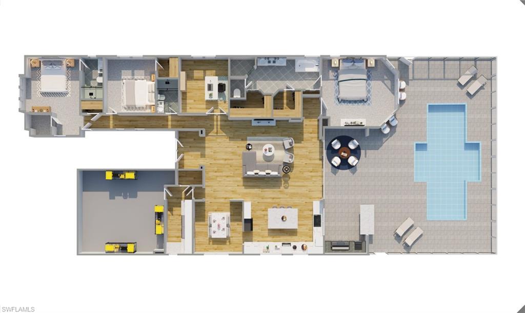 This stunning, highly sought-after Jasmine Grande home, offers exceptional detail and a breathtaking private water view in the coveted Isles of Collier Preserve. Are you ready to embrace the ultimate Naples lifestyle from the comfort of your own home? This property features a spacious lanai with ample room to live, dine, and soak in the sunshine. The expansive covered outdoor area includes a custom kitchen with a built-in grill, fridge, sink, and a generous island for dining. Cool off in the large private pool or unwind in the spa—you're bound to want to spend the entire day outdoors! Upon entering the home you'll immediately be captivated by the open-concept design and beautiful wood-look tile flooring throughout. The great room boasts soaring double tray ceilings and a custom entertainment center, designed just like the model home. The gourmet kitchen is a chef's dream, featuring a large island with quartz countertops, built-in oven and microwave, a separate cooktop, and an additional beverage fridge. The charming pass-through window to the outdoor kitchen makes entertaining family and guests a breeze. The spacious primary suite offers bay windows and an ensuite bathroom with his-and-her walk-in closets, dual vanities with granite countertops, a separate soaking tub, and a frameless glass walk-in shower. The versatile den is ideal for a home office or additional living space, while the elegant formal dining area provides the perfect setting for dinner parties or a stylish bar area. Each guest room includes a walk-in closet for added convenience. This home is equipped with impact-resistant windows and sliders throughout the home, electric shades in the great room and primary suite, a new Polyaspartic coating on the garage floor with a transferrable lifetime warranty, an air-conditioned garage, and a fresh exterior paint job. Located just minutes from downtown Naples and close to Bayshore, the Isles of Collier Preserve is a vibrant, resort-style community that offers endless amenities. Whether you're a pickleball or tennis enthusiast, you'll love the 14 pickleball courts, 6 Har-Tru tennis courts, and 8 miles of kayaking and hiking trails, including community provided bikes and kayaks. Unwind at The Outlook Bar & Grill, enjoy the resort-style pool, additional lap pool, stay active in the fitness studio, or take a sunset cruise on the community's boat. This home and community truly have it all! Seller is willing to offer seller financing.