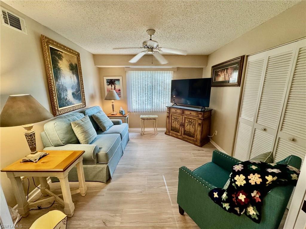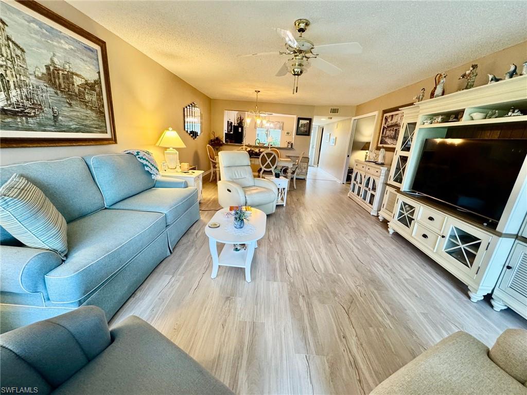 Welcome to Cranbrook Colony! One of Royal Wood's finest condo villages. This FIRST FLOOR END UNIT WITH THREE BEDROOMS AND TWO BATHS PLUS ONE-CAR DETACHED GARAGE is perfectly priced and ready for you to move in and enjoy Season 2026! Upon entering, the remodeled eat-in kitchen is to the right with a window offering lots of Florida sunshine, granite countertops and stainless steel appliances. This unit is furnished with vinyl plank flooring and tile throughout the main living areas and carpet in the bedrooms. Additional highlights include an second window in 2 bedrooms allowing extra light, a walk-in primary bedroom closet and a large laundry room with washer, dryer, and plenty of storage for your beach supplies. Enjoy your morning coffee or your favorite beverage on your private screened-in lanai overlooking the golf course or meet your new neighbors at Cranbrook's pool, tennis courts w/pickleball lines, and bocce courts or bike or drive to the clubhouse to enjoy the restaurant, fitness center, pro-shop, library, fire pit, etc. Royal Wood offers an 18-hole championship golf course w/multiple tees, 2 practice areas & walk-on privileges. Golf memberships are immediate with no waitlist & 70 brand new golf carts add to the fun! Social activities include live music, happy hours, cards, trivia, bingo, cornhole games, golf scrambles, holiday dinner dances & more! Located just 6 miles from Naples' famous 5TH AVE South, 3RD ST South & beautiful Gulf beaches, Royal Wood is just a few short miles from Naples Pickleball Center, Celebration "food truck" Park, Tin City, Sugden Park, Naples Botanical Gardens, Physicians Regional Hospital & more. Take a 15 mile drive to beautiful Isles of Capri or Marco Island and enjoy your new hometown.
