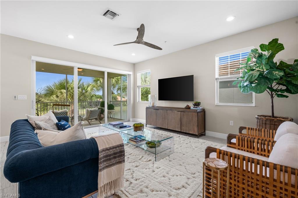 Step inside this exceptional 2020 built second-floor residence, where an open and spacious floor plan is perfectly complemented by breathtaking western sunset views and serene water vistas. The expansive lanai—offering over 200 square feet of outdoor living space—creates the ideal setting to unwind, entertain, and enjoy Florida’s spectacular evenings. This move-in-ready home features two bedrooms plus a den and encompasses 1,660 square feet of thoughtfully designed living space. The bright, open interior is perfect for both everyday living and hosting guests, with a beautifully appointed kitchen showcasing stainless steel appliances, quartz countertops, and abundant storage. The generous primary suite includes an oversized walk-in closet and a luxurious en-suite bath with modern finishes. Additional highlights include impact-resistant windows and doors, energy-efficient upgrades, and ample storage throughout. A deep one-car garage with an epoxy floor offers extra room for bikes, beach gear, or storage. Located in the gated community of Richmond Park, residents enjoy access to a clubhouse, a resort-style pool, and a sundeck. This prime North Naples location is just minutes from Founder Square, Mercato, vibrant dining & entertainment options. Vanderbilt Beach is less than a 20-minute drive, and quick access to I-75 makes travel to the airport a breeze. All that’s left to do is bring your toothbrush—your new Naples lifestyle awaits.