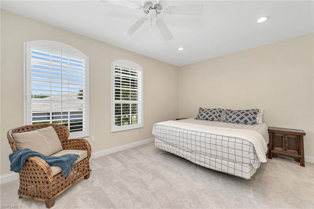 Luxury melds with nature in this rarely-available villa boasting all the modern comforts you desire in Bay Harbor at Bonita Bay. Essential updates include a newer roof, impact glass, kitchen/baths, pool heat pump and Saltwater generator. Soaring ceilings in the foyer, great room, and family room create a sense of grandeur and openness, while the wall of sliders in the rear invites natural light to filter through, bathing every corner in warmth and brightness. The expansive windows enhance the sense of space and provide breathtaking views of the lush preserve beyond, bringing the outdoors in and creating a harmonious connection with nature. A standout feature of this home is its multiple living areas, thoughtfully designed to cater to various lifestyles. Enjoy the great room for gatherings, a cozy family room for relaxation, and a versatile study/den for work or hobbies. Upstairs, a sprawling bonus room offers endless possibilities, whether as a media/recreation area/flex space to suit your needs. The first-floor primary bedroom offers a custom walk-in closet and a lavishly updated ensuite bath. Indulge in the luxurious walk-in shower with multiple shower heads, offering a spa-like experience daily. Upstairs, two generously sized guest rooms rival the primary suite in size and comfort. Each guest room features its own bath, one guest room with en-suite bath, offering unparalleled comfort and privacy for family and guests alike. The expansive screened lanai with a saltwater pool and ample seating was designed to maximize the enjoyment of Bay Harbor’s natural surroundings. Retractable awning for extra cover enhances the outdoor experience. Residents also enjoy access to a sparkling community pool and the world-class amenities of Bonita Bay. Don’t miss the opportunity to own this villa in Bay Harbor, where elegant design and natural beauty create the perfect place to call home. Home is professionally staged. Staged furniture and accessories are not for sale. Upstairs is Virtually Staged.