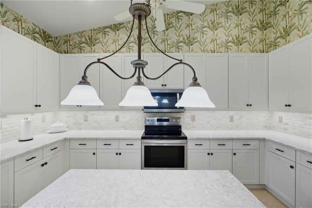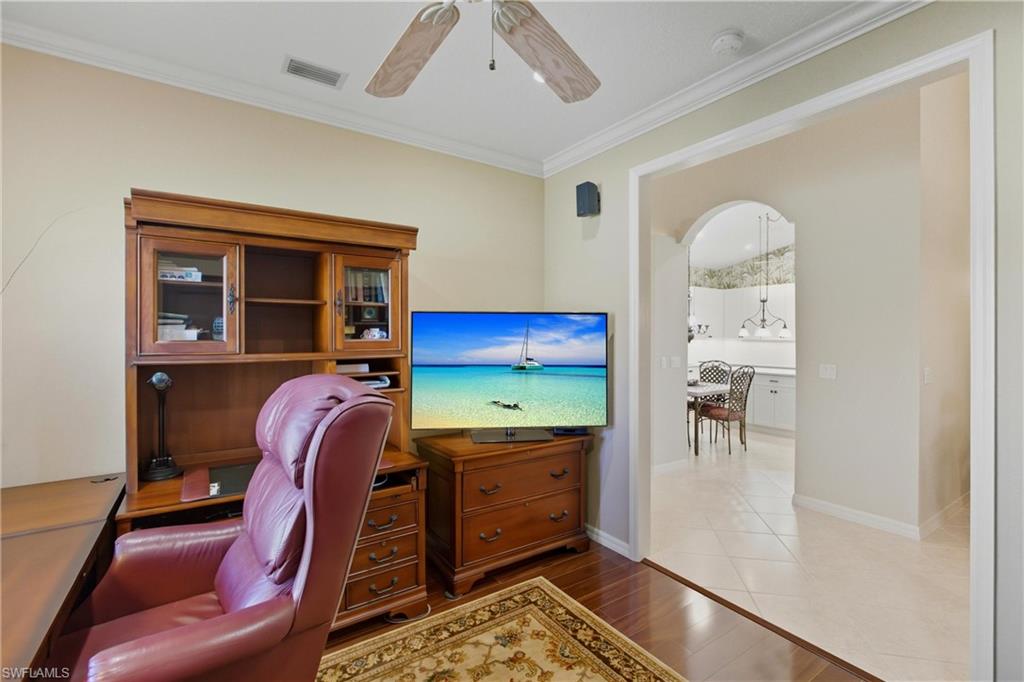 This is a rare opportunity to own the largest floor plan in Huntington Lakes, offering just under 2,000 square feet of living space and a 2-car garage. This beautifully maintained and updated coach home provides exceptional value with a spacious layout that includes two bedrooms, a den, and two full bathrooms. The interior features tile and wood flooring in the main living areas, fresh paint, and thoughtful upgrades throughout. The kitchen was completely remodeled in 2024 and now showcases high-end soft-close cabinets, upgraded lighting, quartz countertops, a tiled backsplash, stainless steel appliances, and a large island with abundant cabinet and counter space, making it perfect for both cooking and entertaining. The expansive owner’s suite includes a cozy sitting area currently used as an exercise space, private access to the lanai, and an updated bathroom with a double vanity, frameless glass shower, and a recently remodeled shower area. The screened lanai offers a peaceful setting with long lake views and a water feature, ideal for relaxing mornings or evenings. Key upgrades include a new roof installed in 2020, updated stainless steel appliances, a reverse osmosis system in the kitchen, electric shutters on the lanai, shutters on all windows, and upgraded hurricane impact windows with a lifetime warranty for added protection and peace of mind. Huntington Lakes is a gated community known for its resort-style amenities, which include a clubhouse, three pools, a fitness center with a sauna, tennis courts, pickleball courts, and more. The community is conveniently located just minutes from I75, SWFL International Airport, upscale shopping, dining, and the beautiful white sand beaches of the Gulf. This property combines space, quality, and location, making it a true gem in North Naples. Ideal for anyone searching for a North Naples condo or a well-maintained home in one of the most desirable North Naples communities.