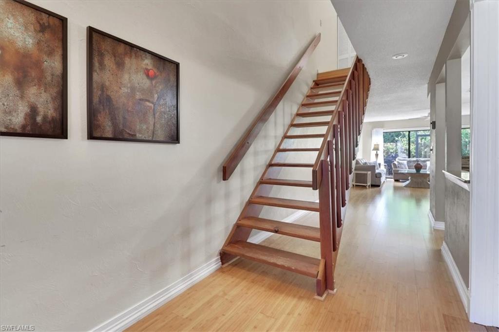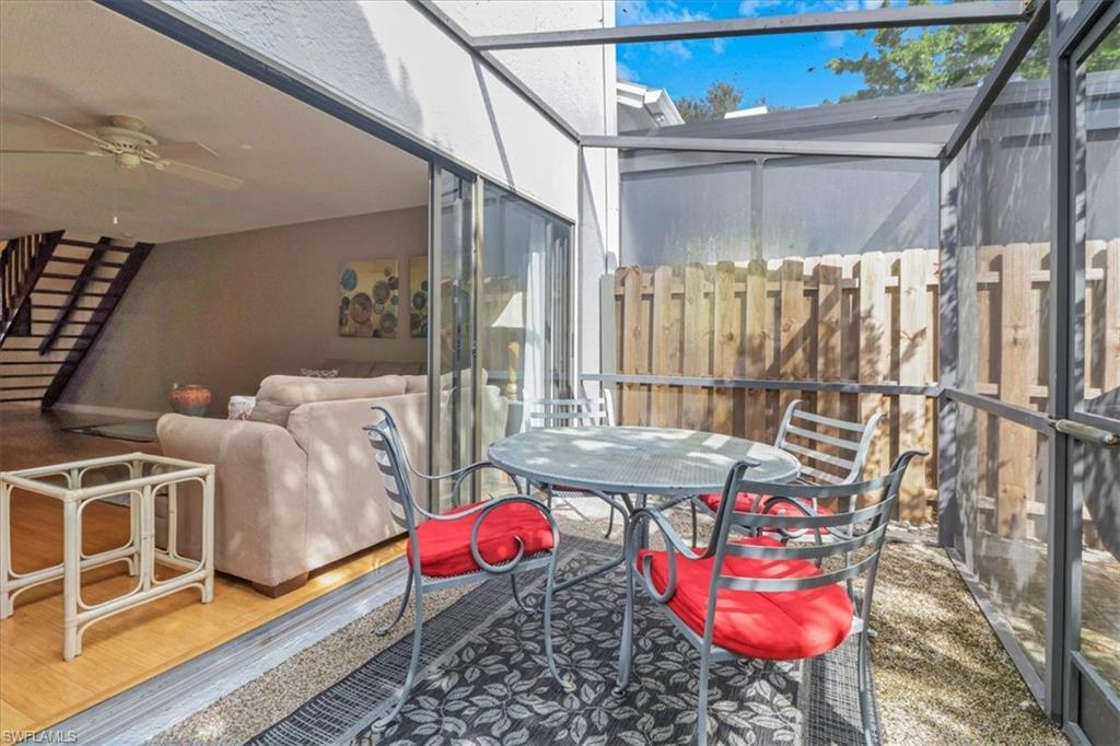 What a location in the heart of Naples! Just over 1 mile to beautiful Vanderbilt Beach & across the street from the lively Mercato which has restaurants, shops, bars, nightlife, movie theatre, multiple gyms, Whole Foods, Publix and more! This beautifully updated 2 bedroom/2.5 bath home has 2 large master suites each with their own en-suite bathrooms as well as a half bath/powder bath on the 1st floor. The home has an attached 1 car garage which is not often available in townhomes in this location. The backyard is unique in this community as it has privacy and not backing up to another home... screened in lanai and a little private oasis to enjoy the beautiful Naples weather! Home has been carefully maintained and the kitchen has stainless steel appliances, walk in pantry and granite counter top. The AC is 4 years old and recently serviced. You can also enjoy the location of this home in the community as it is just STEPS TO THE COMMUNITY POOL! Don't miss out on this home and the added privacy it offers. Pelican Ridge has 2 community heated pools and is a great place as an investor or homeowner.