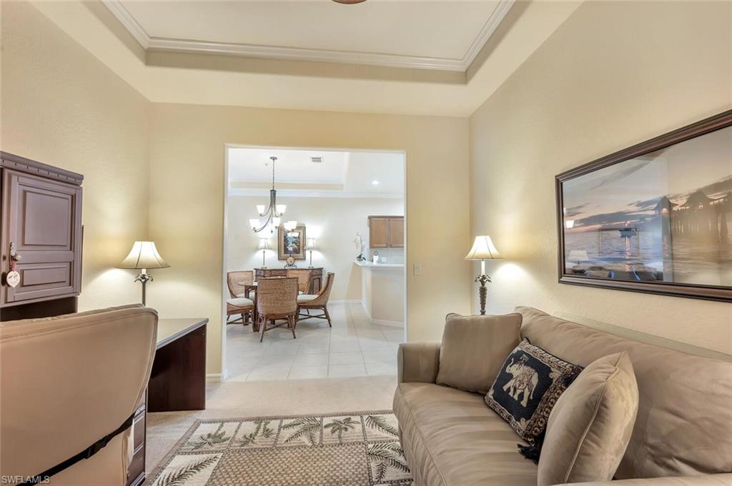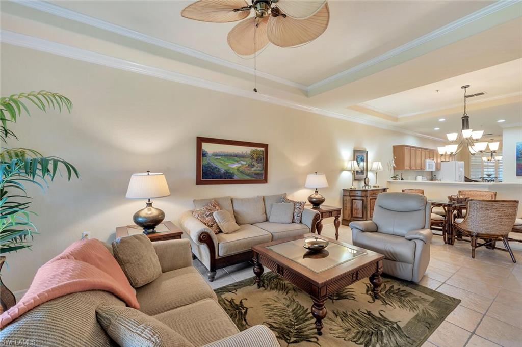 Naples Lakes Country Club – Top-Floor Springfield Model FOR SALE Experience resort-style living in this rarely available penthouse condo overlooking the 15th hole in the highly sought-after Naples Lakes Country Club. This beautifully appointed Springfield model offers 2 bedrooms, 2 baths, and a den, with an open and airy layout that’s perfect for relaxing or entertaining. Enjoy breathtaking golf course and sunset views from the spacious screened lanai, where you can watch players on the 15th fairway and green. Inside, elegant details abound — crown molding throughout, tray ceilings in the den, living room, dining room, and primary suite, plus plantation shutters and other decorative blinds that add timeless Florida charm. The residence is being offered turnkey furnished, ready for immediate enjoyment. The bright kitchen opens to the main living area, enhancing the home’s easy flow and natural light. The private two-car garage provides ample space for vehicles and storage. Located within one of Naples’ premier bundled golf communities, residents enjoy access to the Arnold Palmer–designed golf course, resort pool and spa, tennis, fitness center, dining, and a vibrant social calendar. Whether you’re a golfer, seasonal resident, or full-time Floridian, this top-floor condo combines elegance, comfort, and stunning views in a true country club setting.