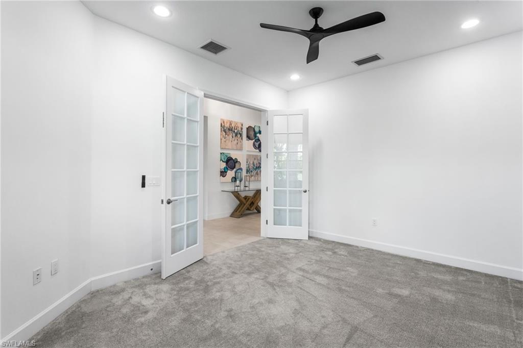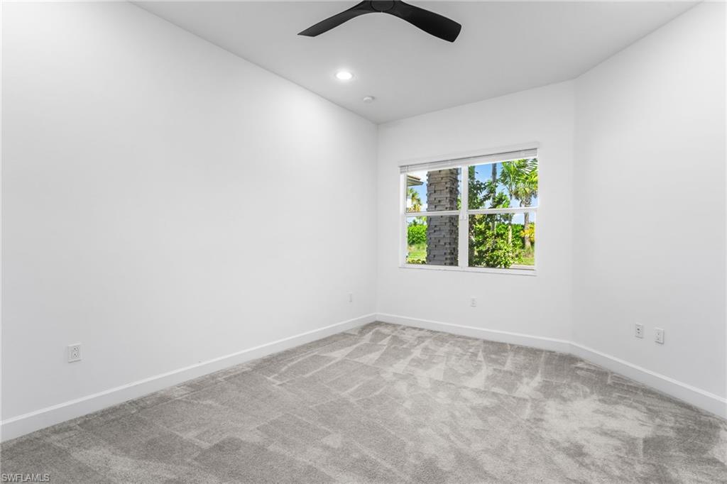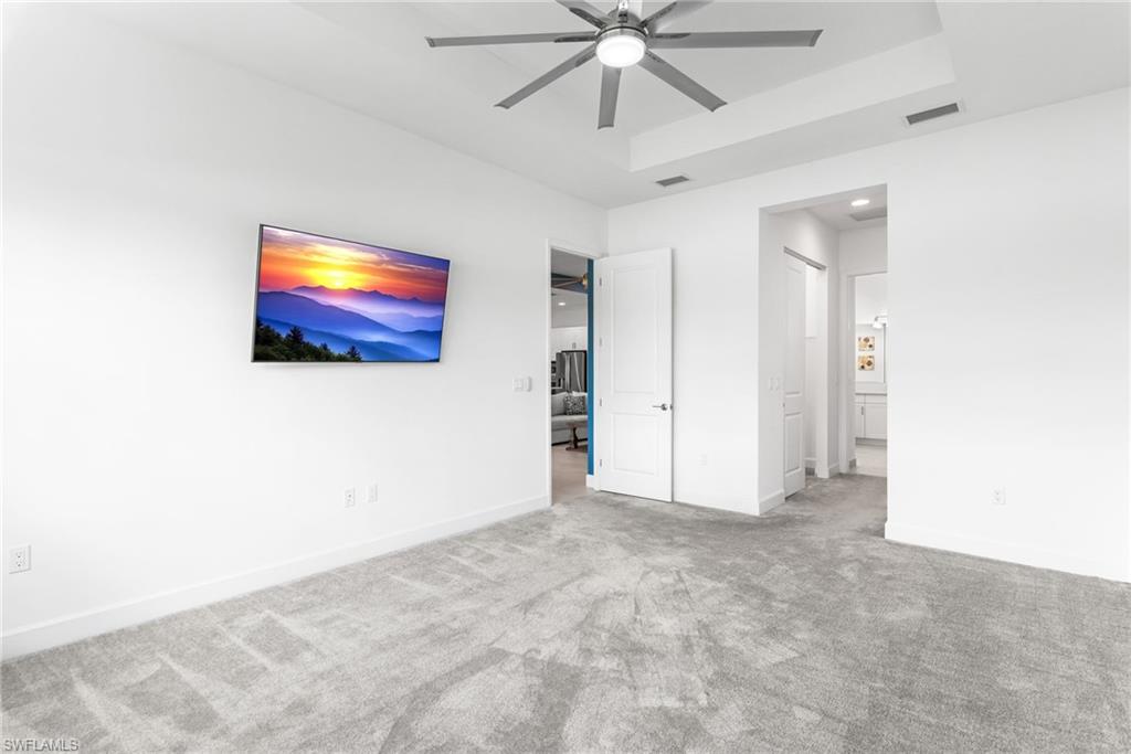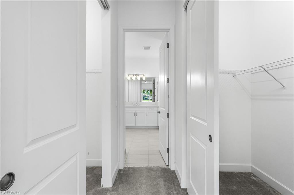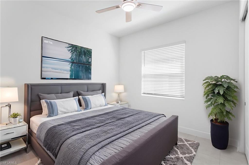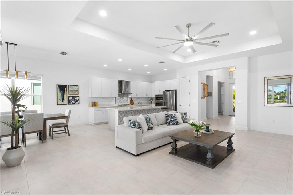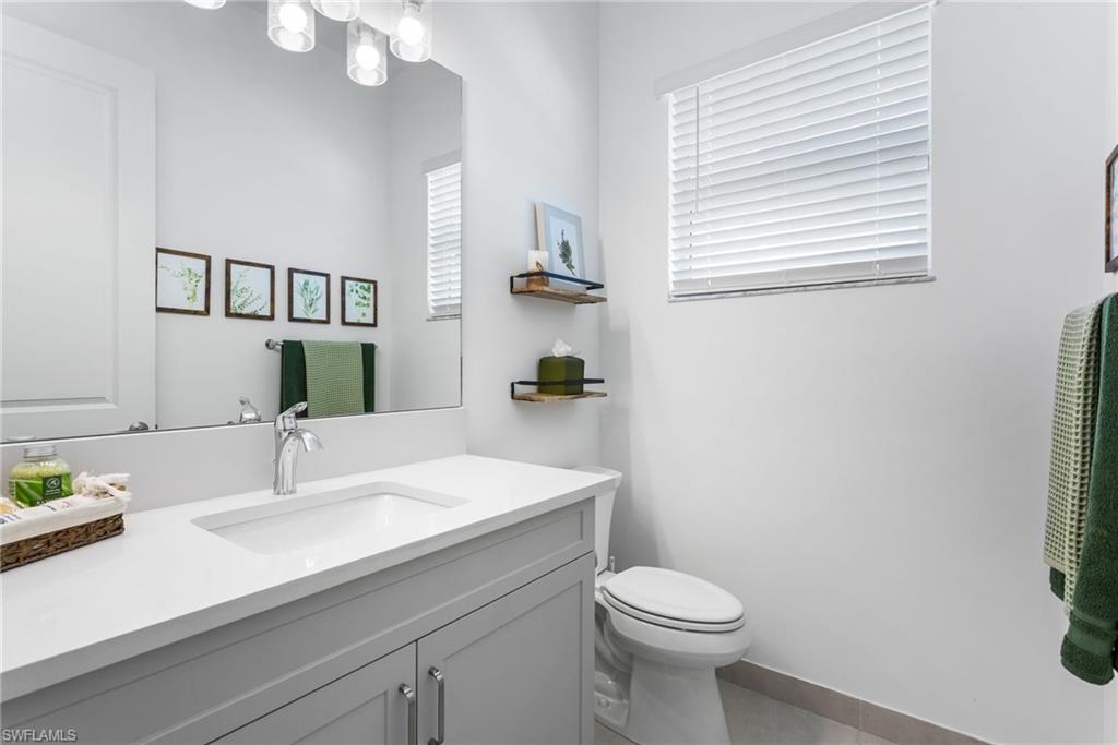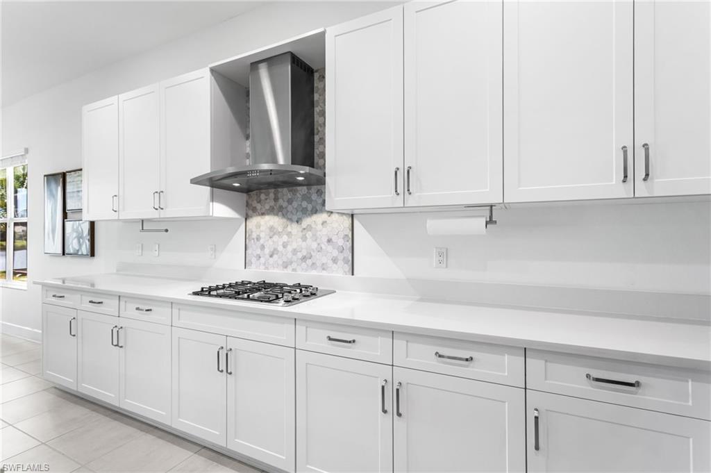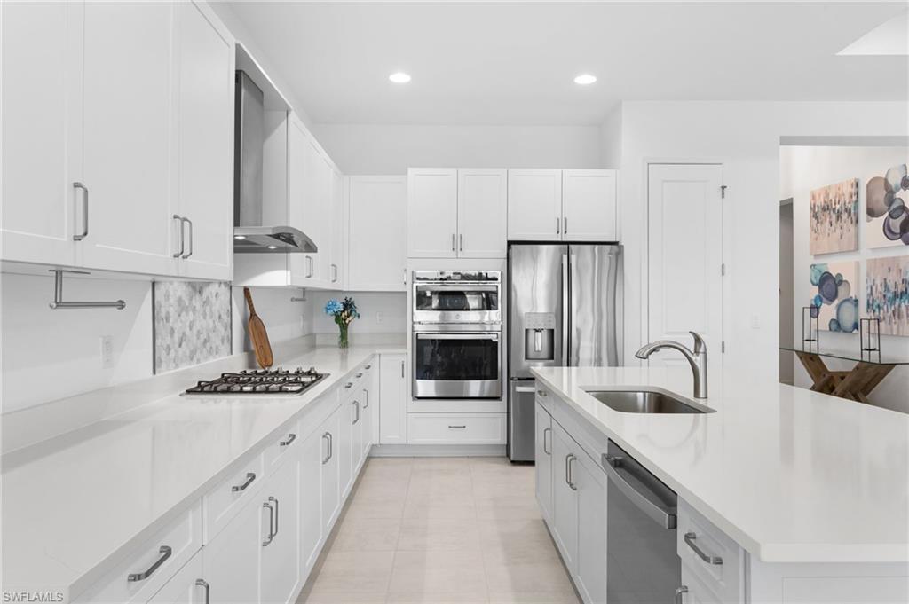 Nestled in the vibrant 55+ gated luxury enclave of Valencia Trails in Naples, this like-new GL Homes Nautilus (2022) presents resort-style living with every modern comforts. Step through dual glass entry doors into a bright, open floor plan, accompanied by custom window treatments, recessed (hi-hat) lighting, and designer fans that keep the ambiance just right. The heart of the home, the chef’s kitchen, is equipped with stainless appliances, a wall oven, a natural-gas cooktop with vented hood, upgraded cabinetry, quartz surfaces, and a striking custom backsplash that extends to the island. A rare 2½-car garage includes a dedicated bay with epoxy flooring and a climate-controlled mini-split for added comfort. Retreat to the expansive primary suite, boasting tray ceilings, two generous closets, dual vanities plus a built-in makeup station, a walk-in shower with bench and dual showerheads, a private water closet, and a spacious linen closet — luxury and practicality combined. The oversized lanai is yours for outdoor entertaining, pre-wired for TV and pre-plumbed for natural gas, ideal for grilling or a future summer kitchen, all while enjoying stunning west-facing lake sunsets; there’s even ample room to add a pool. Impact glass protects every door and window for peace of mind and lock-and-leave ease. This home also unlocks access to an active, engaged lifestyle. The community’s 43,000 sq ft clubhouse offers 8 pickleball courts, 6 tennis courts, 5 bocce courts, two card rooms, a sports lounge with billiards and poker tables, a full art studio with kiln, and a teaching kitchen that hosts professional chef-led classes. Clubs abound — Mahjong, Mexican Train, bocce, pickleball, tennis, car and coin clubs — creating endless opportunities to connect, socialize and enjoy life. With Naples’ beaches, dining and shopping just minutes away, plus Collier County’s reputation for low property tax and safety, this is the epitome of Florida lock-and-leave living done right.