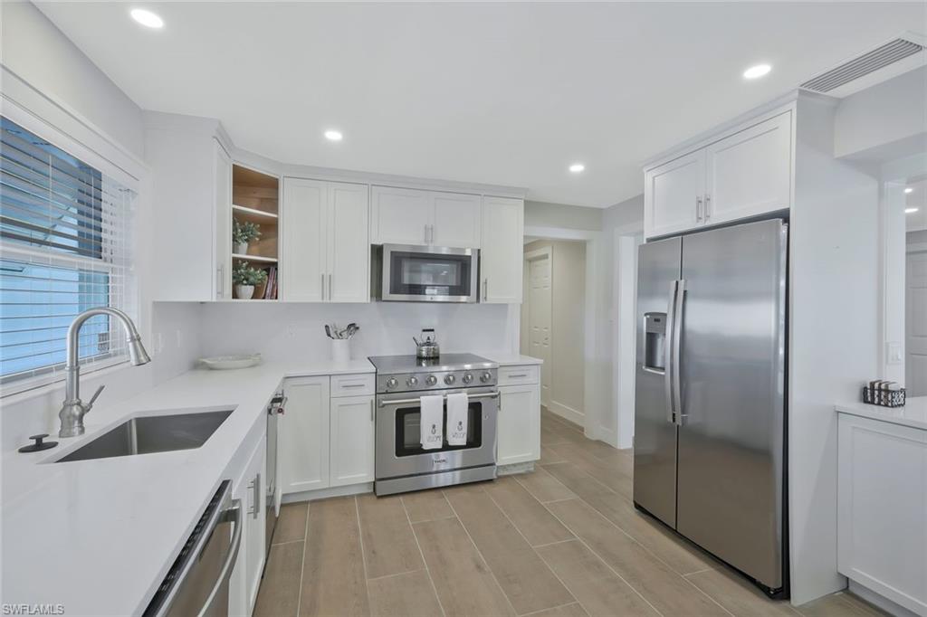Coastal Waterfront Retreat with Panoramic Estero Bay Views & Gulf Access! Delightfully decorated in a breezy coastal theme, this exceptional 3-bedroom, 3-bath waterfront home offers the ultimate blend of luxury, comfort, and coastal charm. Perfectly situated at the end of a quiet cul-de-sac, this rare property spans nearly ½ acre (.49 acres) and showcases approximately 300 feet of wraparound waterfront along Estero Bay and a scenic intersecting side canal — creating a truly breathtaking backdrop from sunrise to sunset. Beautifully remodeled in 2023, this residence shines inside and out with thoughtful upgrades and high-end finishes. A new metal roof and impact-resistant doors and windows provide lasting peace of mind, energy efficiency, and storm protection. The light-filled interior features an open-concept design that captures sweeping bay views from nearly every room, inviting you to relax and embrace the laid-back Florida lifestyle. Step outside to your private tropical oasis — complete with a heated pool and spa, surrounded by lush landscaping and unobstructed water views. For boating enthusiasts, 2 covered boat lifts (16,000 and 18,000 lb.) and jet ski lifts make it effortless to explore the open water, while a short 10-minute ride to the Gulf of America opens endless opportunities for deep-sea fishing, island hopping, or sunset cruising. Enjoy your morning coffee on the observation pier, cast a line in your backyard, or simply unwind poolside as dolphins and seabirds drift by. The home’s 2-car deep garage offers ample storage and parking for vehicles, golf carts, or beach gear. Inside, you’ll find stylish finishes, and modern lighting that seamlessly blend functionality with coastal elegance. Every detail has been considered — from the smart layout to the thoughtful updates that make this home truly move-in ready. Location is everything, and this one checks every box. You’re just a short stroll to the white sugar-sand beaches, and close to some of the area’s most exciting destinations — including Jimmy Buffett’s Margaritaville Resort, Santini Plaza, Publix, and the newly developed downtown entertainment and dining district. Whether you’re in the mood for live music, fine dining, or boutique shopping, it’s all just minutes away. This home offers something for everyone — boating, fishing, entertaining, or simply soaking in the stunning views. It’s a rare opportunity to own nearly half an acre of prime waterfront in one of Southwest Florida’s most desirable areas. Experience the magic of Estero Bay and the Gulf of America lifestyle — schedule your private showing today!
