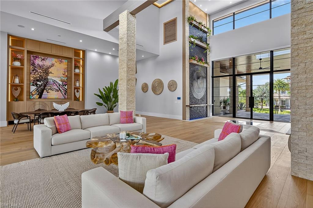 Welcome home to Keola, your luxury resort home. Discover this unparalleled residential masterpiece in the prestigious Estates of Marco Island! A newly unveiled gem in the sought-after Luxury Resort Home Collection by Paradise Design Build. This rare fusion of architectural brilliance and resort-style indulgence is conceived by the finest visionaries in high-end home design. Every detail of this six-bedroom, 7.5-bath sanctuary exudes sophistication, including the state-of-the-art dedicated spa and fitness suite. Like all high-end resorts, Keola has a dedicated luxury spa wing complete with a yoga studio, cold plunge, steam shower and infrared sauna, a refuge for rejuvenation. Past the grand entrance, you are greeted by soaring 27-foot ceilings and dramatic floor-to-ceiling glass walls that frame breathtaking scenery and an indoor and outdoor water feature. This fully furnished home has been designed with your comfort in mind. Within Keola form meets function, each elegant retreat possesses its own en suite, providing a private haven for escape after a long day. Fashioned for lavish entertaining, the terrace features an expansive covered lanai and outdoor dining area, complete with a fully equipped summer kitchen and opulent bath. Whether hosting a soiree or unwinding in solitude, you're protected by cutting-edge electric screens and storm shutters, ensuring year-round comfort and serenity. Set on an expansive .59-acre lot with deep water direct boating access, this dwelling vaunts an impressive 167 feet of pristine waterfront, ideally suited to accommodate a yacht. The open-concept layout seamlessly blends indoor and outdoor activities, inviting natural light to dance across exquisite architectural elements. For the automotive enthusiast, dual garages offer an extraordinary capacity for up to eight vehicles, furnishing the ideal space to showcase your prized collection. Built with meticulous attention to detail, this stunning abode showcases extraordinary quality and elevation and incorporates the latest in LEED-certified and ADA-compliant techniques. Advanced insulation reinforced structural design, premium materials, and innovative windows with soaring 12-foot glass door walls enhance aesthetics and energy efficiency. A full-home generator ensures uninterrupted living. Beyond the luxurious confines of your estate, Marco Island offers an array of preeminent amenities. Enjoy award-winning crescent-shaped beaches, explore charming boutiques, waterfront bistros and beachfront restaurants, or dive into the island's rich heritage at the local history museum. For those with an active lifestyle, Marco Island has premier facilities for tennis, pickleball, paddleboarding, kayaking, beach yoga and a prestigious yacht club. Golf fans will appreciate the nearby championship courses, while convenient access to the executive airport makes travel seamless. Experience your own private resort on Marco Island, where every day feels like paradise!