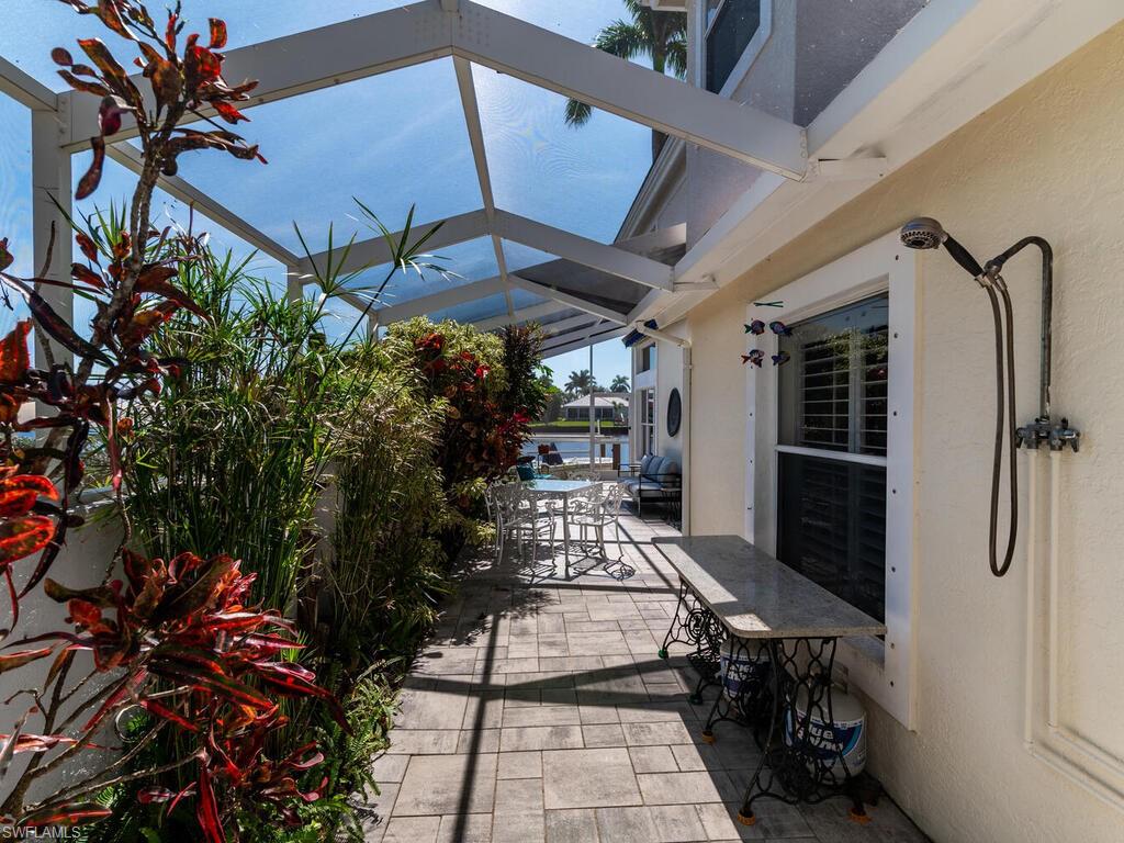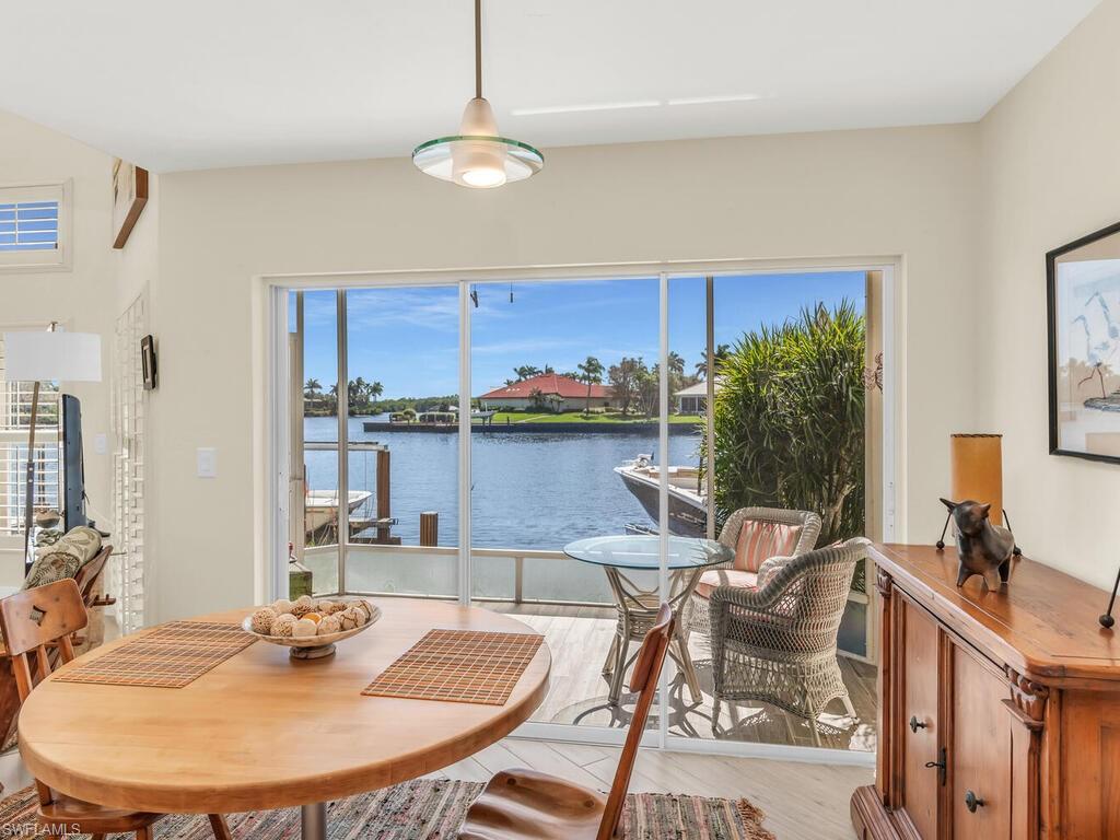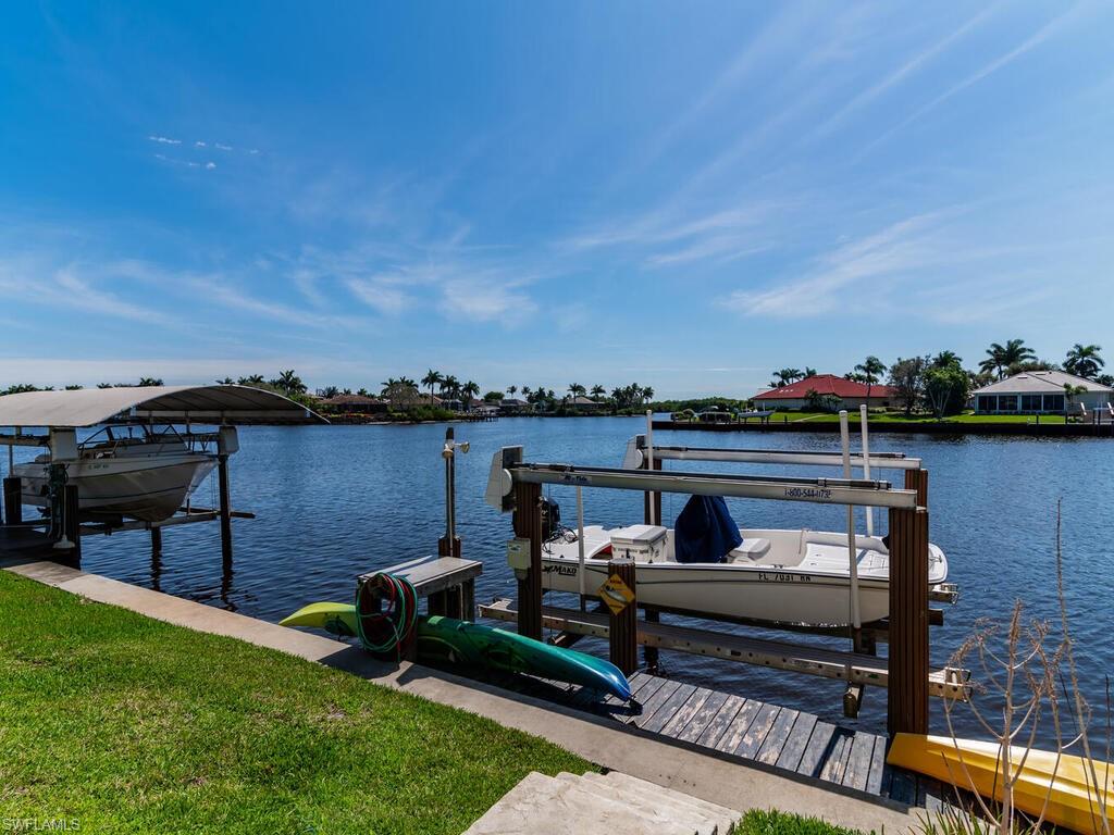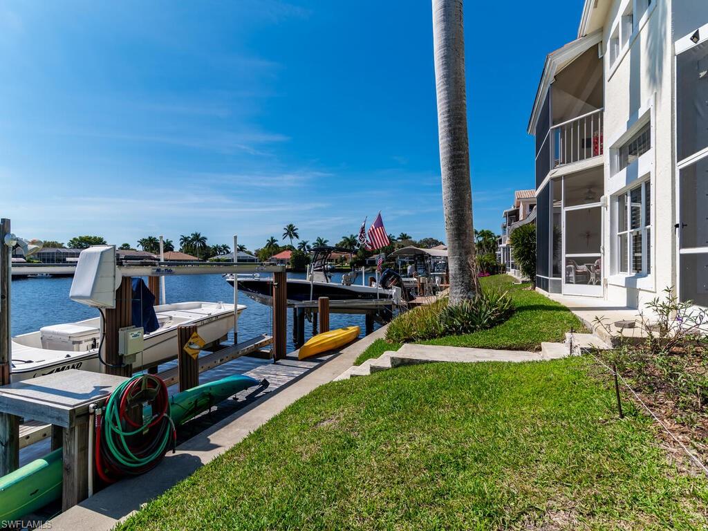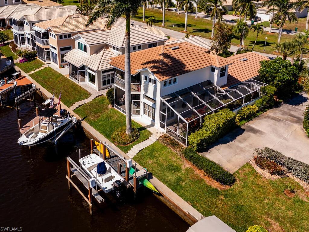 Experience the perfect blend of European sophistication and relaxed Florida living in this beautifully updated 3-bedroom, 2-bath home spanning 2,406 square feet. Designed for comfort and style, the interior features a seamless mix of tile and bamboo flooring throughout, creating a bright and inviting atmosphere. The open-concept kitchen is a chef’s delight, complete with butcher block countertops, a spacious center island, stainless steel appliances, custom cabinetry with abundant storage, an extra-deep sink, and a striking backsplash enhanced by under-cabinet lighting. Upstairs, the primary suite serves as a private retreat overlooking the wide canal, with its own screened balcony perfect for morning coffee or evening relaxation. The ensuite bath offers a spa-like experience with a soaking tub and a beautifully tiled walk-in shower. Step outside to the expansive open lanai, ideal for barbecues, entertaining, or simply soaking in the tranquil setting. Mature, low-maintenance landscaping frames the outdoor spaces, providing both beauty and ease. Boating enthusiasts will appreciate the private boat slip with lift, offering direct access to the Gulf and Ten Thousand Islands. Additional highlights include a 2-car attached garage, in-home laundry, and a charming screened entry with paver block accents. Located in the desirable Port of the Islands community, residents enjoy access to a ship’s store with fuel, bait, and provisions, a public boat ramp, and 24-hour on-site EMS and fire services. Conveniently situated just 15 minutes from Publix and only a short drive to downtown Naples and Marco Island, this home offers the best of coastal living, combining style, serenity, and easy access to the water.