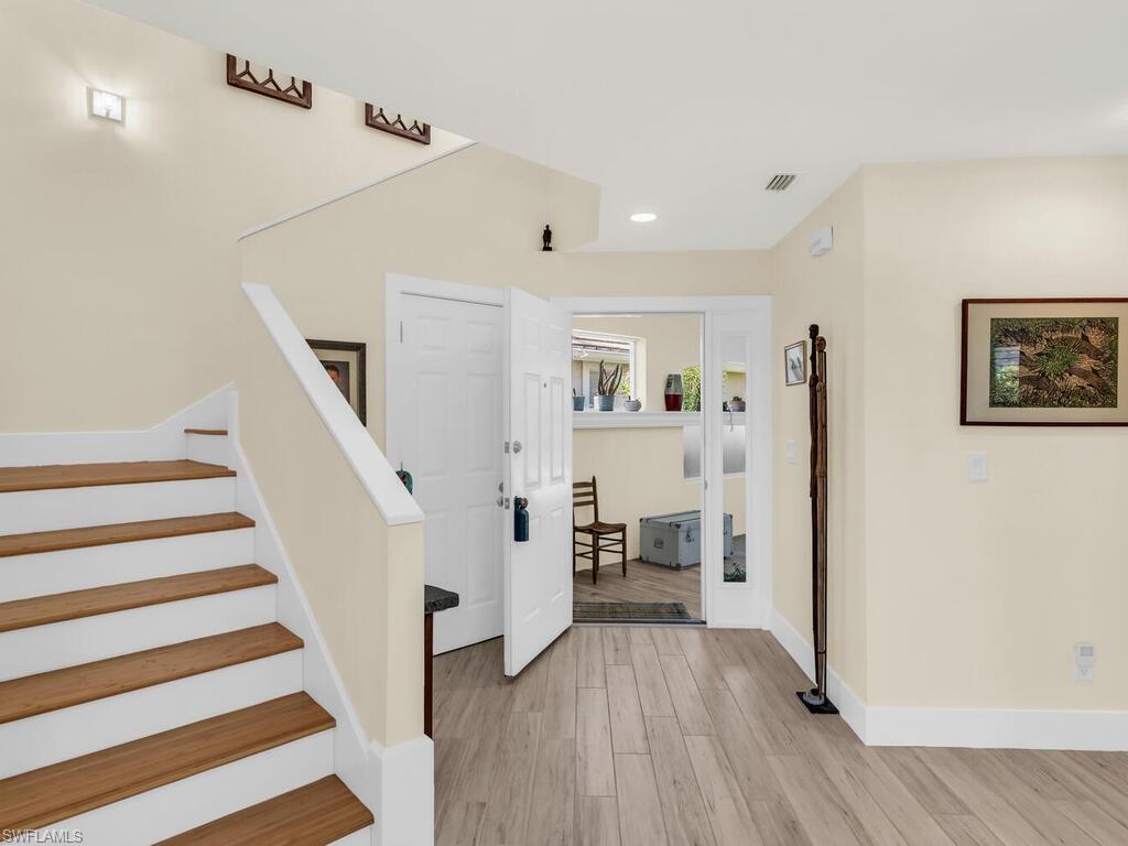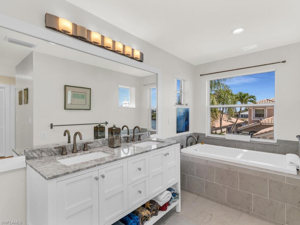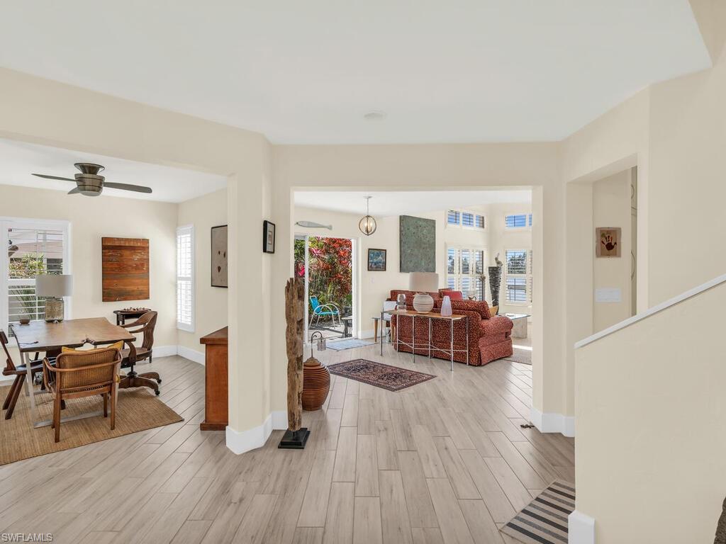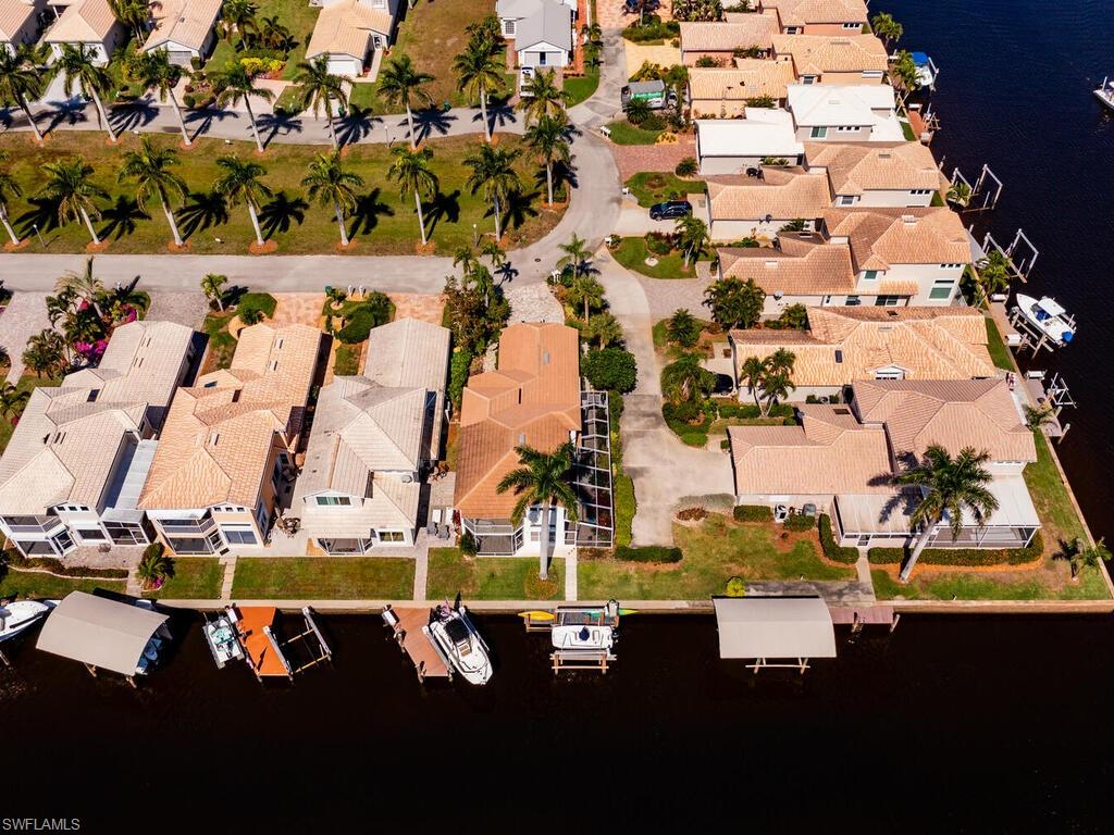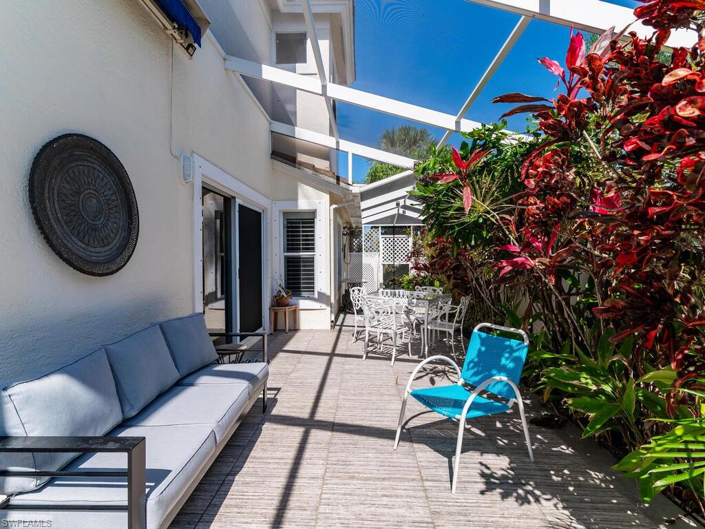 Experience the perfect blend of European sophistication and relaxed Florida living in this beautifully updated 3-bedroom, 2-bath home spanning 2,406 square feet. Designed for comfort and style, the interior features a seamless mix of tile and bamboo flooring throughout, creating a bright and inviting atmosphere. The open-concept kitchen is a chef’s delight, complete with butcher block countertops, a spacious center island, stainless steel appliances, custom cabinetry with abundant storage, an extra-deep sink, and a striking backsplash enhanced by under-cabinet lighting. Upstairs, the primary suite serves as a private retreat overlooking the wide canal, with its own screened balcony perfect for morning coffee or evening relaxation. The ensuite bath offers a spa-like experience with a soaking tub and a beautifully tiled walk-in shower. Step outside to the expansive open lanai, ideal for barbecues, entertaining, or simply soaking in the tranquil setting. Mature, low-maintenance landscaping frames the outdoor spaces, providing both beauty and ease. Boating enthusiasts will appreciate the private boat slip with lift, offering direct access to the Gulf and Ten Thousand Islands. Additional highlights include a 2-car attached garage, in-home laundry, and a charming screened entry with paver block accents. Located in the desirable Port of the Islands community, residents enjoy access to a ship’s store with fuel, bait, and provisions, a public boat ramp, and 24-hour on-site EMS and fire services. Conveniently situated just 15 minutes from Publix and only a short drive to downtown Naples and Marco Island, this home offers the best of coastal living, combining style, serenity, and easy access to the water.