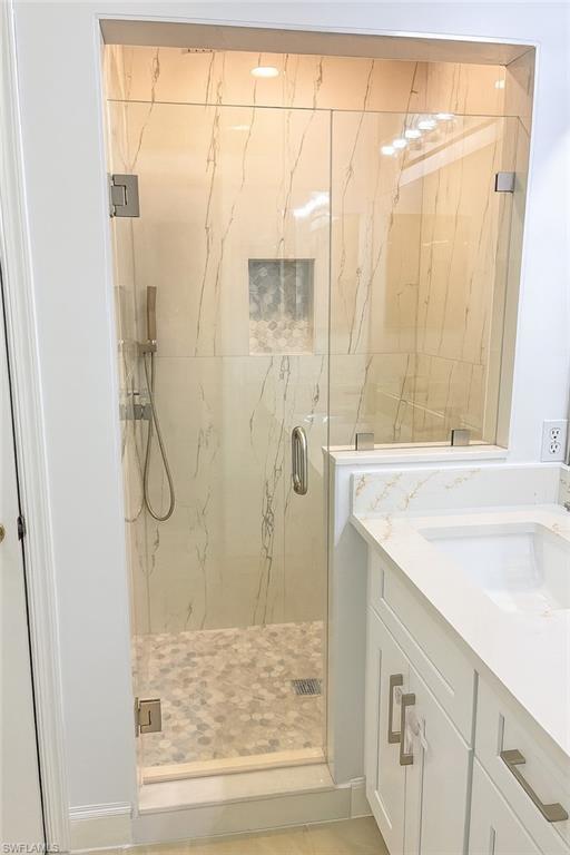 Beautifully Updated 3-Bedroom end unit condo in Desirable Falling Waters! Welcome to this beautifully updated second-floor end-unit condo located in the highly sought-after Falling Waters community — one of Naples’ most friendly and amenity-rich neighborhoods! This unit is just a few steps away from the amazing resort style amenities! Perfectly situated just minutes from 5th Avenue South, 3rd Street, Waterside Shops, Mercato, and Naples’ world-class beaches, this property combines luxury, comfort, and convenience. Step inside to find a bright, open concept living and dining area with soaring cathedral ceilings and newly tiled flooring throughout. The recently updated kitchen features quartz countertops, white wood shaker cabinetry (including added storage under the breakfast bar), a large deep kitchen sink, ample counter space, and space for a cozy seating area with access to the large enclosed lanai that extends across the front of the unit. Enjoy a large screened lanai overlooking a serene waterfall feature and lush landscaping, perfect for relaxing or entertaining- plus a second very large screened lanai at the entry with access from the kitchen to enjoy your morning coffee. The condo also includes three generous size bedrooms, two fully updated bathrooms, and an updated laundry room with new shaker cabinets for added storage. Additional highlights include a covered carport with a private storage closet, and ample guest parking nearby. Cascading waterfalls and lush tropical landscaping surround your new home, creating a peaceful, resort-like atmosphere- where every day feels like a vacation. This condo is move-in ready—perfect for use as a full-time residence, seasonal retreat, or great investment opportunity (ALLOWING UP TO 12 LEASES PER YEAR). Residents of Falling Waters enjoy access to exceptional amenities designed to enhance your lifestyle, that are within walking distance to the unit, including: A magnificent 11,000 sq. ft. resort-style saltwater pool with waterfalls and an expansive sun deck (recently renovated with a $2.1 million renovation), a welcoming clubhouse with social activities and community events, Clay tennis courts, bocce ball, shuffleboard, and a putting green, beautiful sidewalks and paver walking paths for walking throughout the lushly landscaped community. This home truly embodies the best of Naples living — relaxation, recreation, and resort-style comfort just minutes from everything that makes Naples famous.