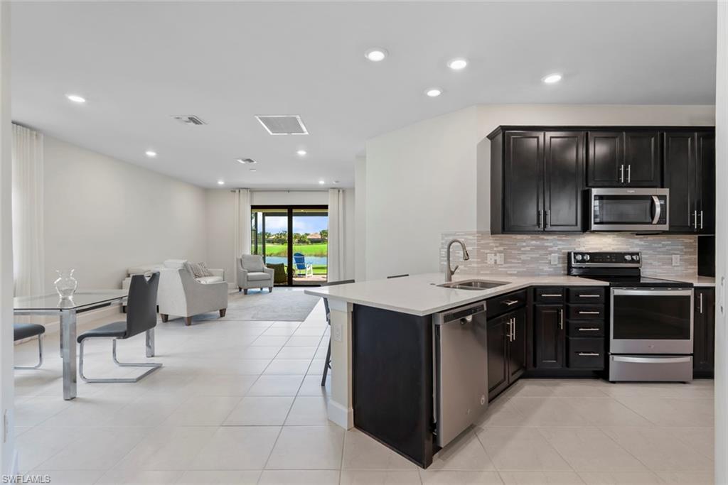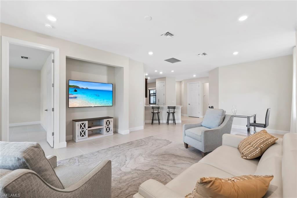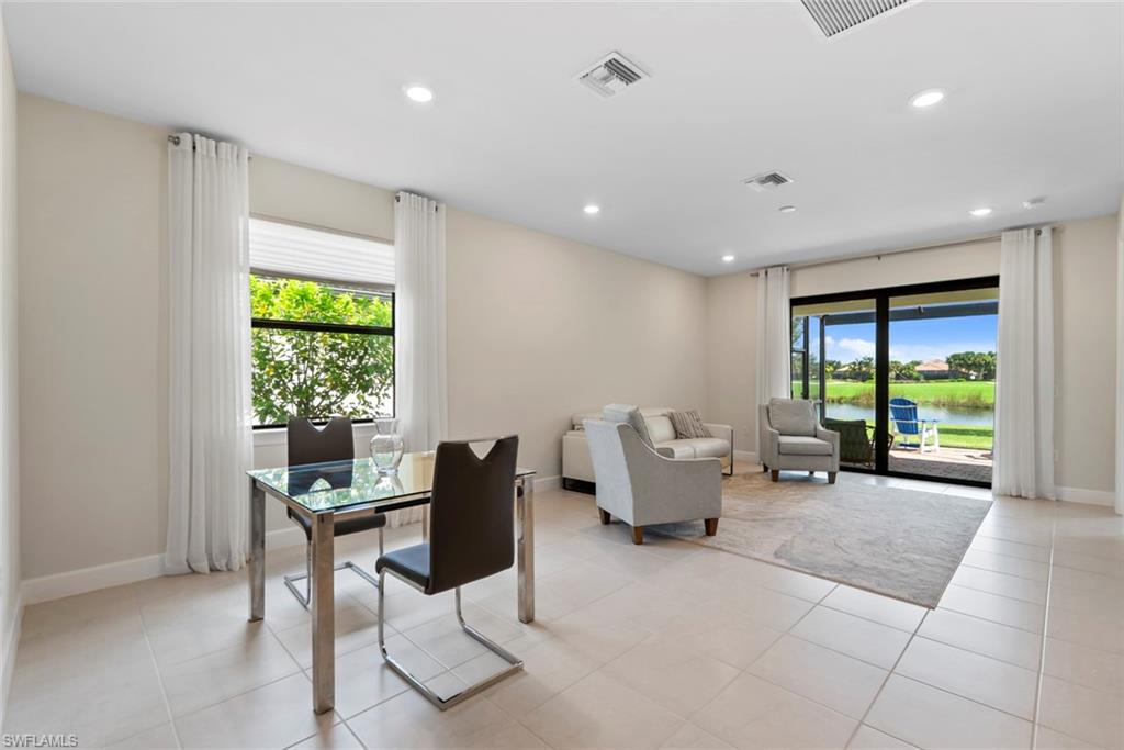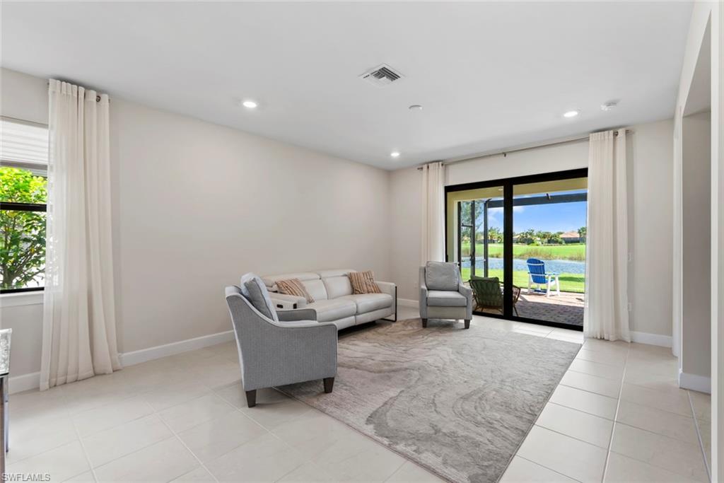 BREATHTAKING LAKE & GOLF COURSE VIEWS! Welcome to your Florida dream home in the 55+ community of Del Webb Naples. Perfectly situated on a premium lot, this impeccably maintained CASCADIA VILLA (end unit) offers captivating views of both the LAKE and the 2nd FAIRWAY of Panther Run Golf Course—all from your EXTENDED SCREENED LANAI with a beautiful PICTURE-FRAME screen design. You’ll love relaxing on the PRIVATE lanai while taking in the SUNRISE - the perfect start to every day in paradise. Inside, you’ll find 2 bedrooms plus a den and 2 full baths, thoughtfully designed for both comfort and style. The open-concept layout features TILE FLOORING THROUGHOUT, custom window treatments, and the KITCHEN features quartz countertops, abundant cabinetry, and UPGRADED APPLIANCES. Elegant ceiling fans and designer lighting add a warm, welcoming touch throughout. The PRIMARY SUITE is a private retreat, complete with dual vanities, a large shower, and spacious closets including a walk in closet. Enjoy peace of mind with IMPACT RESISTANT WINDOWS, a screened front entry, and a GARAGE that boasts epoxy flooring, overhead dual storage racks, and an insulated door. Additional perks include termite protection included in your HOA fees and lower insurance premiums thanks to the attached villa design.This home comes with the SOCIAL MEMBERSHIP, but take note GOLF LOVERS, Panther Run Golf Club offers optional MEMBERSHIPS with premium golf experiences just steps from your backyard.In Del Webb Naples, you’ll enjoy WORLD-CLASS AMENITIES that rival luxury resorts: dine at the Rusty Putter Restaurant, soak in the RESORT-STYLE or LAP POOLS, break a sweat in the state-of-the-art FITNESS CENTER, and play your way through PICKLEBALL, TENNIS, bocce, billiards - even a top-tier GOLF SIMULATOR! Need groceries, church, or a bite to eat? Just hop in your golf cart and cruise into town - Publix and the heart of Ave Maria are just minutes away.This isn’t just a home - it’s a LIFESTYLE UPGRADE in one of Southwest Florida’s most vibrant 55+ communities. Don’t miss your chance to live where fun, fitness, and friendships flourish year-round!
