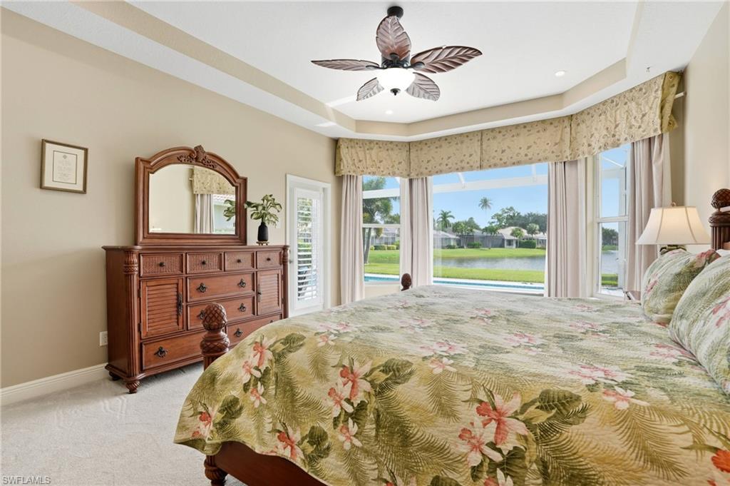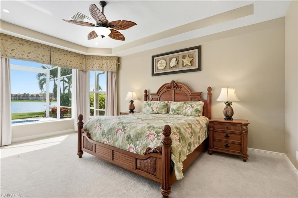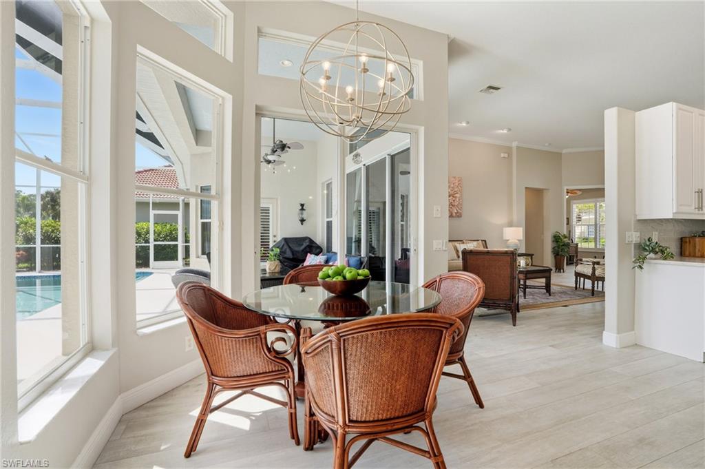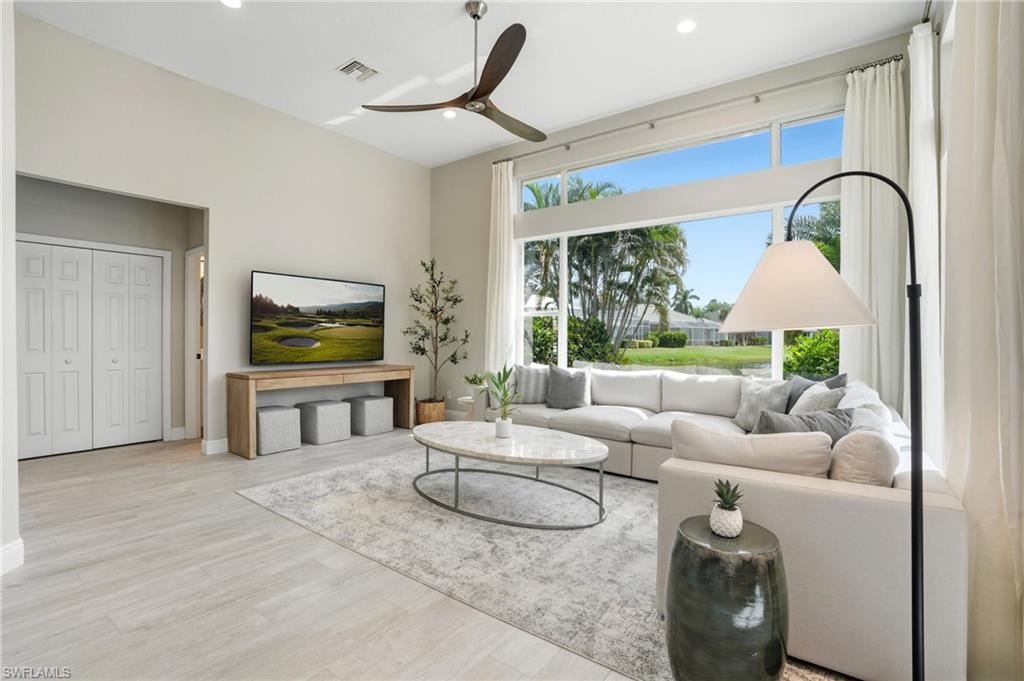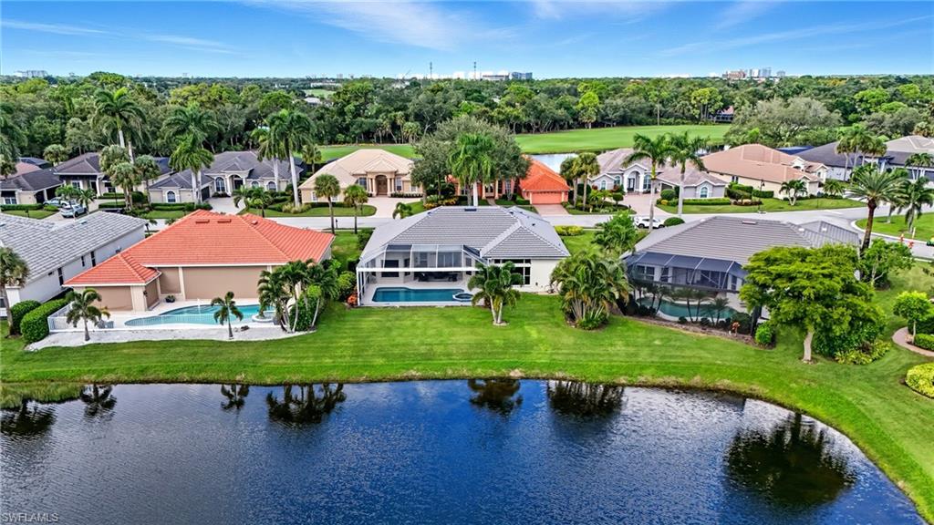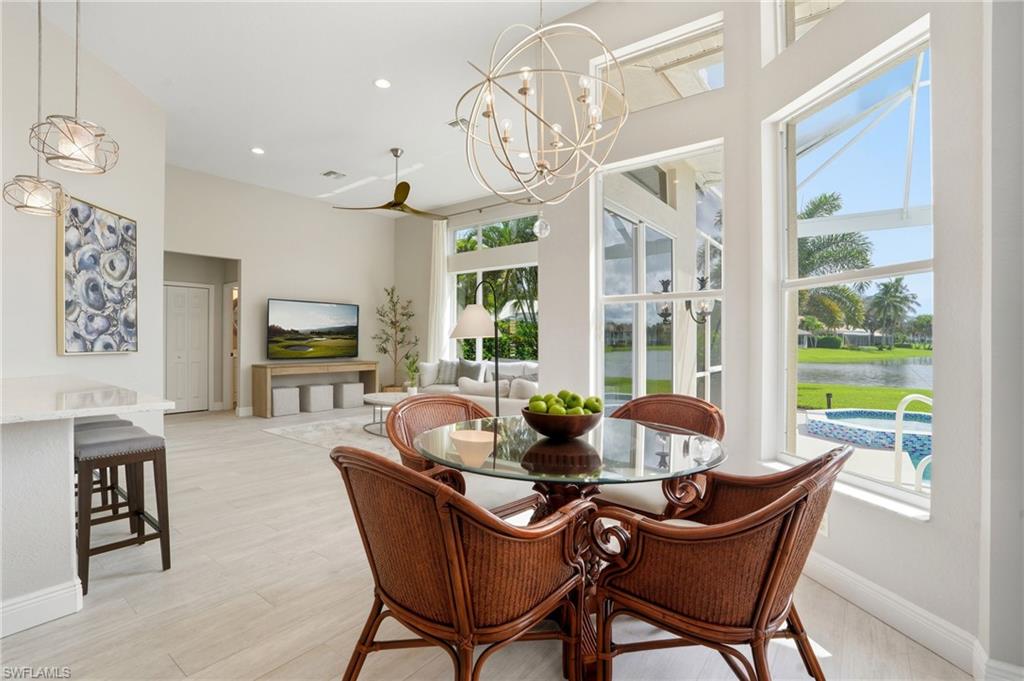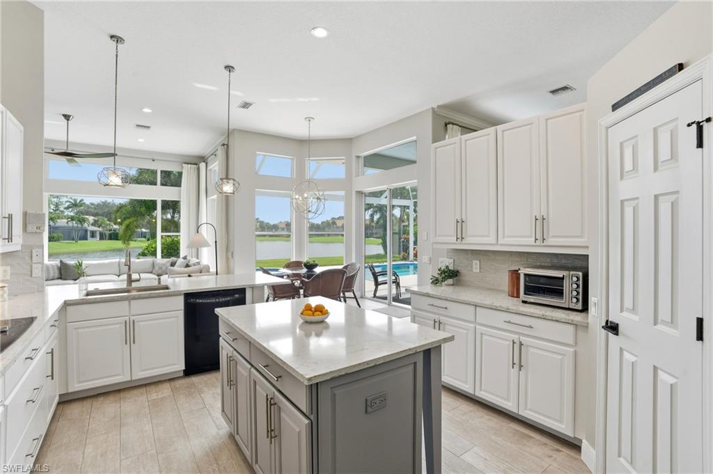 Ideally located within the gated Stonebridge Country Club, this updated and furnished 3-bedroom, 3-bath residence offers over 3,300 square feet of elegant indoor-outdoor living with long lake and golf course views. Nestled in the highly sought-after Manchester neighborhood—with a walking path directly to the Clubhouse and Bistro—this home includes immediate golf and social privileges, offering a rare opportunity to enjoy Naples’ premier country club lifestyle from day one. An inviting foyer opens to a sun-drenched great room finished with Italian porcelain tile, crown molding, and custom plantation shutters. The open-concept design flows naturally to the screened lanai, where a fully resurfaced pool and spa (2024) overlook the tranquil lake. The home’s thoughtful layout connects a formal living room and dining area with the kitchen—complete with a spacious breakfast bar and casual dining nook—leading into a second sitting room. Nearly every space frames views of the lanai, pool, and lake, creating a seamless connection between indoor and outdoor living—perfect for both relaxation and entertaining. The primary suite offers serene lake views and includes a private office overlooking the water (not pictured), motorized shades, dual vanities, a soaking tub, and a beautifully remodeled walk-in shower. Two additional bedrooms, each adjacent to an updated bath, provide comfort and privacy for family or guests. A versatile office or flex room with built-in cabinetry enhances the home’s livability. Extensive upgrades include a new roof (2024,) impact-rated garage door (2024), and automated pool controls with iAqualink and variable-speed pump. Beyond the home, residents enjoy Stonebridge’s newly redesigned 18-hole championship golf course, resort-style pool, state-of-the-art fitness center, and tennis facilities—all within minutes of Naples’ renowned beaches, dining, and shopping. A perfect balance of luxury, livability, and lifestyle awaits at 1676 Manchester Court.