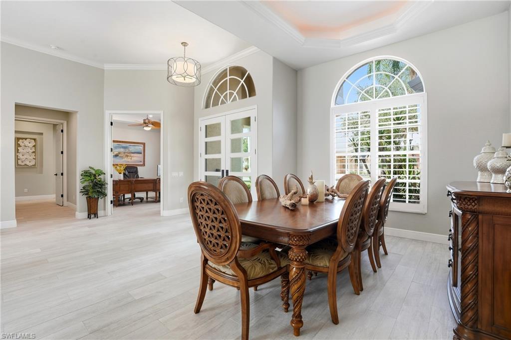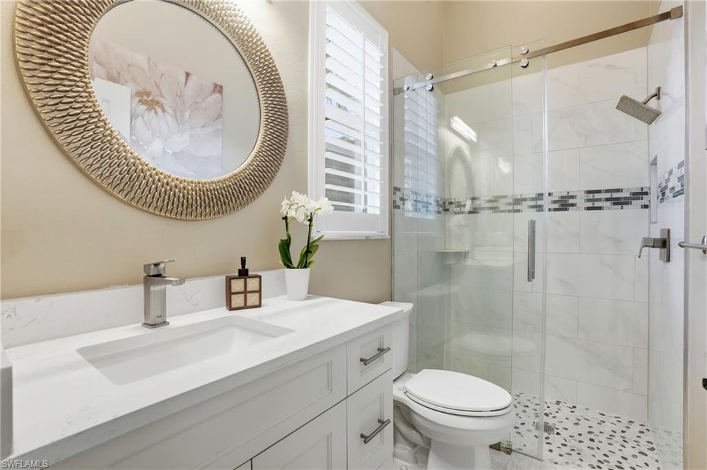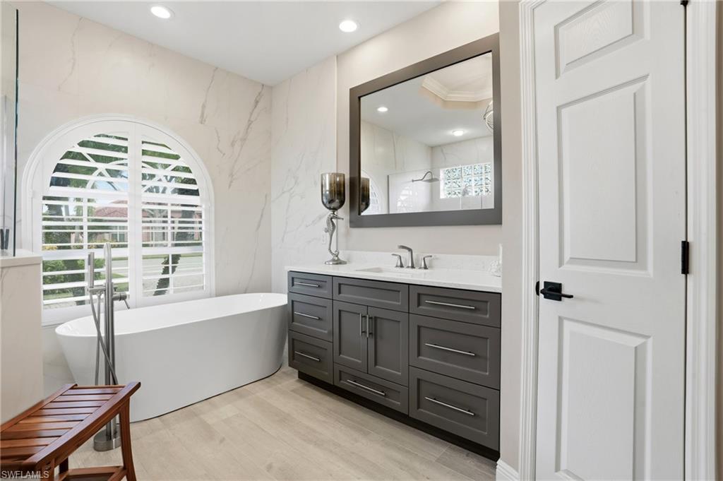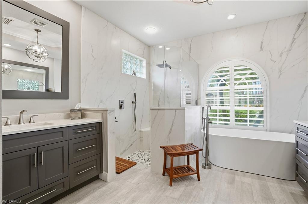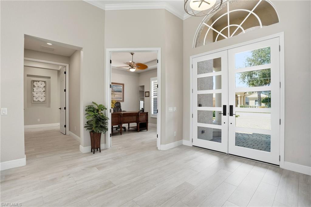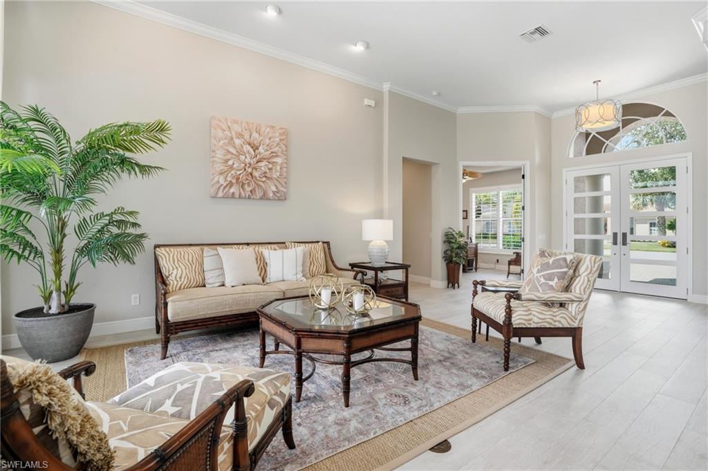 Ideally located within the gated Stonebridge Country Club, this updated and furnished 3-bedroom, 3-bath residence offers over 3,300 square feet of elegant indoor-outdoor living with long lake and golf course views. Nestled in the highly sought-after Manchester neighborhood—with a walking path directly to the Clubhouse and Bistro—this home includes immediate golf and social privileges, offering a rare opportunity to enjoy Naples’ premier country club lifestyle from day one. An inviting foyer opens to a sun-drenched great room finished with Italian porcelain tile, crown molding, and custom plantation shutters. The open-concept design flows naturally to the screened lanai, where a fully resurfaced pool and spa (2024) overlook the tranquil lake. The home’s thoughtful layout connects a formal living room and dining area with the kitchen—complete with a spacious breakfast bar and casual dining nook—leading into a second sitting room. Nearly every space frames views of the lanai, pool, and lake, creating a seamless connection between indoor and outdoor living—perfect for both relaxation and entertaining. The primary suite offers serene lake views and includes a private office overlooking the water (not pictured), motorized shades, dual vanities, a soaking tub, and a beautifully remodeled walk-in shower. Two additional bedrooms, each adjacent to an updated bath, provide comfort and privacy for family or guests. A versatile office or flex room with built-in cabinetry enhances the home’s livability. Extensive upgrades include a new roof (2024,) impact-rated garage door (2024), and automated pool controls with iAqualink and variable-speed pump. Beyond the home, residents enjoy Stonebridge’s newly redesigned 18-hole championship golf course, resort-style pool, state-of-the-art fitness center, and tennis facilities—all within minutes of Naples’ renowned beaches, dining, and shopping. A perfect balance of luxury, livability, and lifestyle awaits at 1676 Manchester Court.