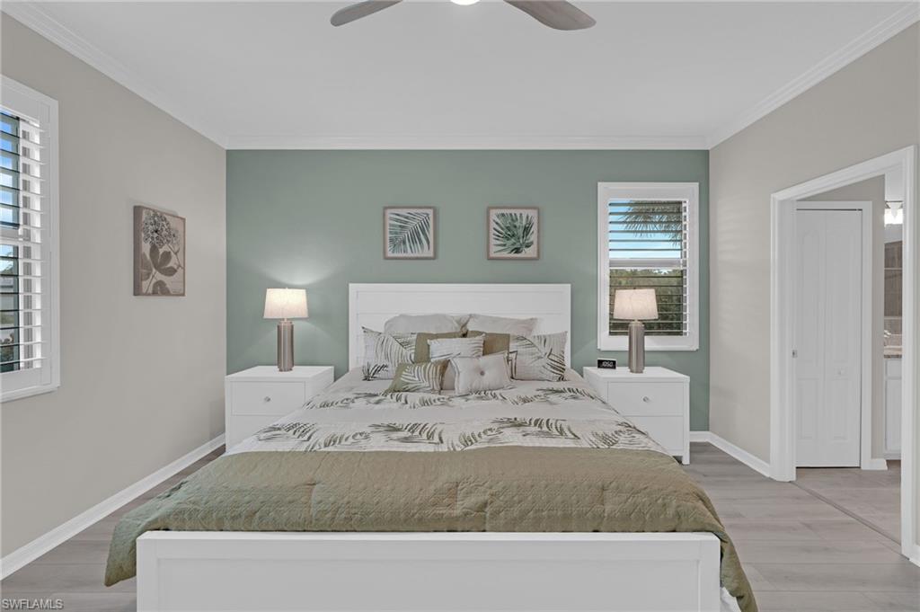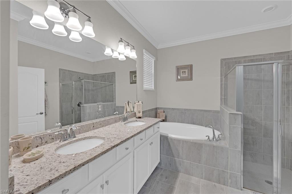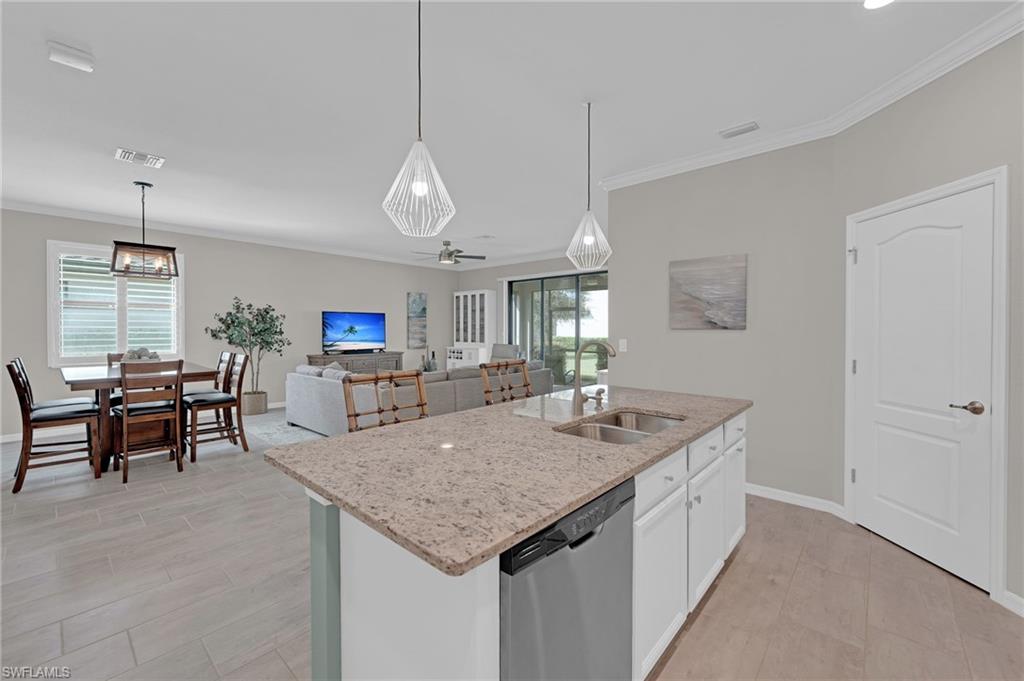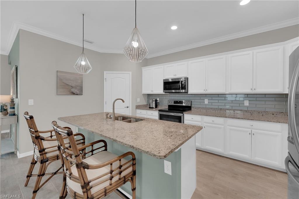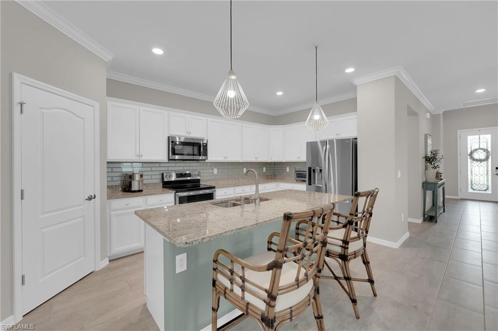 This beautifully maintained “Trevi” model offers 4 spacious bedrooms, 3 bathrooms, and is perfectly situated on a desirable CORNER LOT with a partial LAKE VIEW in the highly sought-after, resort-style community of The Place at Corkscrew. Step inside to find a FRESHLY PAINTED interior with stylish upgrades throughout, including CROWN MOULDING, PLANTATION SHUTTERS on every window, and LUXURY VINYL PLANK FLOORING in the primary bedroom. The open-concept living area is complemented by ceiling fans throughout, creating a comfortable and inviting atmosphere. The modern kitchen features WHITE CABINETS, a beautiful GLASS TILE BACKSPLASH, and WALK IN PANTRY, and plenty of space for entertaining. The primary suite serves as a serene retreat, featuring dual sinks, a SOAKING TUB, a separate shower, and TWO generously sized WALK-IN CLOSETS for ample storage. Additional upgrades include a GLASS ENTRY DOOF, whole-home SECURITY SYSTEM, RING DOORBELL, KEYLESS Eufy front entry, and BRAND NEW SAMSUNG WASHER & DRYER. For peace of mind, the home is equipped with a GENERATOR HOOK-UP and comes with a Westinghouse 9500DF dual-fuel GENERATOR that can run on gas or propane. The garage features durable EPOXY flooring, offering both functionality and style. Outdoor living is effortless with shades on the lanai and slider, plus LANAI FURNITURE IS INCLUDED (with the exception of the painted table). Living in The Place at Corkscrew means every day feels like a vacation. Enjoy world-class amenities including a lagoon-style pool with waterfalls, 100-foot waterslide, splash pad, state-of-the-art fitness center, café, and a full-service restaurant and bar offering both indoor and outdoor seating. The community also features tennis, pickleball, bocce, basketball, and sand volleyball courts, plus a playground, dog park, and plenty of green space for outdoor enjoyment. Located just 1 mile from a brand-new Publix Plaza, 10 minutes from shopping and dining at Miromar Outlets and Gulf Coast Town Center, 15 minutes from RSW Airport, and only 30–40 minutes to the beautiful Gulf Coast beaches, this home offers the perfect blend of resort-style living and everyday convenience. Experience the best of Southwest Florida living at The Place at Corkscrew—where luxury, comfort, and convenience come together beautifully.