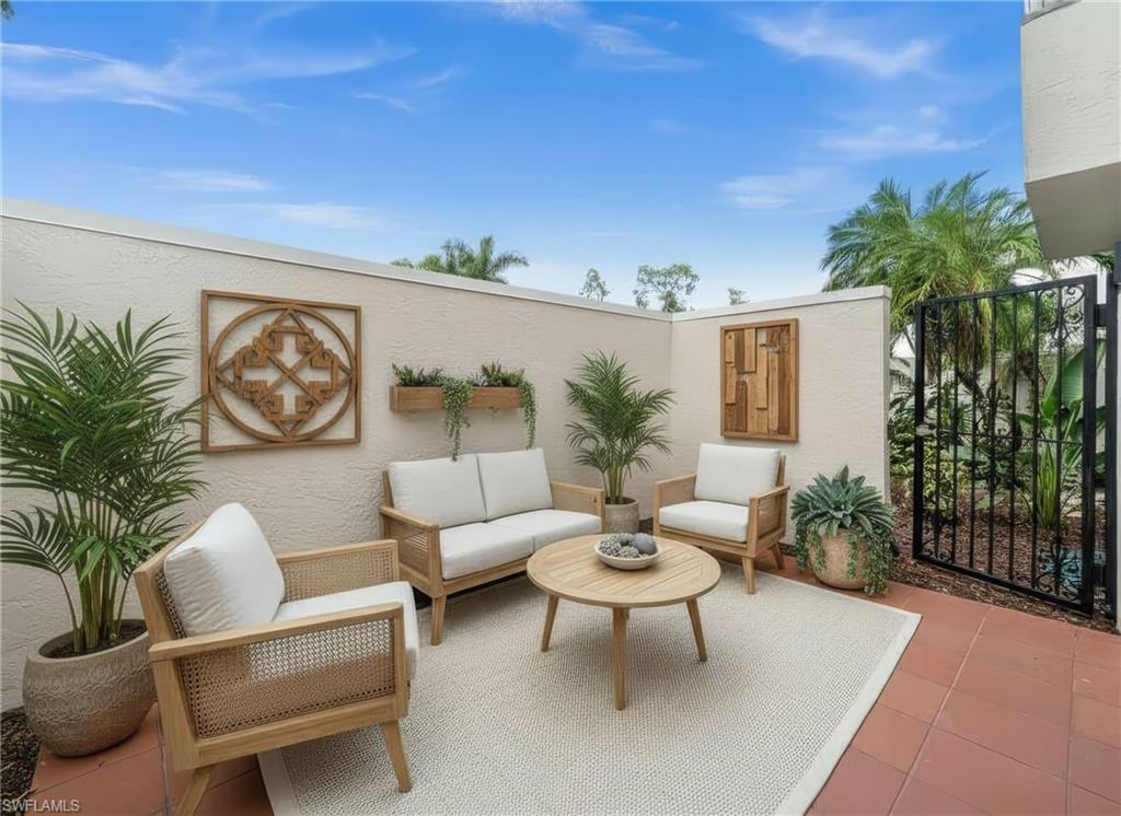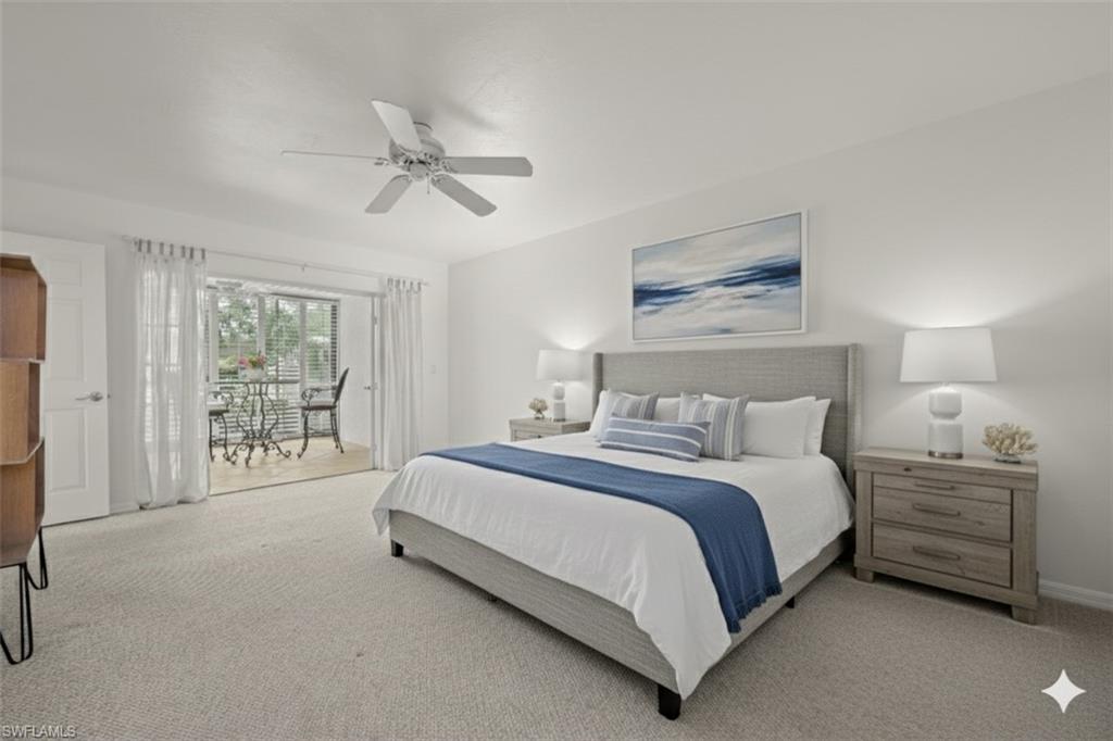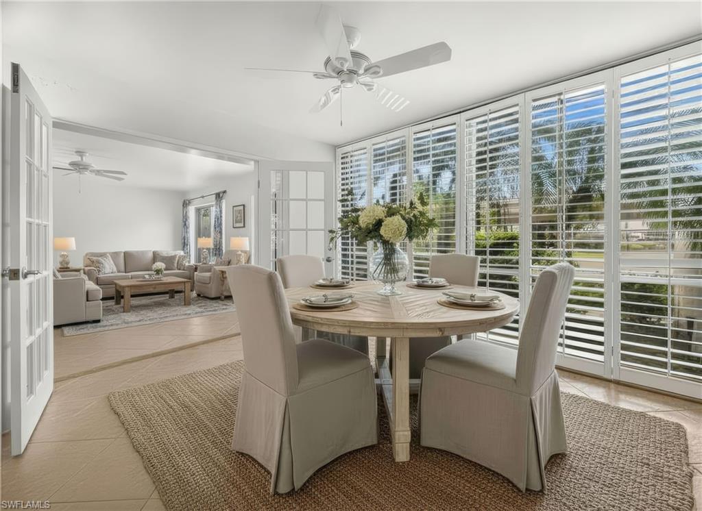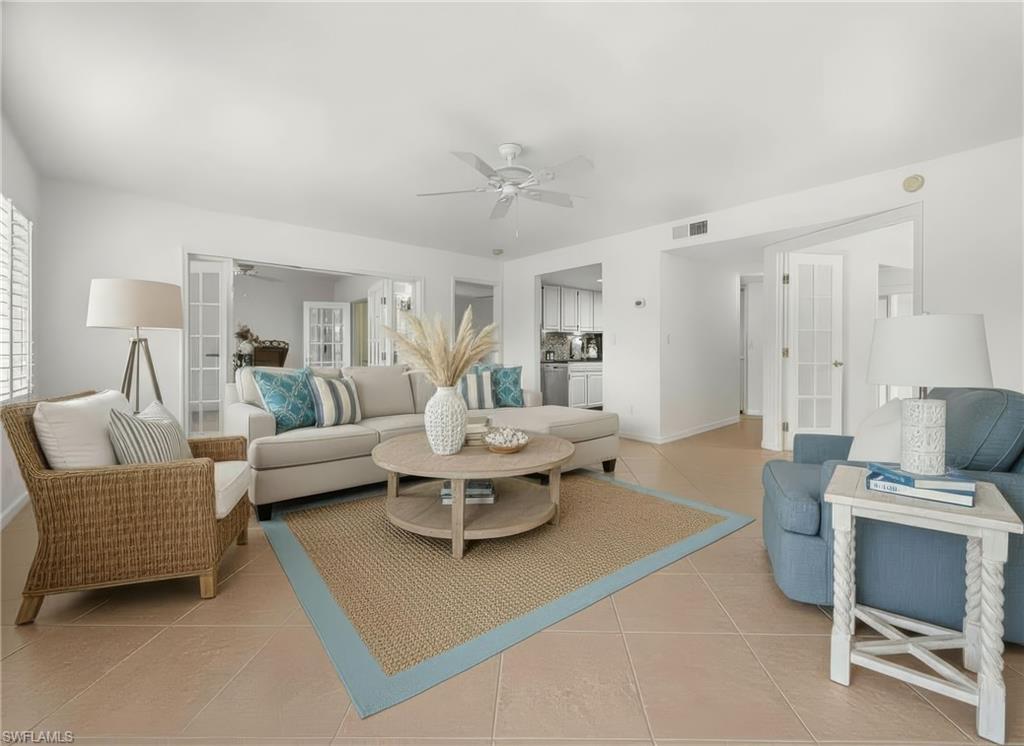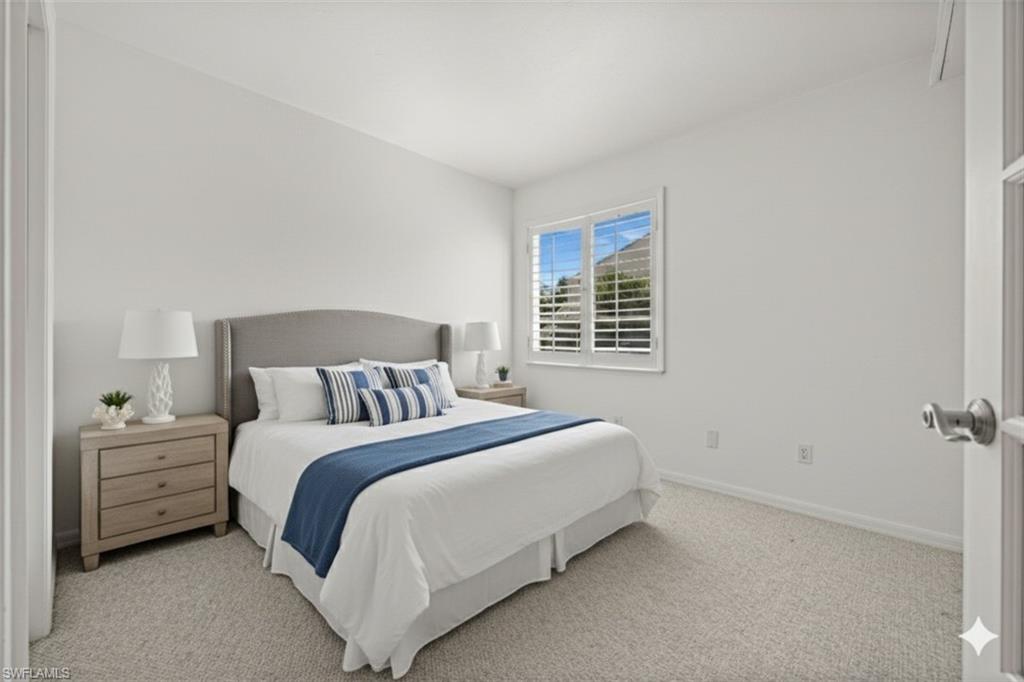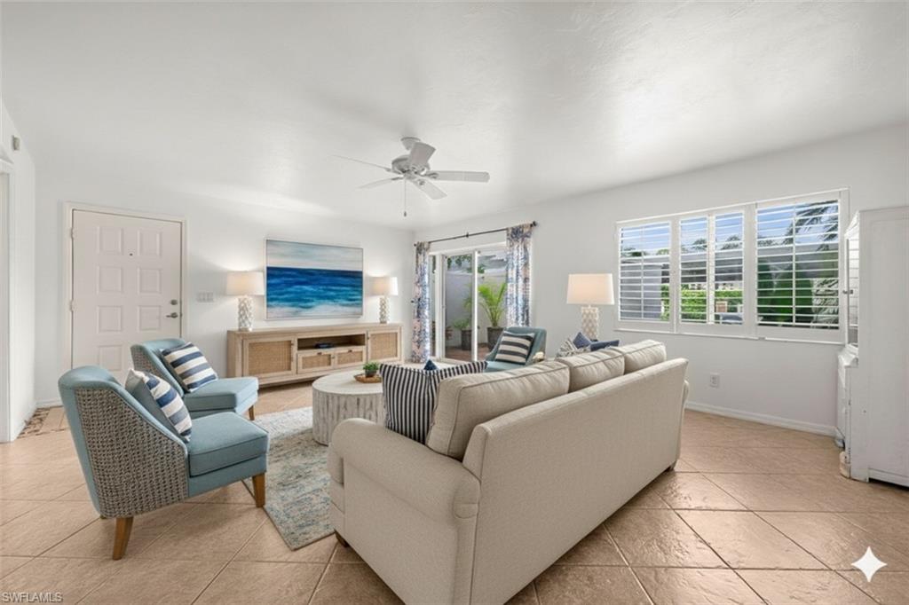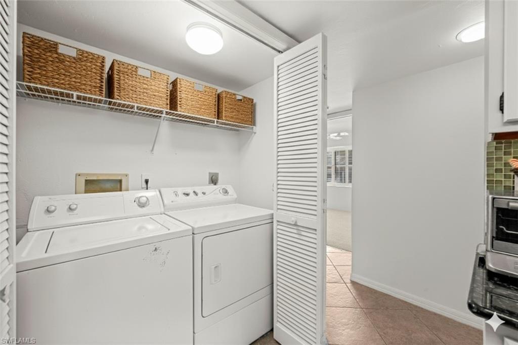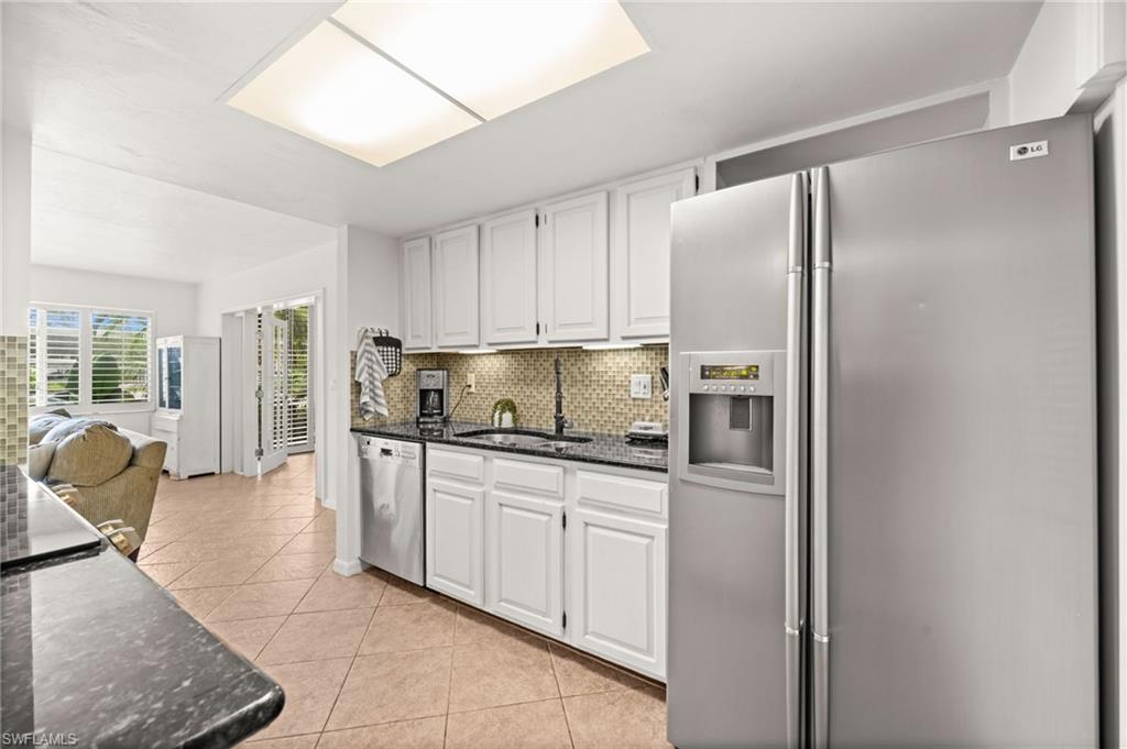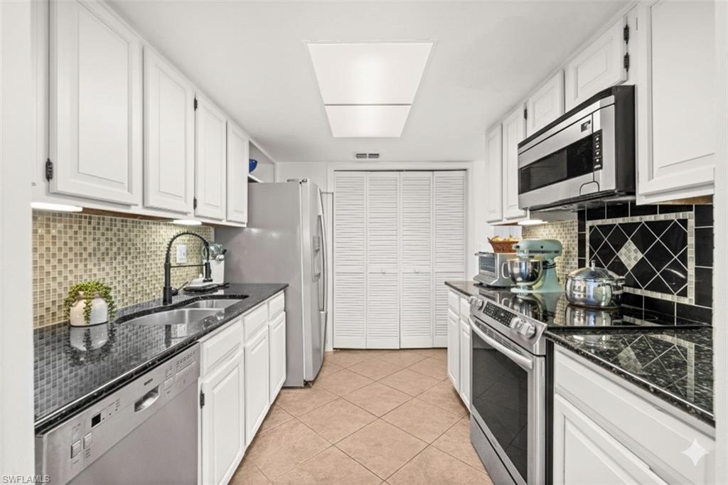LOTS OF SPACE | IDEAL LOCATION! Step into this move-in-ready 3-bedroom (plus another enclosed room), 2-bath first-floor end unit, tucked inside the sought-after community of Camelot at Kings Lake. Just 4 miles from Naples’ white-sand beaches and minutes from Fifth Avenue’s dining and shops, this home combines modern comfort with an unbeatable lifestyle. Inside, you’ll find a bright, open floor plan finished with sleek porcelain tile throughout. The kitchen features newer stainless steel appliances, granite counters, and a stylish tile backsplash - perfect for both everyday meals and entertaining. French doors and plantation shutters bring extra character and charm. The light-filled enclosed lanai has expanded the home’s living space - ideal for morning coffee, reading, or quiet evenings at home. And for those who still love true Florida outdoor living, you’ll enjoy a private patio surrounded by lush tropical landscaping. The spacious primary suite offers expansive space including a walk-in closet and en-suite bath. Two additional bedrooms provide space for guests, family, or even a home office. Both baths have been tastefully refreshed, blending style with function. A brand-new water heater, oven and dryer adds peace of mind, while covered parking, two secure storage closets, and an additional cubby for bikes or beach gear make life convenient. Best of all, the sparkling community pool and spa are just steps away - only 30 seconds from your front door. Living here means more than just a home; it’s a lifestyle. Residents enjoy a heated pool and spa, clubhouse, walking and biking trails around a serene 33-acre lake, plus access to tennis and pickleball courts through Kings Lake. Whether you’re searching for a full-time residence, seasonal retreat, or investment, this condo is a rare opportunity in one of Naples’ most popular communities. Don’t miss your chance to claim this move-in ready home in the heart of it all. Schedule your showing today!