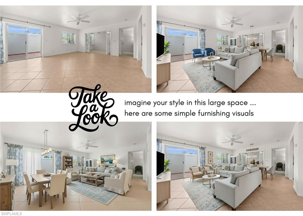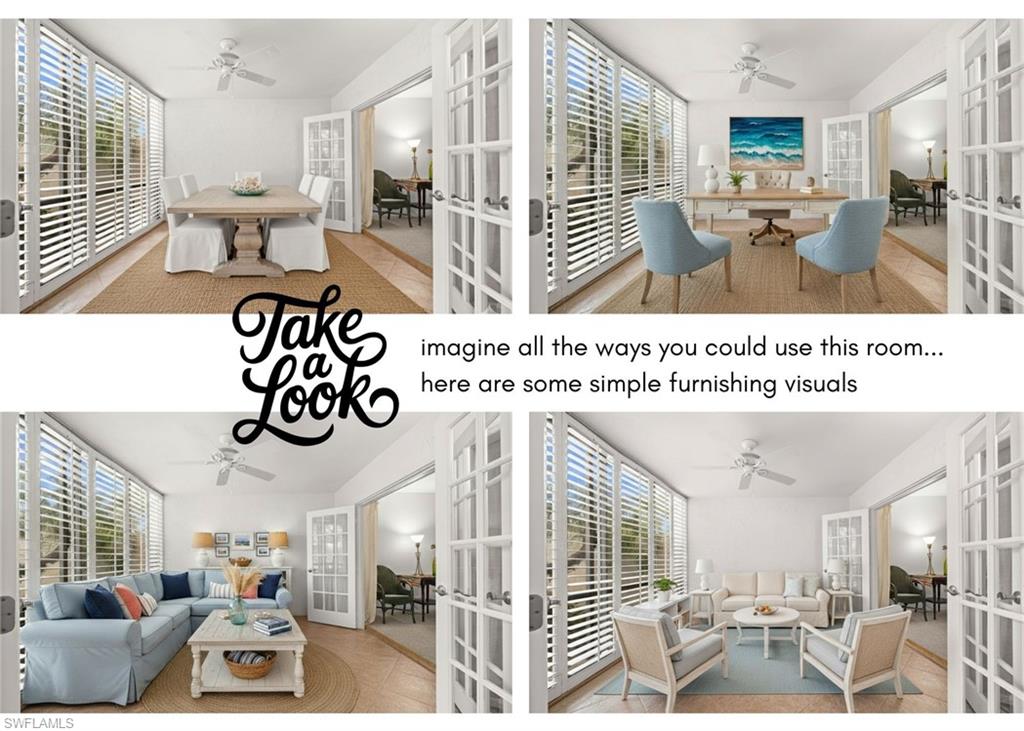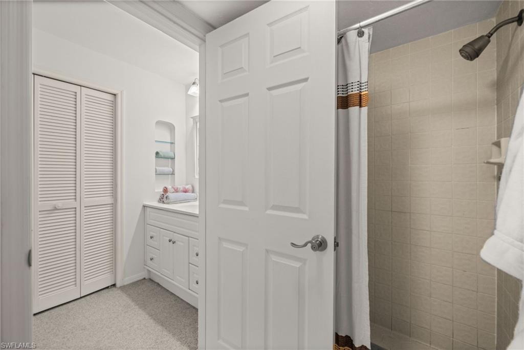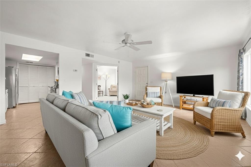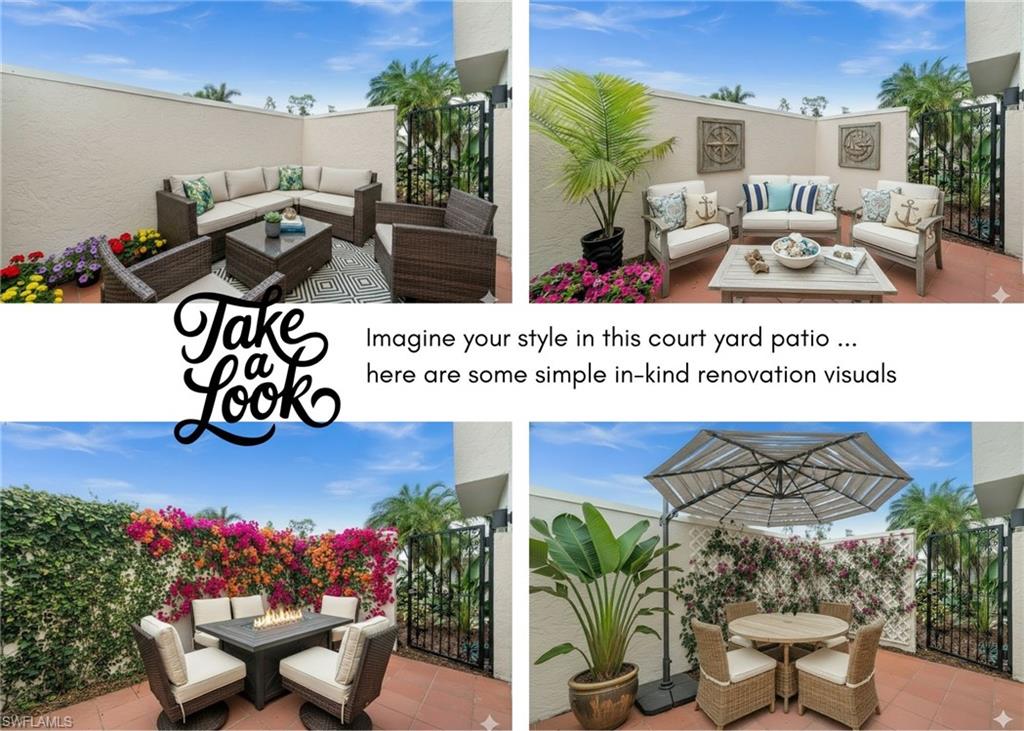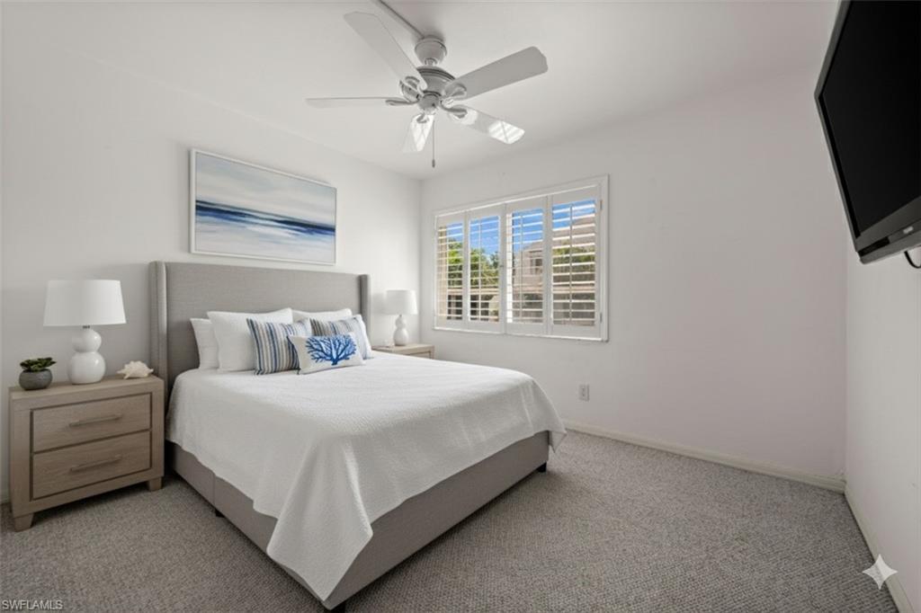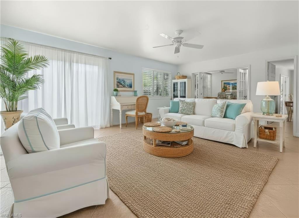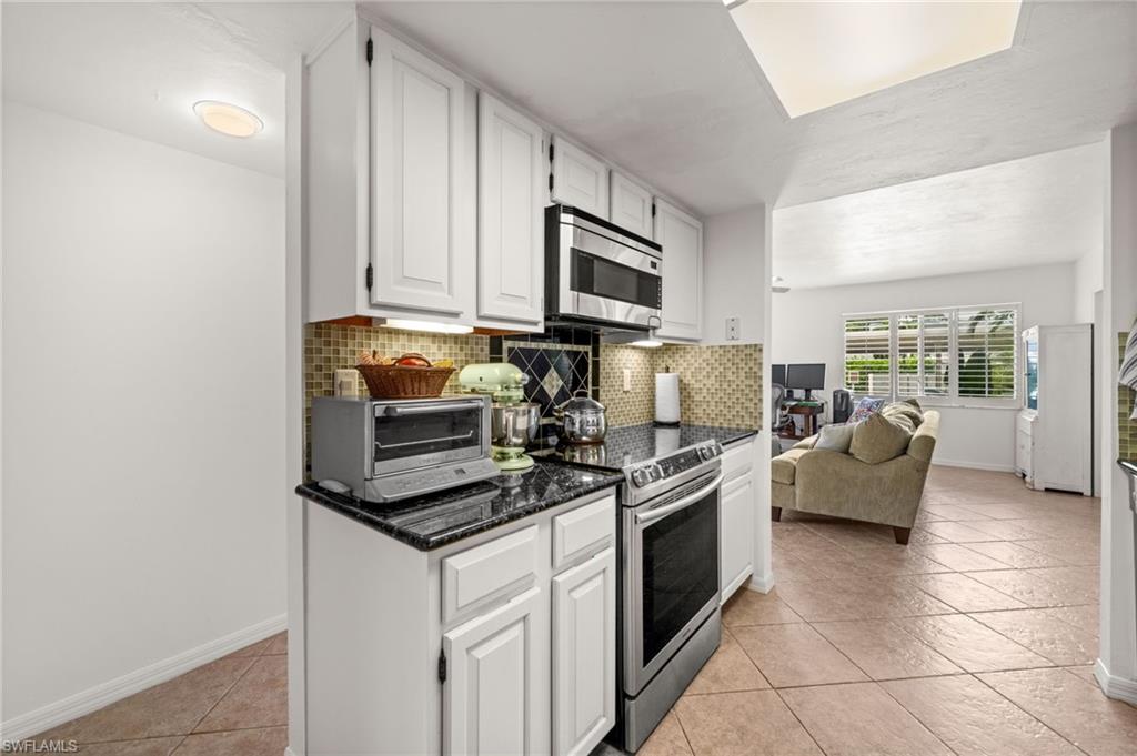 LOTS OF SPACE | IDEAL LOCATION! Step into this move-in-ready 3-bedroom (plus another enclosed room), 2-bath first-floor end unit, tucked inside the sought-after community of Camelot at Kings Lake. Just 4 miles from Naples’ white-sand beaches and minutes from Fifth Avenue’s dining and shops, this home combines modern comfort with an unbeatable lifestyle. Inside, you’ll find a bright, open floor plan finished with sleek porcelain tile throughout. The kitchen features newer stainless steel appliances, granite counters, and a stylish tile backsplash - perfect for both everyday meals and entertaining. French doors and plantation shutters bring extra character and charm. The light-filled enclosed lanai has expanded the home’s living space - ideal for morning coffee, reading, or quiet evenings at home. And for those who still love true Florida outdoor living, you’ll enjoy a private patio surrounded by lush tropical landscaping. The spacious primary suite offers expansive space including a walk-in closet and en-suite bath. Two additional bedrooms provide space for guests, family, or even a home office. Both baths have been tastefully refreshed, blending style with function. A brand-new water heater, oven and dryer adds peace of mind, while covered parking, two secure storage closets, and an additional cubby for bikes or beach gear make life convenient. Best of all, the sparkling community pool and spa are just steps away - only 30 seconds from your front door. Living here means more than just a home; it’s a lifestyle. Residents enjoy a heated pool and spa, clubhouse, walking and biking trails around a serene 33-acre lake, plus access to tennis and pickleball courts through Kings Lake. Whether you’re searching for a full-time residence, seasonal retreat, or investment, this condo is a rare opportunity in one of Naples’ most popular communities. Don’t miss your chance to claim this move-in ready home in the heart of it all. Schedule your showing today!
