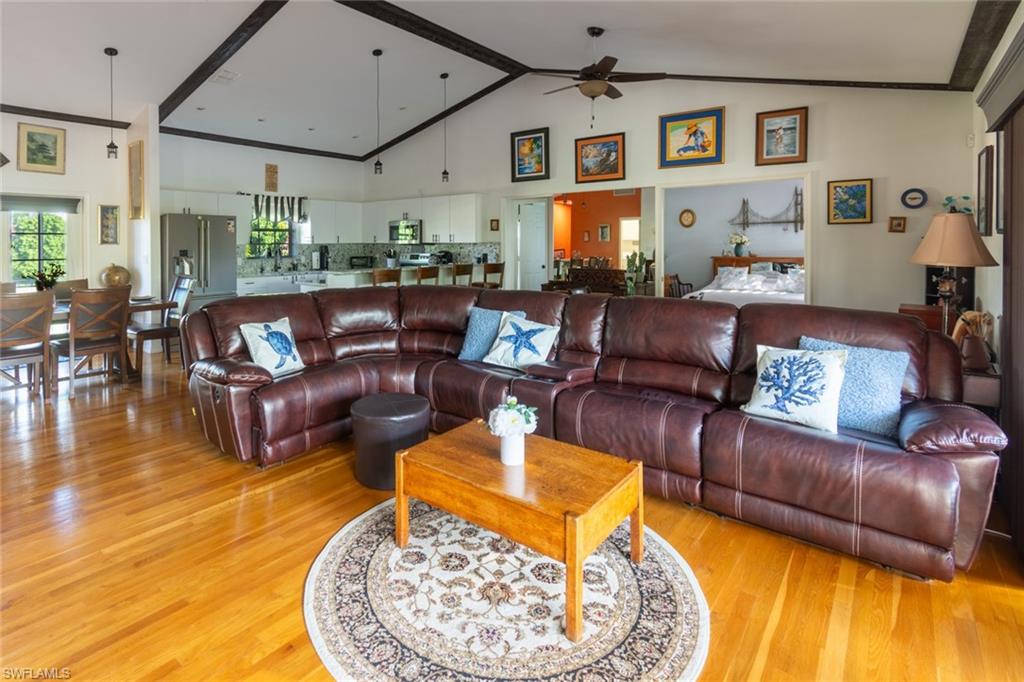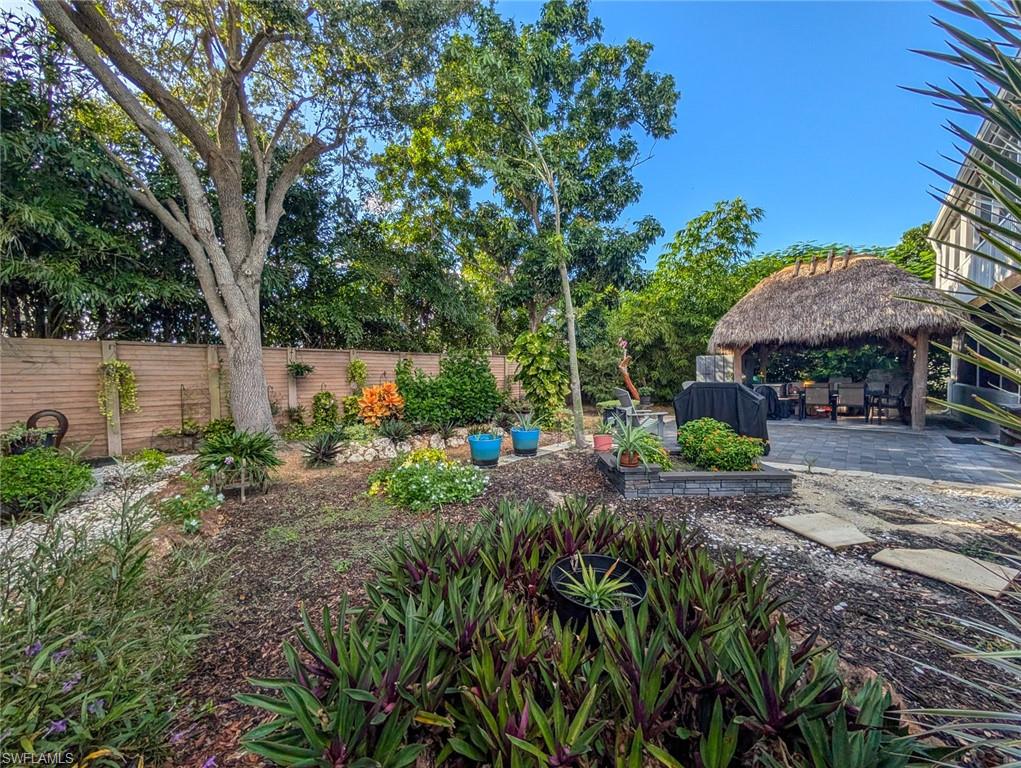 Experience the best of Florida living in this beautifully updated 4-bedroom, 2.5-bath home surrounded by vibrant tropical vegetation and sweeping sunset views. The main level offers 3 spacious bedrooms and 2 baths, an open-concept living area, and a stunning modern kitchen with stainless steel appliances and solid oak flooring throughout. Step out onto two screened lanais upstairs to enjoy serene outdoor living year-round. The lower level adds even more flexibility with a private bedroom and half bath, a dedicated office, an exercise room, and an additional screened lanai—perfect for guests or a home workspace. Out back, unwind under the tiki hut with a refreshing outdoor shower, surrounded by lush, private landscaping. The property is a tropical oasis with mature fruit trees including two mango, sapodilla, jackfruit, logan, and an abundance of pineapples. Recent upgrades include a recent roof, full hurricane protection, a whole-house generator hookup and included Generac 17,500W generator, and a reverse osmosis water filtration system for peace of mind. Perched high for privacy and surrounded by natural beauty, this home is the ideal blend of comfort, self-sufficiency, and classic Florida charm.