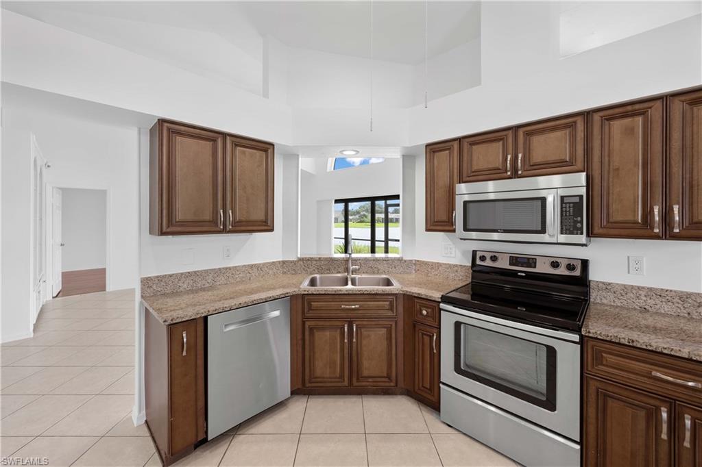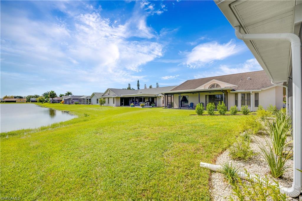 Rarely available single-family home in Regent Park, North Naples! This beautifully updated 3-bedroom, 2-bath residence sits on a large corner lot overlooking a beautiful lake. Featuring ALL new, freshly painted interiors and exteriors, this home offers new hurricane-impact doors and windows, a newer roof, new landscaping, a whole-house generator, a deep well, and a sprinkler system for lawn irrigation. Inside, you’ll find vaulted ceilings, granite countertops, stainless steel appliances, and a nice laundry room complete with built-in cabinets and a utility sink. The primary suite includes two walk-in closets, an ensuite bathroom, and sliding doors that open to the spacious screened lanai. Enjoy relaxing or entertaining on the large covered lanai with a ceiling fan overlooking the peaceful lake. Conveniently located near I-75, this home also offers low HOA fees and access to community amenities including a swimming pool and tennis courts. Situated within the highly rated Pelican Marsh / North Naples Middle / Aubrey Rogers school zone and just minutes from shopping, dining, and Naples’ beautiful beaches—this home truly has it all!