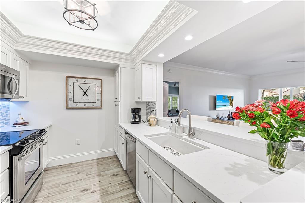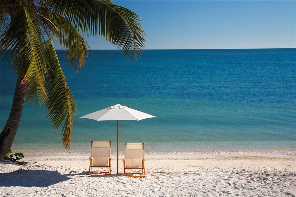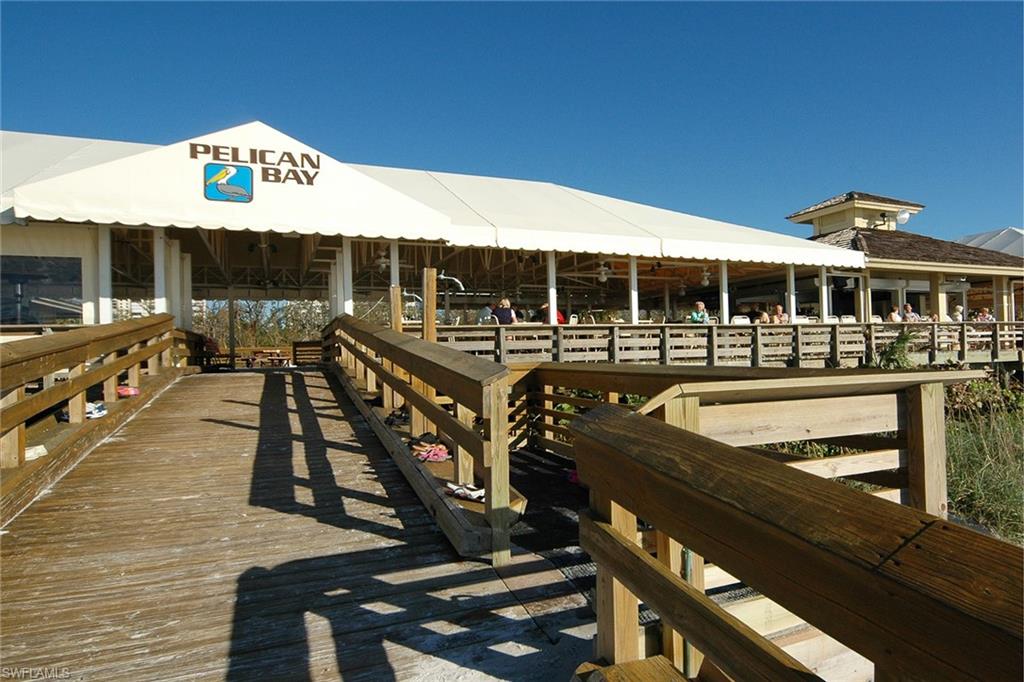 Welcome to your tropical retreat in the Pelican Bay beachfront community! This beautifully updated two-bedroom, two-bath condo offers an expansive floor plan. The living room flows seamlessly into the lanai to enjoy the beauty of the Naples foliage in the morning with coffee or at night with friends and cocktails. The lanai is a serene space with sliding glass doors on both sides and screens to enjoy the fresh air. The updated kitchen features contemporary cabinetry, sleek quartz countertops, a farmhouse sink and high-quality appliances, making it easy to prepare something special for guests. The oversized primary bedroom suite is a sanctuary, featuring a large walk-in closet, en-suite bath with a spa-like feel, complete with plenty of counter space, dual sinks, a luxurious soaking tub and a glass enclosed shower. The generously sized guest bedroom allows for two full-size beds or up to a king size and includes two large organized closets allowing plenty of room for guests or a home office. Every detail of this home has been designed to offer a relaxing space after a day at the private beach, golf, tennis, pickleball or shopping. The ample storage options include a large storage closet for all your sports gear, bicycles, golf clubs, luggage and holiday decor. In addition, residents enjoy a refreshing swim in the sparkling lakeside pool at Willow Brook. Willow Brook is pet-friendly, allowing two pets per condominium with no weight restrictions, owners will keep their pets on a leash during walks. In addition, they have one of the lowest HOA fees in Pelican Bay. They boast a strong rental history, with first floor condominiums renting for up to $8,000 per month during peak season. When you are ready to head out on the town, your covered parking space is just a short distance away, with guest parking also nearby. As a resident in Pelican Bay, you will have access to an impressive range of amenities and social activities. Enjoy private beach access with complimentary chair and umbrella service overlooking miles of the Gulf coastline, two amazing private beachfront restaurants, 26 tennis courts, a fitness center, a community room for social gatherings and coming soon 20 pickleball courts. Pelican Bay golf courses are accessible with a Club Pelican Bay membership. A vibrant, friendly community which hosts regular social events, offering plenty of opportunities to meet your neighbors and engage in community activities.