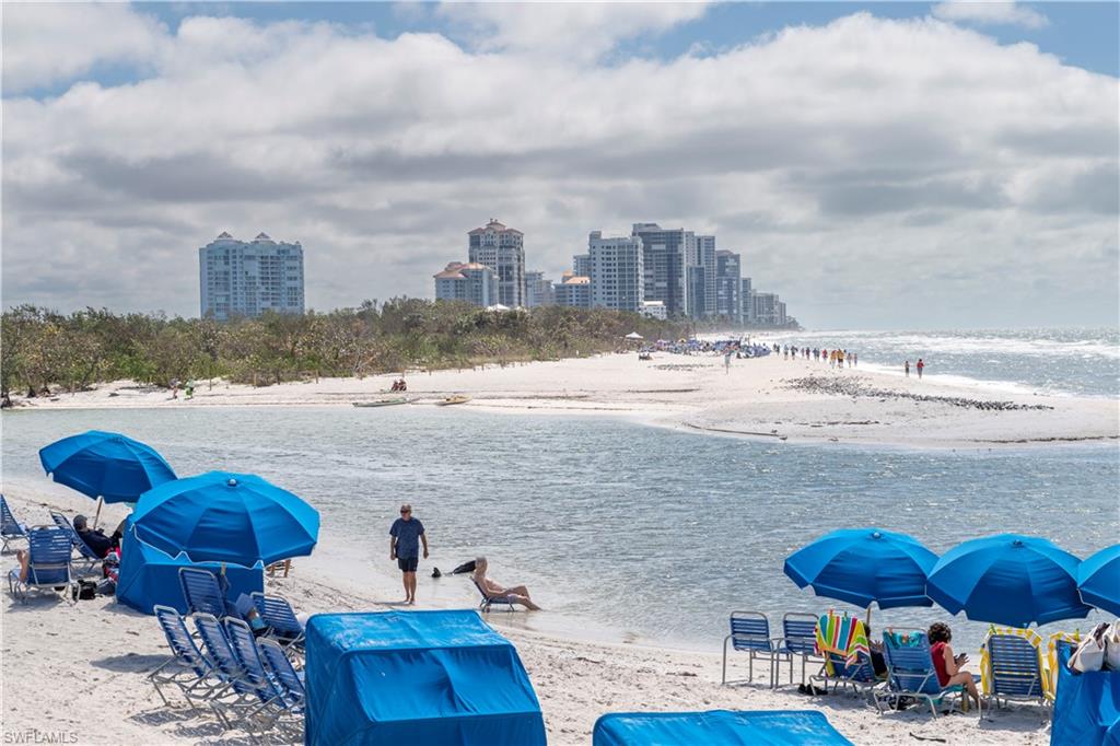 This beautifully updated corner condominium with a great layout, 1,671 SQ. FT. features two bedrooms, each with its own ensuite full bath, situated on opposite sides of the expansive living area for maximum privacy. The living room with tile flooring flows seamlessly into the sunny lanai to enjoy the beauty of the Naples foliage in the morning with coffee. The lanai is a serene space with impact-resistant sliding glass doors on both sides and screens to enjoy fresh air when temperatures are mild. The updated kitchen with contemporary cabinetry, sleek quartz countertops, a farmhouse sink and high-quality GE appliances, makes it easy to prepare something special for guests. Just off the kitchen, the dining area fits a table for 8 family members and friends and a newly added buffet cabinet with quartz top for additional storage. The oversized primary bedroom suite is a sanctuary, featuring a large walk-in closet, an updated bathroom with dual sinks, newer countertops a luxurious soaking tub and glass enclosed shower. The generously sized guest bedroom allows for two full-size beds or a king, also includes two large closets an updated bath with glass shower, dual sinks and newer quartz countertops. Also in the home, a full size washer dryer. The ample storage options include a large indoor storage closet near the front door for all your sports gear, luggage and holiday decor. In addition, residents enjoy a refreshing swim in the sparkling lakeside pool at Willow Brook. This is a pet-friendly community, allowing two pets per condominium with no weight restrictions, owners will keep their pets on a leash while walking around Willow Brook. Also they have one of the lowest HOA fees in Pelican Bay. They boast a strong rental history, with first-floor condominiums renting up to $8K/month during peak season with a 60 day min. When you are ready to head out on the town, your covered parking space is just a short distance away, with guest parking also nearby. Every detail of this home has been designed to offer a relaxing space after a day at the private beach, tennis or pickleball courts, kayaking, sailing, jet skiing, games with friends at the community center or shopping. Also available within Pelican Bay are world-class cultural events, well known musicians, the Baker museum with contemporary artists, Naples philharmonic, broadway shows, and interesting lectures. As a homeowner within Pelican Bay many of these amenities are included in your quarterly fee, such as private beach access overlooking miles of coastline with chair and umbrella service, 2 private beachfront restaurants, 26 tennis courts, a fitness center, kayaks, community room, social activities and 20 new pickleball courts. A vibrant, friendly community which hosts regular social events, offering plenty of opportunities to meet your neighbors and engage in community activities.