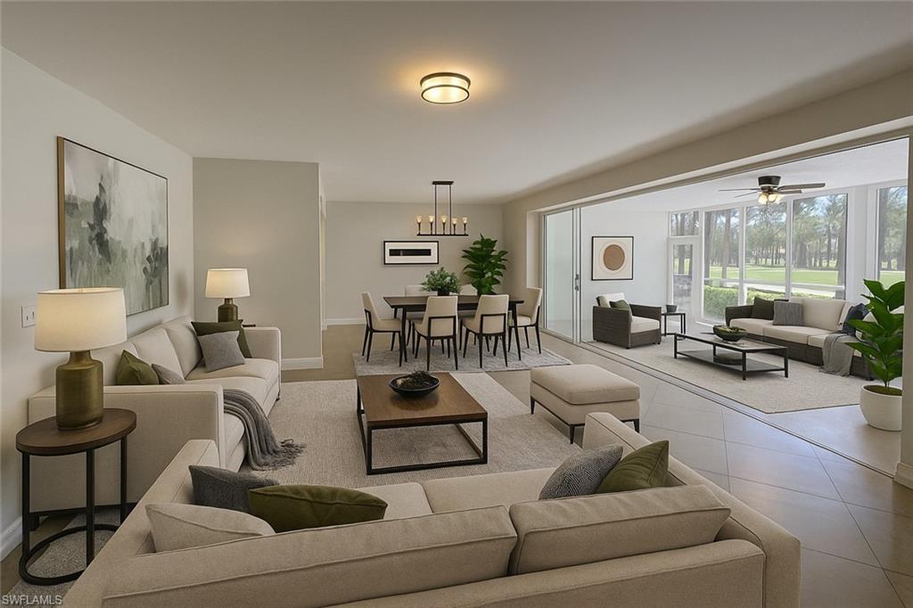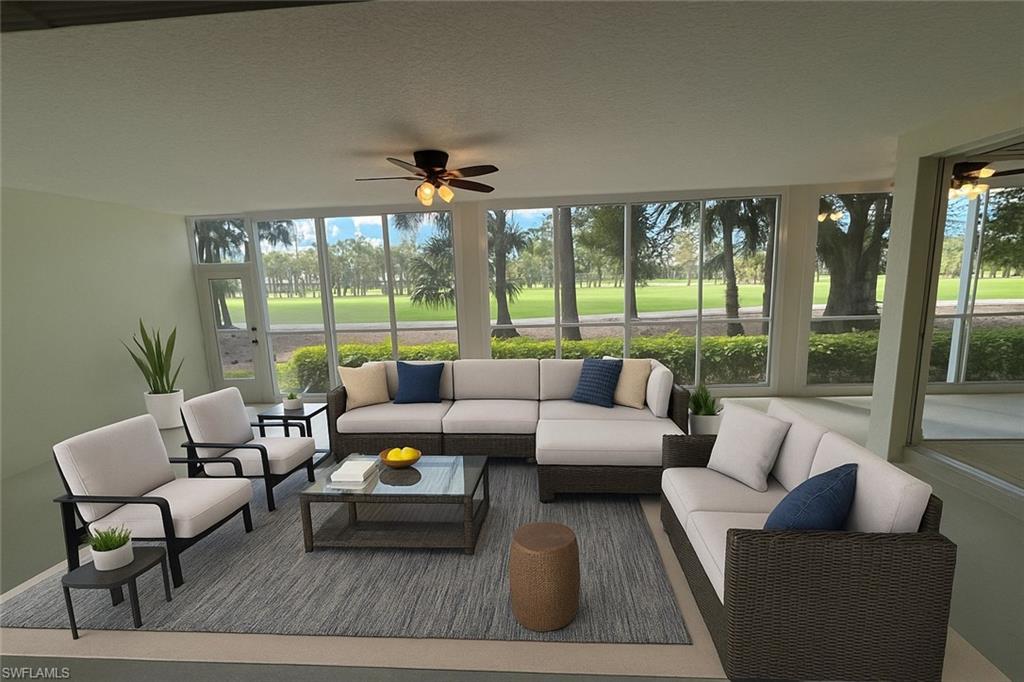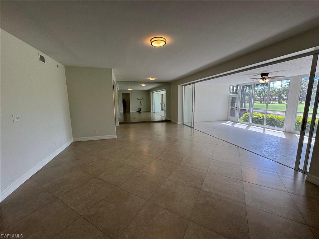 IMMEDIATE EQUITY GOLF MEMBERSHIP with This unfurnished 2-bedroom, 2-bath condominium with a 1-car garage offers a rare opportunity to create your dream home in the prestigious Eagle Creek Golf and Country Club. While the home requires some renovation, it boasts a spacious layout and an oversized lanai with stunning views of the golf course—perfect for enjoying tranquil mornings or evening sunsets. Located in a small, private club with just 370 golf members, immediate golf access is available with no waitlist. The community also features world-class amenities including golf, tennis, pickleball, multiple dining venues, and a vibrant social calendar. Ideally situated just 8 miles from the upscale dining and shopping of Naples' 5th Avenue and the beautiful beaches and nightlife of Marco Island, this property combines the best of coastal living with the charm of a close-knit country club environment. (LANAI HURRICANE IMPACT SLIDERS ARE SCHEDULED TO BE INSTALLED)