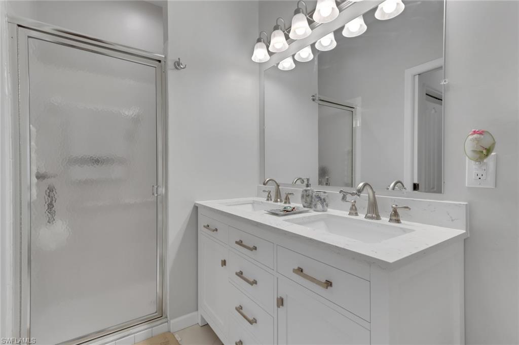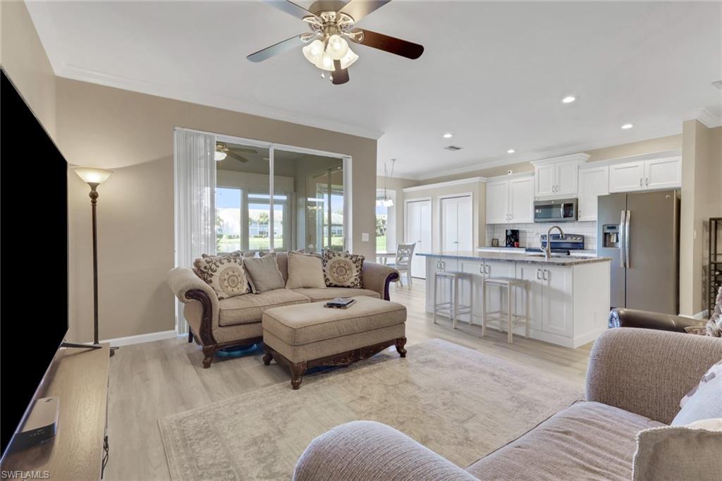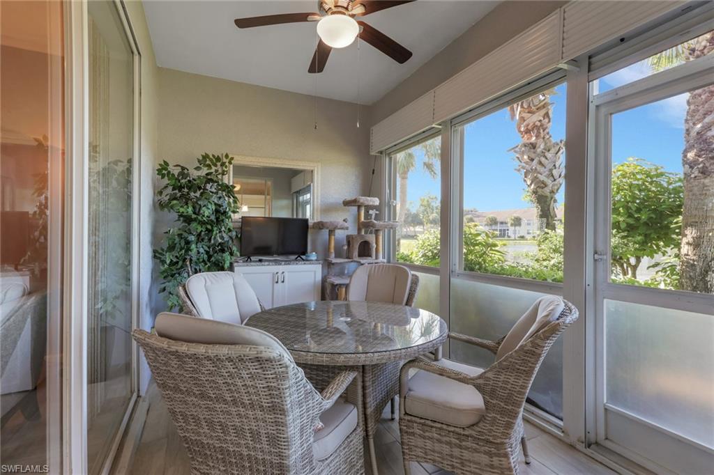 Bundled golf with WATER and GOLF COURSE VIEWS plus updated kitchen and baths? Absolutely! This well-manicured and maturely landscaped golf community is located in the heart of Estero, with convenient access to both I-75 and Tamiami Trail. This renovated 2-bedroom villa offers current and tasteful updates, featuring granite countertops with a protective seal in the kitchen, additional storage in kitchen island, stainless steel farm sink, luxury vinyl plank flooring in the general living areas, updated soft-close cabinets and drawers in the kitchen and the bathrooms, quartz countertops in the bathrooms and a newer A/C unit. With 2 screened-in lanai areas, you will be able to glide into your day or wind-down as you like, enjoying the views of the lake and water feature as well as the beautifully landscaped grounds. A one-car garage with interior access provides convenience. This particular unit is also close to the smaller community pool for quick, morning or evening swims. Upon viewing, you will see just how well-maintained this unit has been. Country Creek is an amenity-rich community featuring a newly renovated 18-hole golf course, resort-style pools, tennis courts, on-site dining, and a full calendar of social events. Perfectly located between Naples and Fort Myers, residents enjoy close proximity to RSW International Airport, shopping, dining, and Southwest Florida’s renowned beaches. If you want a golf community without the expense of equity, this is a must-see.
