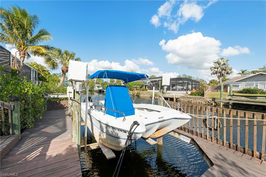 Discover this Key West–style Gulf access pool home located in the desirable gated community of Paradise Village on the Imperial River. This tropical boating community features elegant estate homes, lush landscaping, and an impressive gated entrance offering privacy and charm. This unique residence offers an open and spacious floor plan with soaring 20-foot ceilings, abundant natural light, and plantation shutters throughout. The great room features a dome providing extra sunlight, creating a bright and inviting atmosphere. The kitchen is designed for both style and functionality, featuring granite countertops, stainless steel appliances, ample cabinetry, and an open layout perfect for entertaining family and friends. The home’s French doors open to a large screened lanai and private pool area surrounded by tropical landscaping—ideal for relaxing, dining outdoors, or enjoying Florida’s beautiful sunsets. The primary suite offers two closets and a large en-suite bath with dual vanities, walk-in shower, soaking tub, and linen closet. The front bedroom is perfect for guests or use as a home office. The oversized third bedroom provides additional flexibility and can easily be divided into two rooms or converted into an office or media space. Enjoy Gulf access from your own private dock and boat lift located in your backyard—perfect for fishing, kayaking, or boating out through the river and Gulf. This canal is wider and deeper offering more space and easier boating access. With its high elevation and solid construction, this home has never experienced flooding. Ideally located off Terry Street, this property offers convenient access to all that Bonita Springs has to offer. Just minutes to Downtown Bonita Springs, the Promenade at Bonita Bay, Sugarshack, local breweries, restaurants, shops, walking and biking trails, and only a short drive or boat ride to the beach. Easy access to I-75 and RSW International Airport adds to the convenience of this prime location. Experience the ultimate Florida lifestyle in this Gulf access pool home offering space, comfort, and coastal living in one of Bonita Springs’ most desirable boating communities.