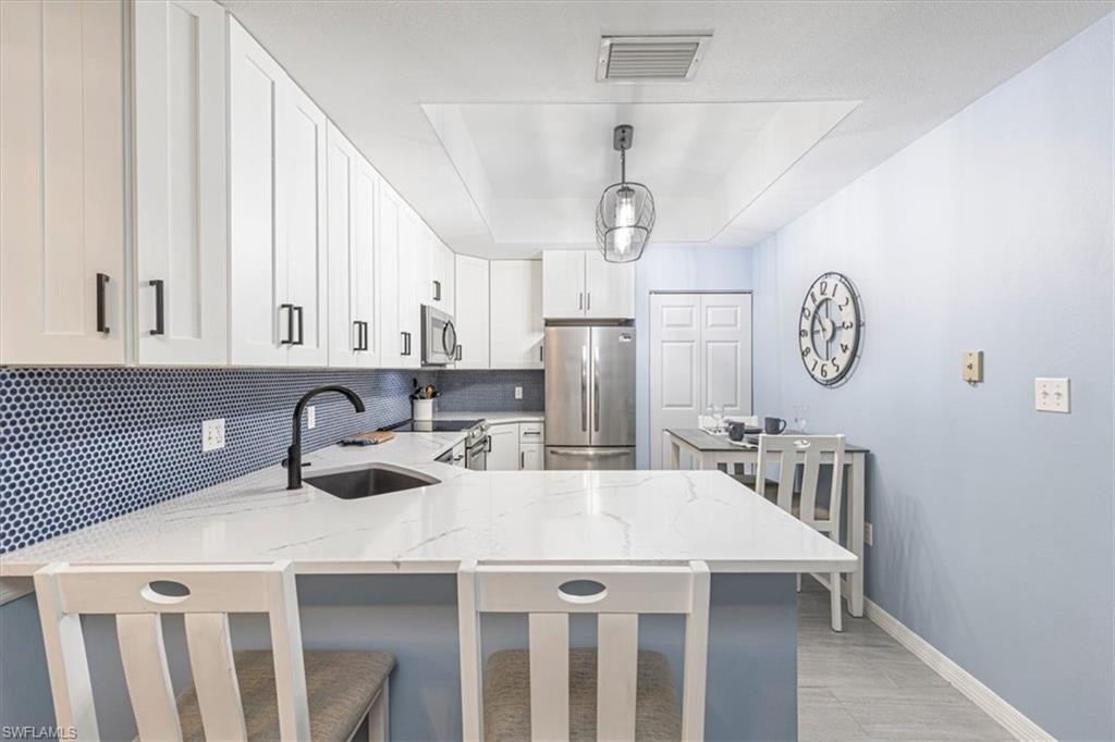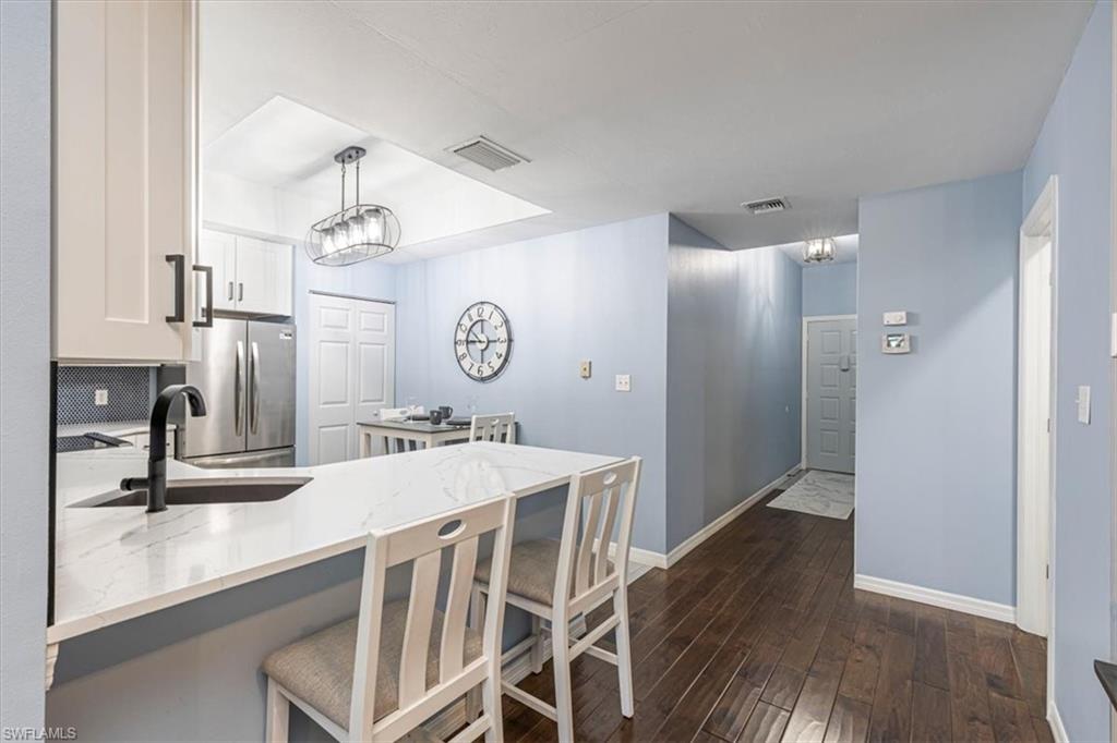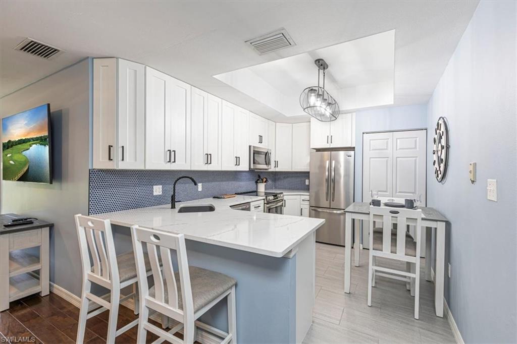 Modern Coastal Retreat | Fully Updated | Minutes to Downtown Naples & Beaches! This beautifully remodeled condo that perfectly blends modern comfort with the peaceful charm of golf course living. Step inside and you’ll immediately notice the rich, engineered wood floors that flow seamlessly throughout the home, creating an inviting warmth and refined sophistication. Enjoy stunning golf course views from your private screened lanai—an ideal spot to relax with your morning coffee or unwind at sunset. The thoughtfully updated kitchen features sleek cabinetry, quality appliances, and stylish finishes, making it a joy to cook and entertain. Located just minutes from Hibiscus Golf Club and Royal Palm Golf Club, both open to the public, this home offers exceptional convenience for golf enthusiasts without mandatory memberships. You’ll also love being close to downtown Naples, world-class dining, shopping, and the sugar-sand beaches that make this area so desirable.