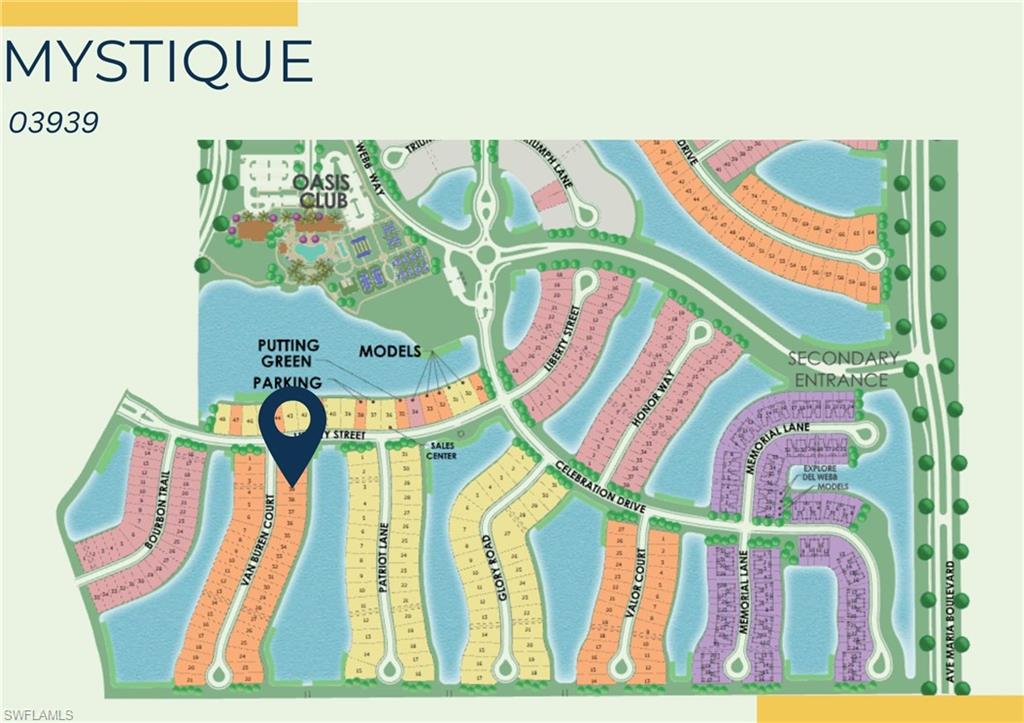 Move into Del Webb Naples Now! This Mystique features 2 Bedrooms with 2 Baths, an Extended Covered Lanai, Enclosed Flex Room, Built-In Kitchen Appliances, Walk-In Shower, and more! Located in Del Webb Naples, a premier 55+ resort-style community, residents enjoy access to over 30,000 square feet of amenity space across two stunning clubhouses: The Oasis Club and Grand Hall. The community is home to an 18-hole championship golf course (optional membership), two resort-style pools including an 8,000 sq. ft. beach-entry pool and a lap pool, a fitness center, movement studio, golf simulator, fire pit lounge, and The Rusty Putter Bar & Grille. Outdoor enthusiasts will love the 12 lighted pickleball courts, tennis courts, bocce ball courts, community garden, and miles of walking and biking trails. With a full calendar of events—including game nights, fitness classes, arts & crafts, and social gatherings—Del Webb Naples offers an unmatched lifestyle designed for relaxation, recreation, and connection. Live the active adult lifestyle you’ve dreamed of in a beautifully upgraded new home.