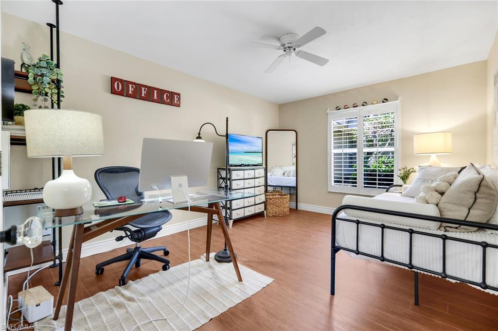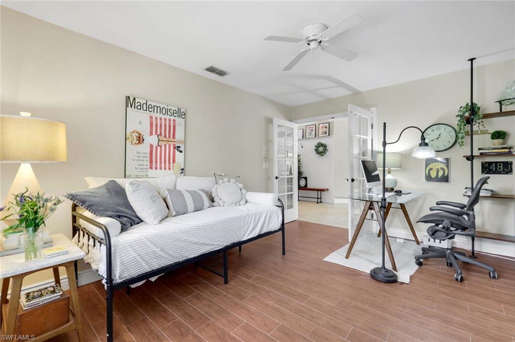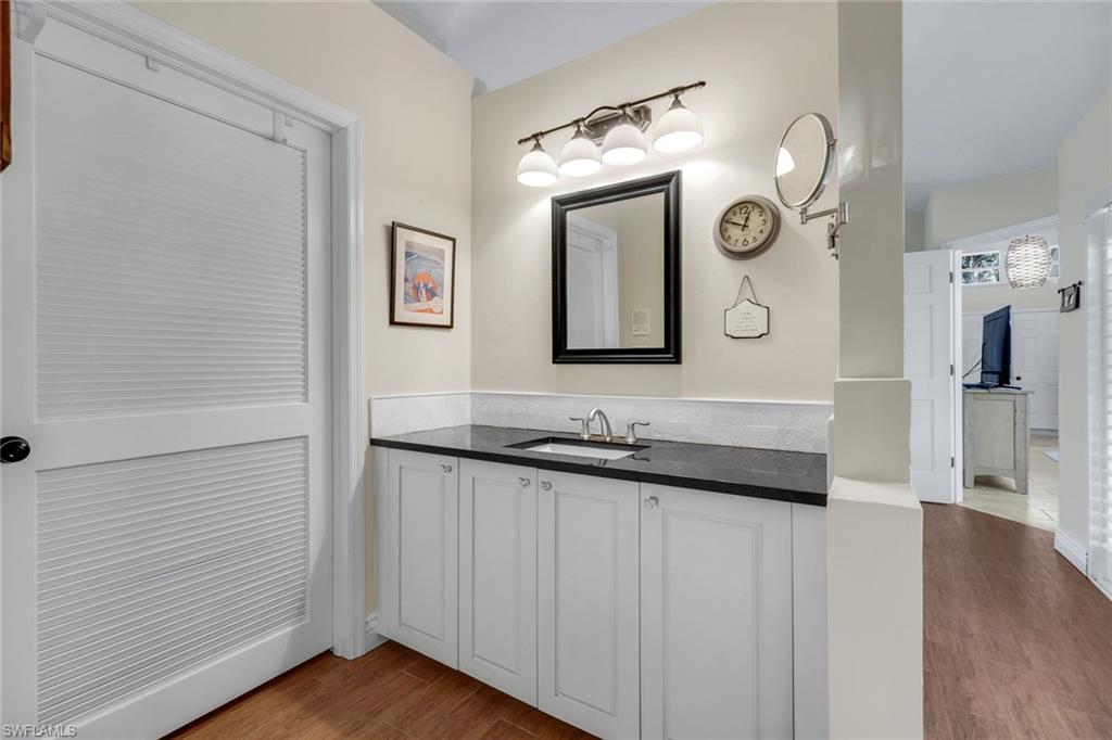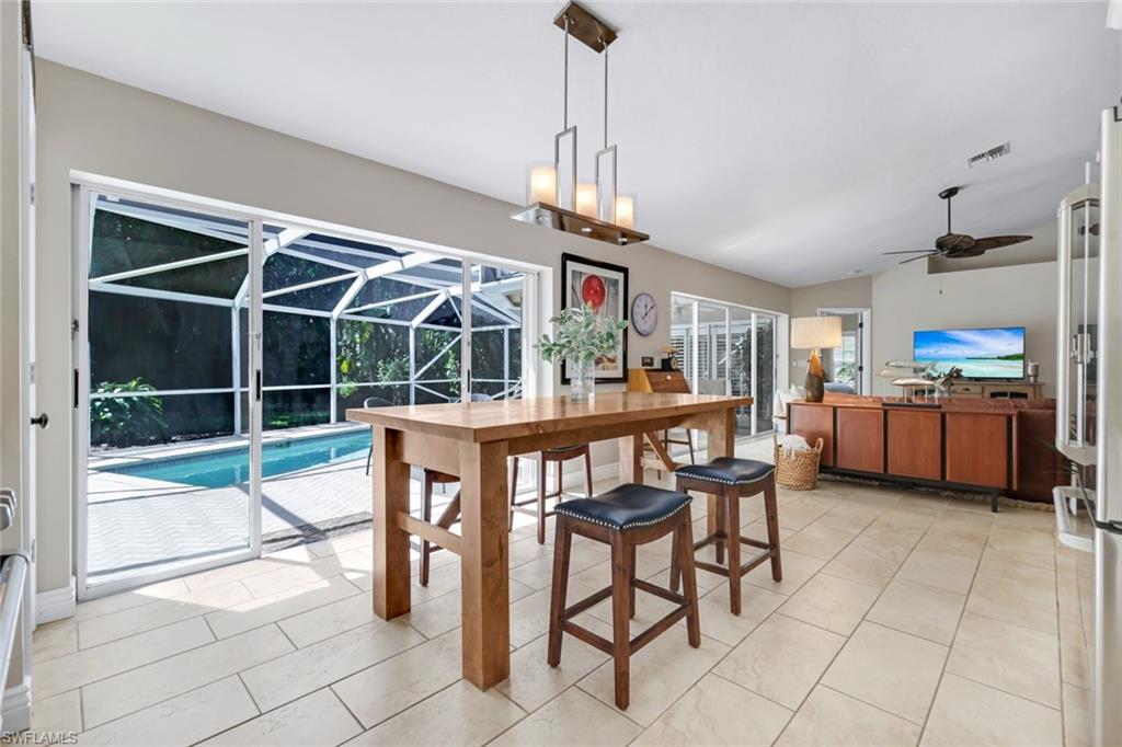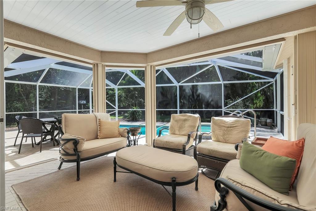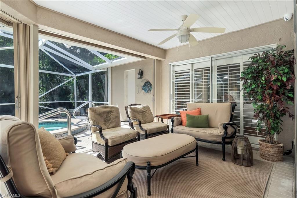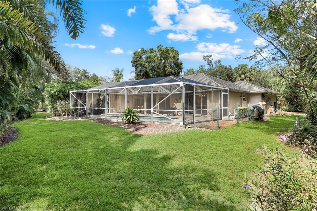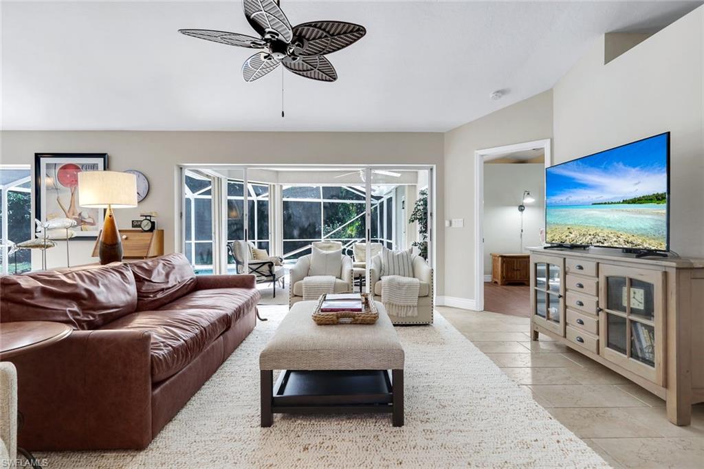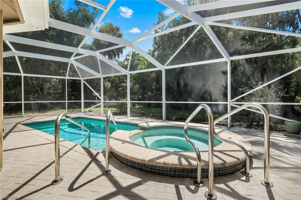 Experience refined Florida living at its best in this beautifully remodeled residence tucked away on a serene, tree-lined street in the exclusive Villages at Country Creek. Every detail of this 2-bedroom plus den, 2-bath home has been thoughtfully designed to balance modern elegance with effortless comfort. Step inside to soaring vaulted ceilings, designer lighting, and luxury flooring that flow seamlessly through the open-concept living spaces. The chef’s kitchen has been tastefully updated with high-end cabinetry, quartz countertops, stainless steel appliances, and a stylish backsplash, creating an inviting space to cook, gather, and entertain. The primary suite is a true retreat—featuring a spa-inspired bathroom with dual vanities, frameless glass shower, and custom finishes, along with private access to the lanai. A flexible den provides the perfect setting for a home office, library, or guest room. Outside, your private tropical oasis awaits. The expansive screened lanai showcases a sparkling pool and spa with waterfall feature, surrounded by lush landscaping and tranquil preserve views—ideal for both quiet relaxation and elegant outdoor entertaining. Residents of Country Creek enjoy a bundled-golf lifestyle with access to a championship executive golf course, five resort-style pools, a clubhouse with restaurant and bar, tennis and bocce courts, and a full fitness center. Lawn care, cable, and water are included—so you can focus on living beautifully. Ideally located in the heart of Estero, just minutes from Coconut Point, RSW International Airport, and the Gulf’s pristine beaches, this home combines luxury, leisure, and location in perfect harmony.