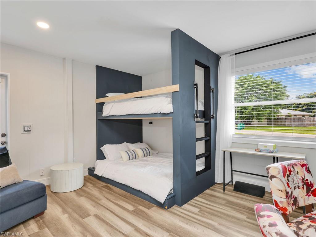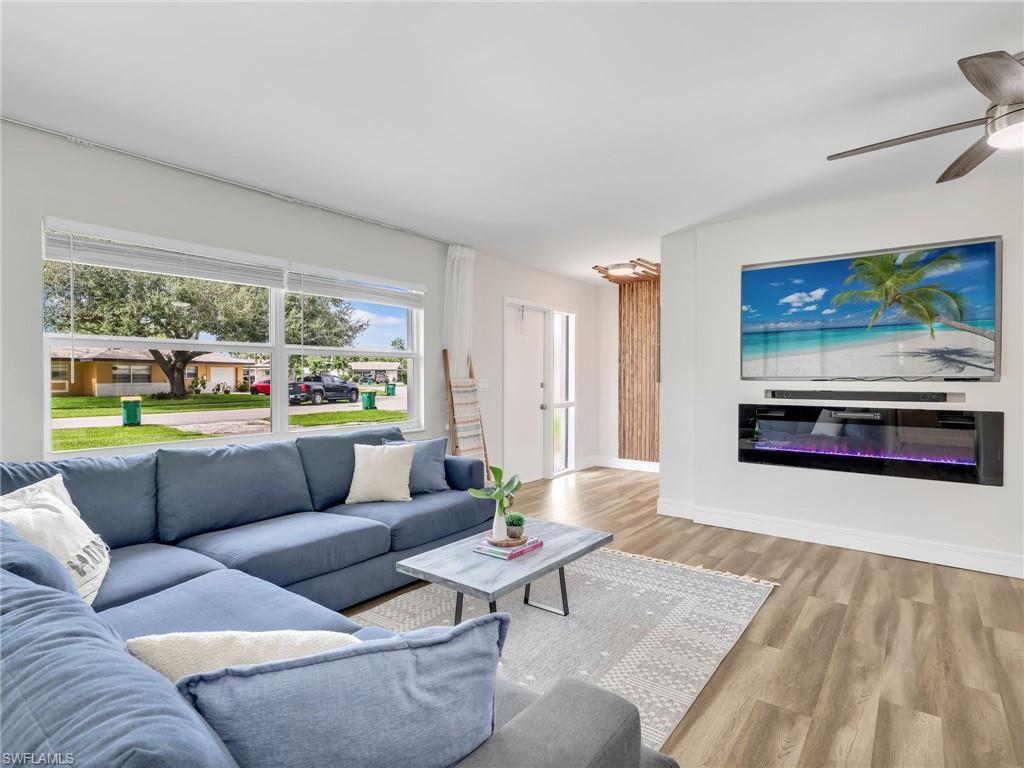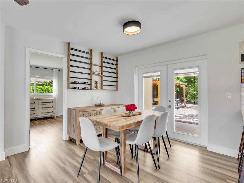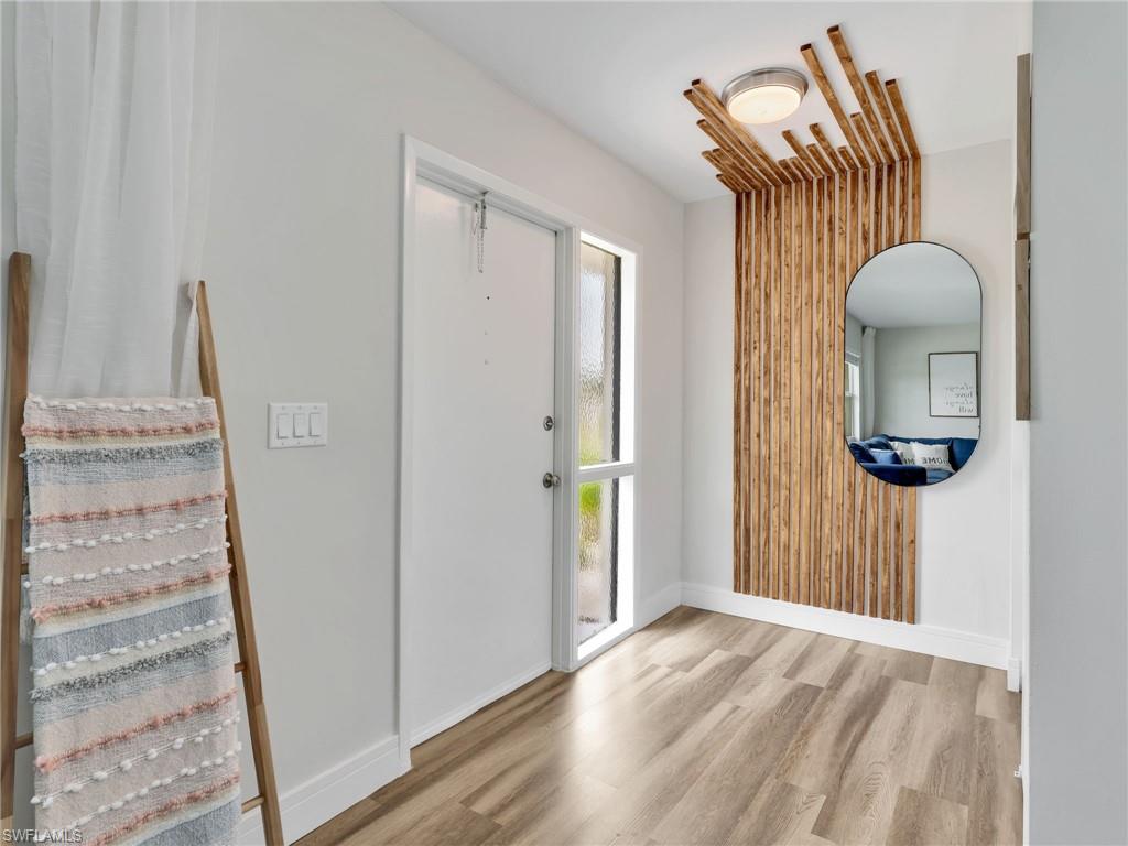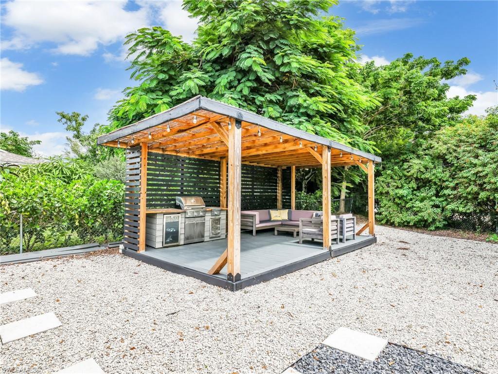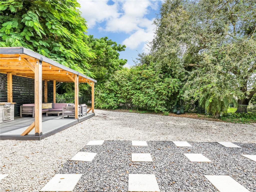 LIKE NEW – Fully Renovated and Move-In Ready! No detail was overlooked in this complete interior transformation. The home features new luxury vinyl plank flooring with updated baseboards, a freshly painted interior and exterior, and modern quartz countertops with custom cabinetry in both the kitchen and bathrooms. Bathrooms showcase beautiful new tile showers with frameless glass enclosures, complemented by upgraded fixtures, hardware, and lighting throughout. Additional enhancements include new window coverings, 2022 kitchen appliances, 2022 washer and dryer, A/C system, and beautiful landscaping for added curb appeal. This fenced property offers a rare opportunity for pool, extra space and storage, featuring a beautiful covered pergola to enjoy BBQ with family and friends, 8' x 8' tool shed, and impact windows plus hurricane shutters for storage structures. The roof was replaced in 2017, ensuring peace of mind for years to come. Located in Poinciana Village, a centrally positioned community with no HOA restrictions, residents enjoy proximity to everything Naples has to offer. You're just 10 minutes to Clam Pass Beach and SeaGate Beach, and less than 15 minutes to the historic 5th Avenue South and 3rd Street South shopping, dining, and entertainment districts. The community also features a park with a playground, basketball court, and tennis courts, adding to the appeal of this exceptional property.