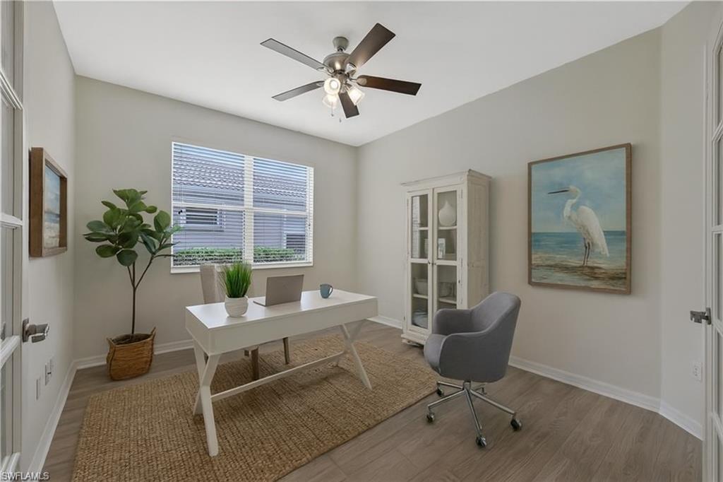 Beautifully maintained and MOVE-IN ready villa in the sought after community Bella Terra, in Estero. New interior and exterior paint, new flooring, new appliances, and more. This villa offers 2 bedrooms + den, 2 bathrooms, and a 2 car garage with private views or the large preserve. Windows and lanai are outfitted with Storm Smart roll down shutters for optimal protection. Not in a flood zone. Bella Terra is a highly desirable gated community in the heart of Estero, with a resort style pool & spa, fitness center, pickleball courts, tennis, basketball, soccer, baseball/softball field, outdoor hockey rink & playground. 24 hour guarded front gate and community security patrol. LOW HOA fees and taxes!