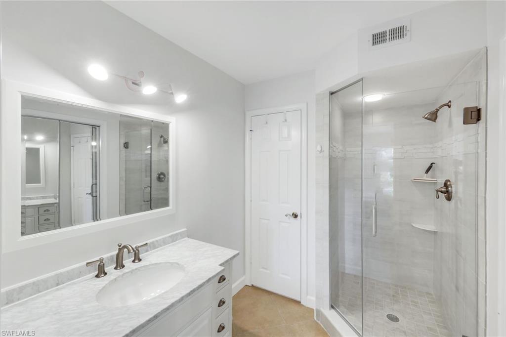 TURNKEY FIRST-FLOOR Condo in Falling Waters. Completely Renovated & Poolside Views. Welcome to this beautifully renovated 2-bedroom, 2-bathroom FIRST-FLOOR END UNIT located in the highly sought-after Falling Waters community. Just a 3-minute walk to the resort-style pool and clubhouse. This condo offers both convenience and luxury with a direct view of the pool from your private lanai. Step inside to discover an updated interior, featuring granite countertops and new cabinetry in the kitchen, modern lighting fixtures throughout, crown molding for an elegant touch and new vanities in both bathrooms. In addition, a fully redesigned master bath was completed with a sleek new shower. A new 2025 A/C unit was just installed for peace of mind and energy efficiency. Hurricane shutters are located on the sliders and window for added protection. Sellers have only used the condo four months in season every year. This turnkey property is move-in ready, perfect for seasonal or year-round living. Enjoy the vibrant community amenities, lush landscaping, and proximity to Naples’ best shopping, dining, and beaches. Come see this beautiful home!