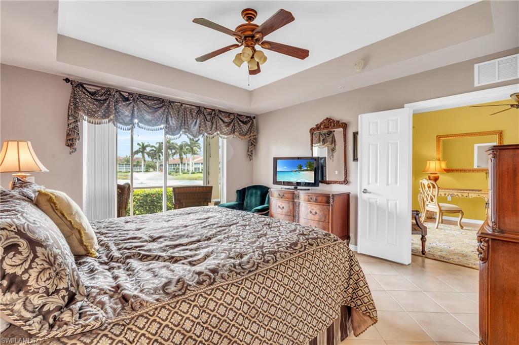 This very spacious FIRST-FLOOR, 3-bedroom, 2-bath FURNISHED END-UNIT condo offers the perfect blend of comfort, convenience, and stunning LAKEFRONT VIEWS. Built in 2006, this residence features 1,573 square feet of interior living space with an open and inviting floor plan. The OVERSIZED KITCHEN with a breakfast dining area and breakfast bar, flows seamlessly into the living and dining room, creating a comfortable oasis for everyday living or entertaining. The large primary suite has lake views, a spacious closet, and an ensuite bath with dual sinks; while the private guest bedroom suite with pocket doors offers a peaceful retreat for visitors. A third bedroom provides enormous flexibility for use as a home office or den. Pass through the sliders off the main living area to an outside living oasis - a screened lanai, where you overlook the GLISTENING LAKE and fountain, creating a relaxing Florida backdrop. Additional highlights include a ONE-CAR GARAGE with EXTRA STORAGE, a spacious laundry room, and GATED ENTRY for added security. Residents can enjoy resort-style amenities, including a very large sparkling pool, tennis courts, and bocce. This property is ideal for those seeking a low-maintenance lifestyle close to Naples’ beautiful beaches, top-rated golf courses, shopping, and dining. Whether you’re searching for a full-time residence, seasonal retreat, or investment opportunity, this condo offers the best of coastal living in a prime location. Buyer to verify all information.