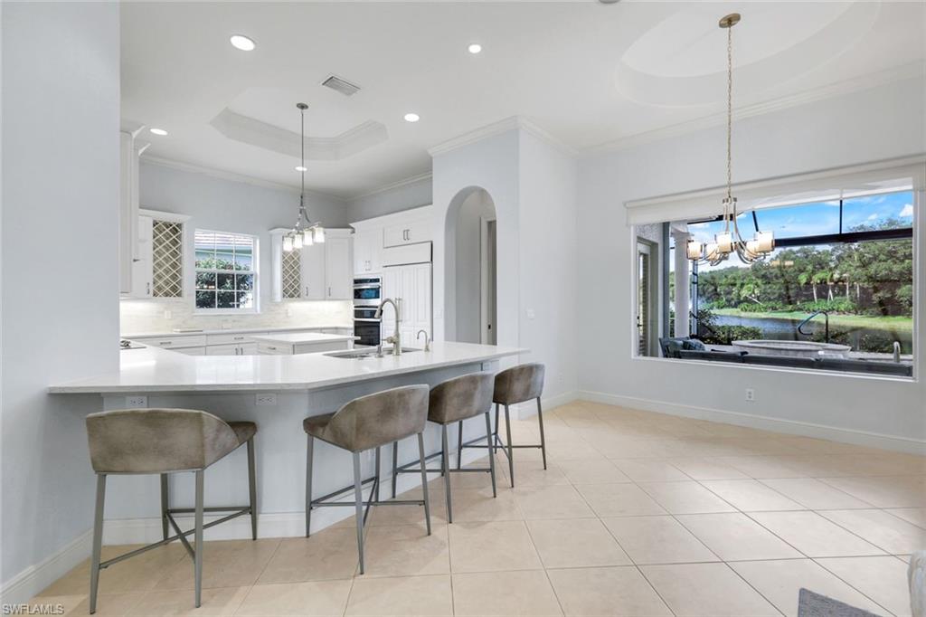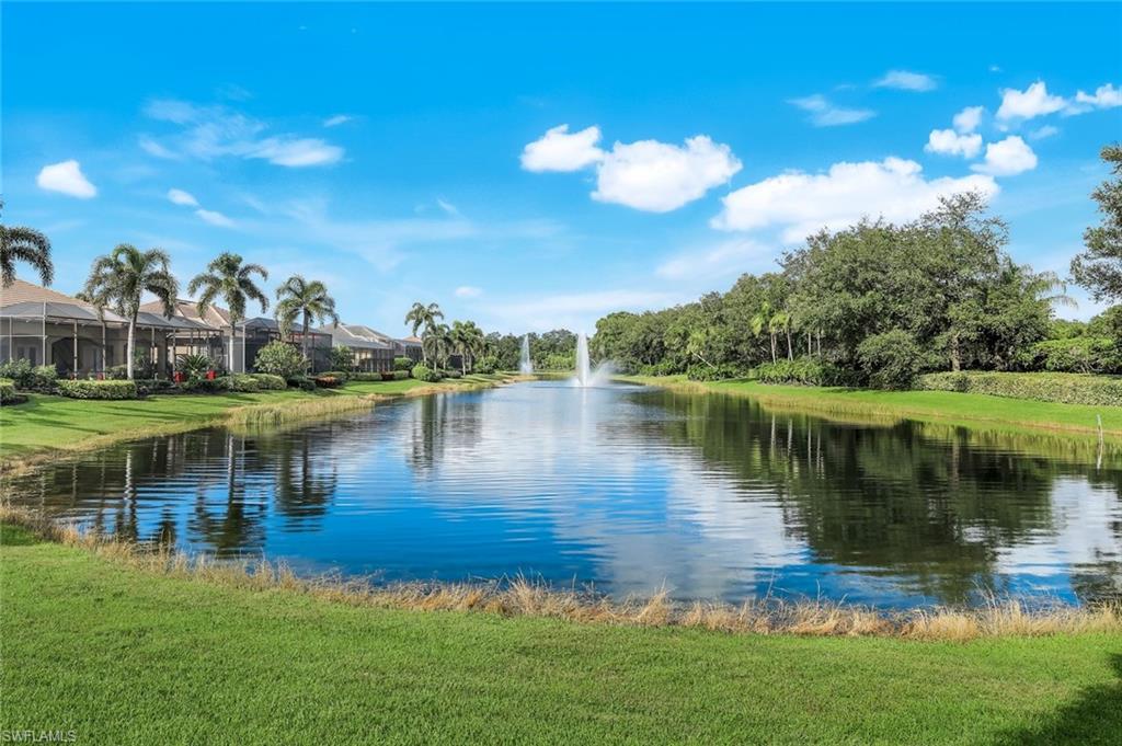 Expansive long lake views with two sparkling fountains and unforgettable evening skies! This stunning 4-bedroom + den, 4.5-bath estate home in Hammock Isles at The Vineyards combines timeless elegance with luxurious updates throughout. Recently refreshed interior, this home truly shines inside and out. Step inside and be greeted by hand-painted ceilings and columns, granite and marble countertops, a Sub-Zero refrigerator, and wood floors in the den. Thoughtful details abound, including crown molding, built-in closets, lighting fixtures and fans. Each bedroom features its own ensuite bathroom, ensuring privacy and comfort for family and guests alike. The home’s true showstopper? A breathtaking western long lake view with double fountains; a perfect setting for magnificent sunsets. Enjoy it all from your extended lanai with with picture window screens, and a large custom pool and spa, surrounded by lush tropical foliage that provides both privacy and beauty. Located within the gated community of Hammock Isles in The Vineyards, this home offers not only luxury but also an exceptional lifestyle. Optional Vineyards Country Club membership available and includes access to a world-class Wellness Center, newly renovated Clubhouse and Pool, Tennis and Pickleball, and two championship 18-hole golf courses. Just minutes from Naples’ world-class beaches, dining, and shopping, this home is the perfect blend of luxury, lifestyle, and location. Once you walk through the front door. You’ll never want to leave.