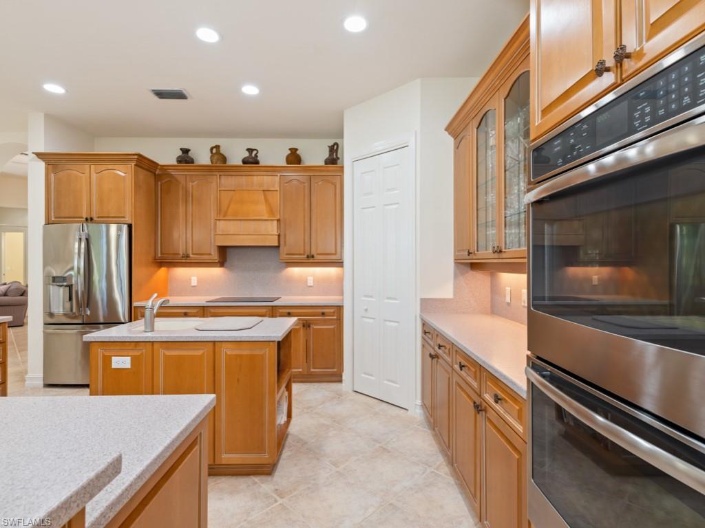 Experience timeless craftsmanship and refined comfort in this custom-built Snell residence, proudly maintained by its original owner for nearly 30 years. Perfectly positioned on an oversized corner lot, this home spans over 3,600 square feet of living space and offers 3 bedroom + den, 3.5 bath. Step inside to find soaring volume ceilings and expansive sliders framing breathtaking golf-course views. The great room and family room offer multiple spaces for entertaining, while the dining room, complete with a built-in buffet, sets the tone for formal gatherings. The chef’s kitchen includes stainless-steel appliances, a double oven, walk-in pantry, and large island. Retreat to the primary suite, where his-and-hers closets, a bonus versatile room (ideal for a small office, hobby space, or dressing room), private outdoor access, and a luxurious bath with soaking tub and oversized shower provide a peaceful escape. Outdoors, the expansive lanai features covered seating, alfresco dining, and an outdoor kitchen, all surrounding the private pool with a brand-new 2025 heater. Enjoy peace of mind with a 2024 roof, air-conditioned two-car garage, tankless water heater, and an underground propane tank. As a resident of Bonita Bay, you'll enjoy exclusive access to a wealth of amenities including a private beach park, the popular Backwater Jack's Restaurant, and several community parks. Riverwalk Park offers a kayak, canoe, and boat launch, along with pickleball and tennis courts for active living. For golf enthusiasts, there’s an opportunity to join the Country Club, which boasts five championship golf courses, a sports/racquet center with a resort-style pool, and a state-of-the-art fitness facility, along with a luxury spa and salon. Don't miss your chance to own this exceptional property, meticulously cared for and positioned to enjoy Bonita Bay’s beauty. Schedule your private tour today!