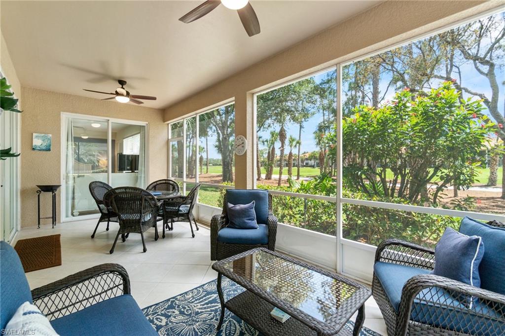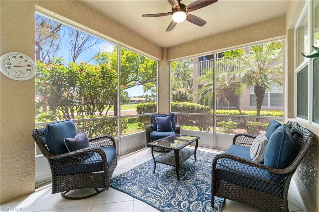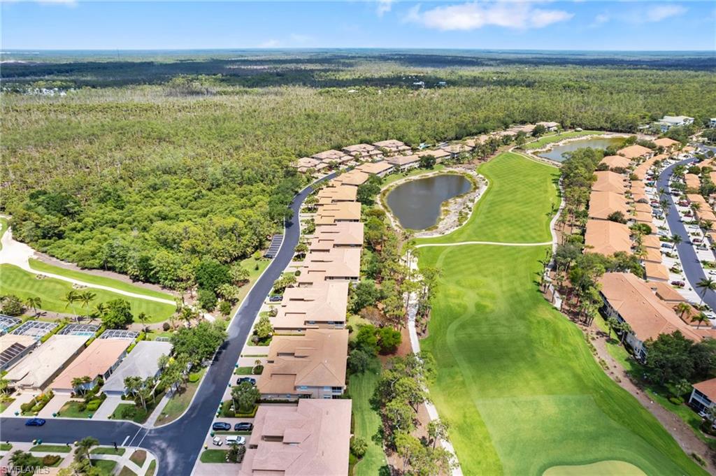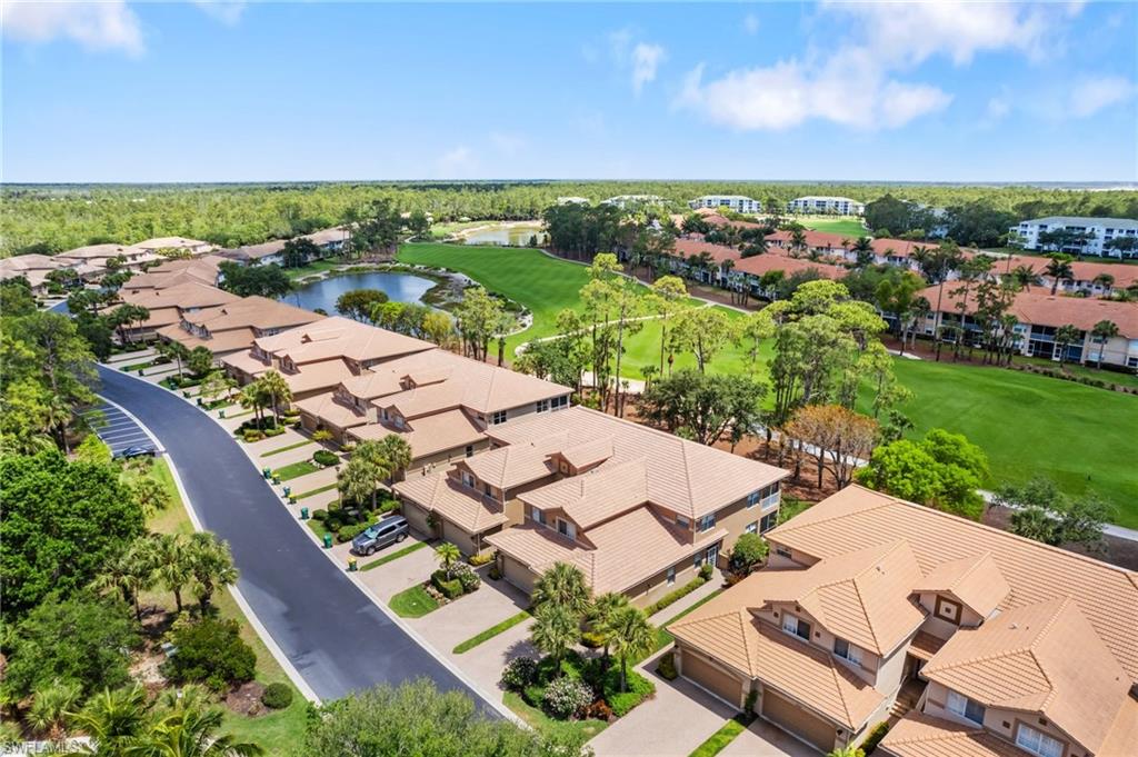 GOLF COURSE VIEWS & NEW ROOF! Gorgeous 1st floor coach home on the 6th fairway with beautiful views of green. This beautifully maintained home showcases numerous upgrades and thoughtful features throughout. The spacious, light-filled layout offers a modern kitchen with updated appliances and stylish finishes. Open-concept living and dining areas create an ideal space for entertaining. The primary bedroom suite features his and her walk-in closets and a luxurious ensuite bath, while additional bedrooms provide flexibility for guest rooms, a home office, or hobbies. The home also boasts upgraded flooring, energy-efficient windows, and smart home technology. Outdoor spaces are designed for relaxation, with a landscaped backyard and a spacious newly tiled lanai with very recent upgraded screens with finer screen/ 18” splash guard added. A golfer’s paradise with access to pickleball, bocce, and scenic nature trails, Forest Glen is a vibrant, active community filled with year-round events. Perfectly situated near miles of pristine Gulf beaches, residents enjoy serene sandy shores, swaying palms, and the best of both Olde Naples and Marco Island just moments away. Conveniently located near parks, shopping, dining, and excellent schools, this home combines comfort, style, and convenience. **THIS PROPERTY QUALIFIES FOR A 1% LENDER INCENTIVE IF USING PREFERRED LENDER. INQUIRE FOR MORE DETAILS.**