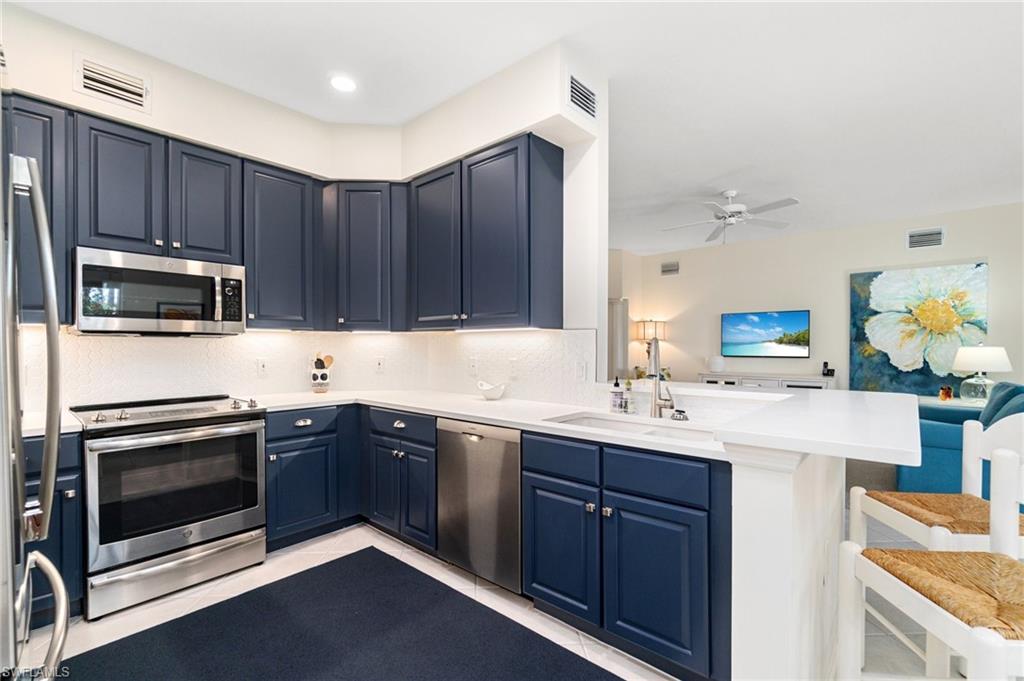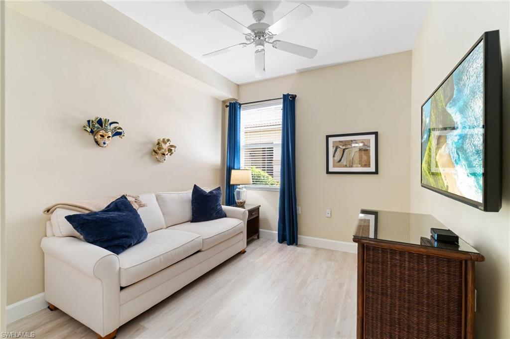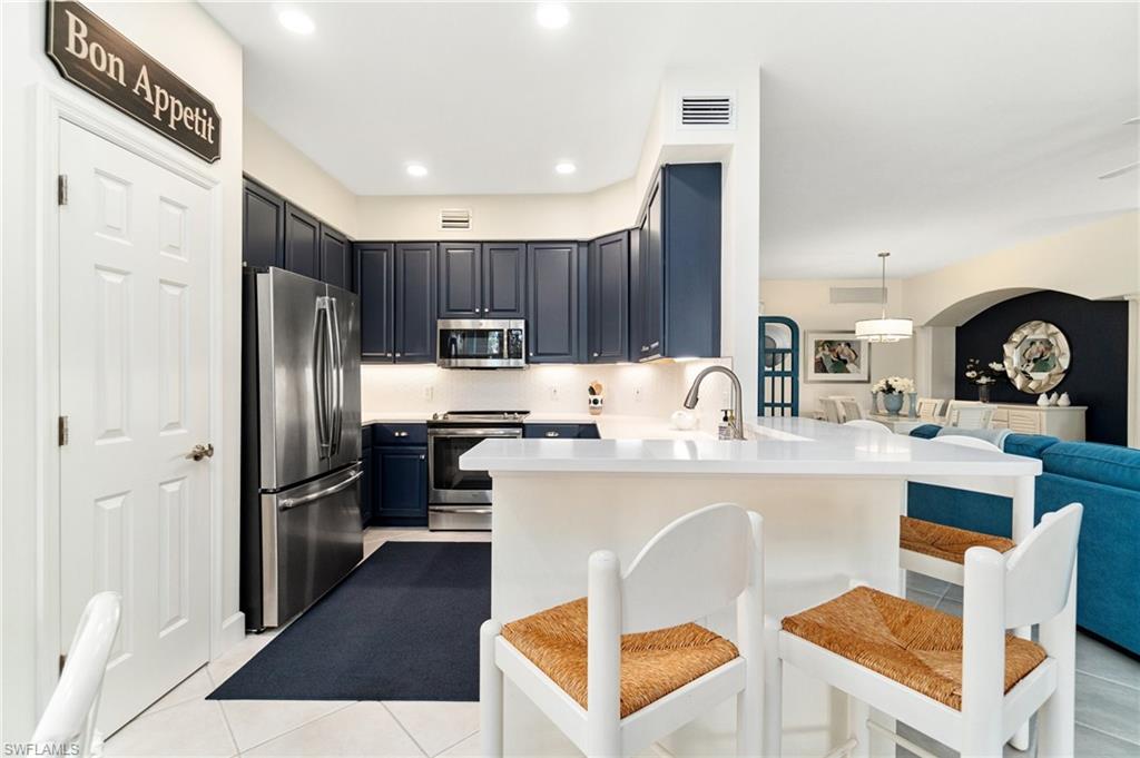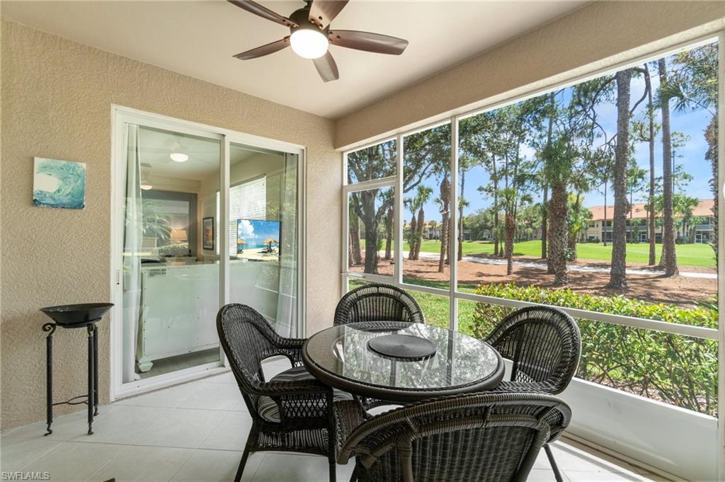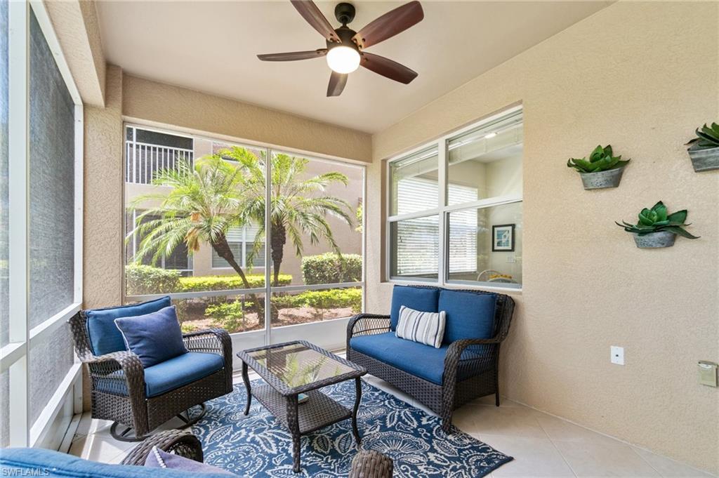 GOLF COURSE VIEWS & NEW ROOF! Gorgeous 1st floor coach home on the 6th fairway with beautiful views of green. This beautifully maintained home showcases numerous upgrades and thoughtful features throughout. The spacious, light-filled layout offers a modern kitchen with updated appliances and stylish finishes. Open-concept living and dining areas create an ideal space for entertaining. The primary bedroom suite features his and her walk-in closets and a luxurious ensuite bath, while additional bedrooms provide flexibility for guest rooms, a home office, or hobbies. The home also boasts upgraded flooring, energy-efficient windows, and smart home technology. Outdoor spaces are designed for relaxation, with a landscaped backyard and a spacious newly tiled lanai with very recent upgraded screens with finer screen/ 18” splash guard added. A golfer’s paradise with access to pickleball, bocce, and scenic nature trails, Forest Glen is a vibrant, active community filled with year-round events. Perfectly situated near miles of pristine Gulf beaches, residents enjoy serene sandy shores, swaying palms, and the best of both Olde Naples and Marco Island just moments away. Conveniently located near parks, shopping, dining, and excellent schools, this home combines comfort, style, and convenience. **THIS PROPERTY QUALIFIES FOR A 1% LENDER INCENTIVE IF USING PREFERRED LENDER. INQUIRE FOR MORE DETAILS.**