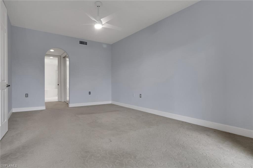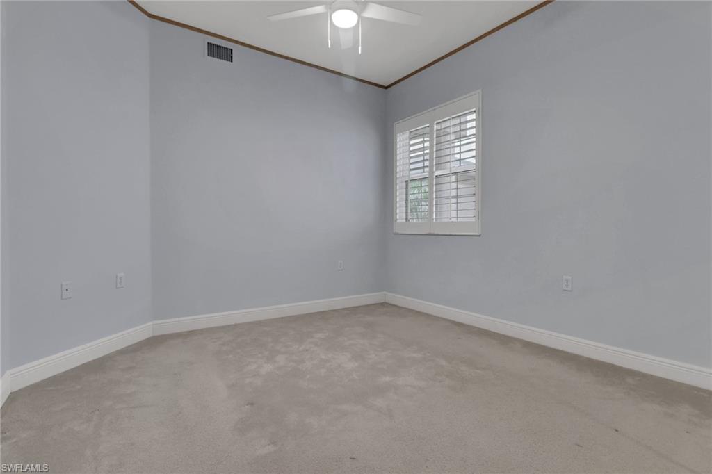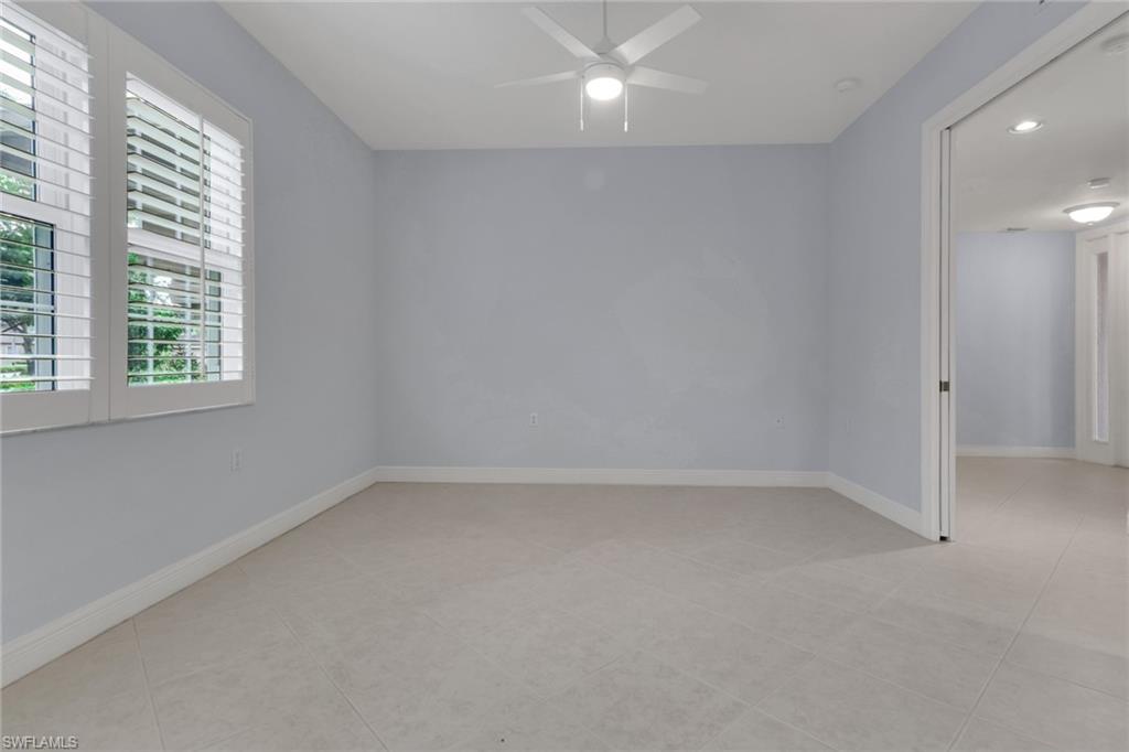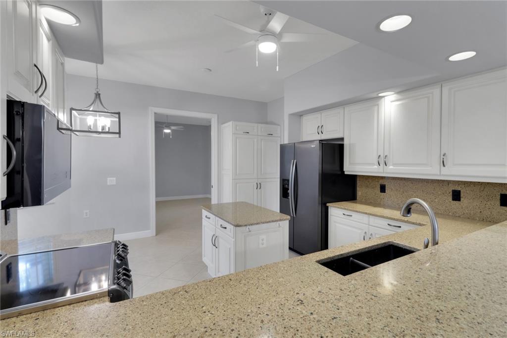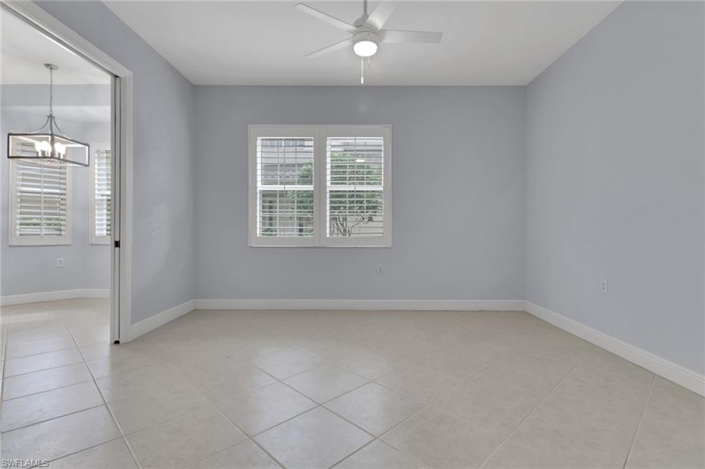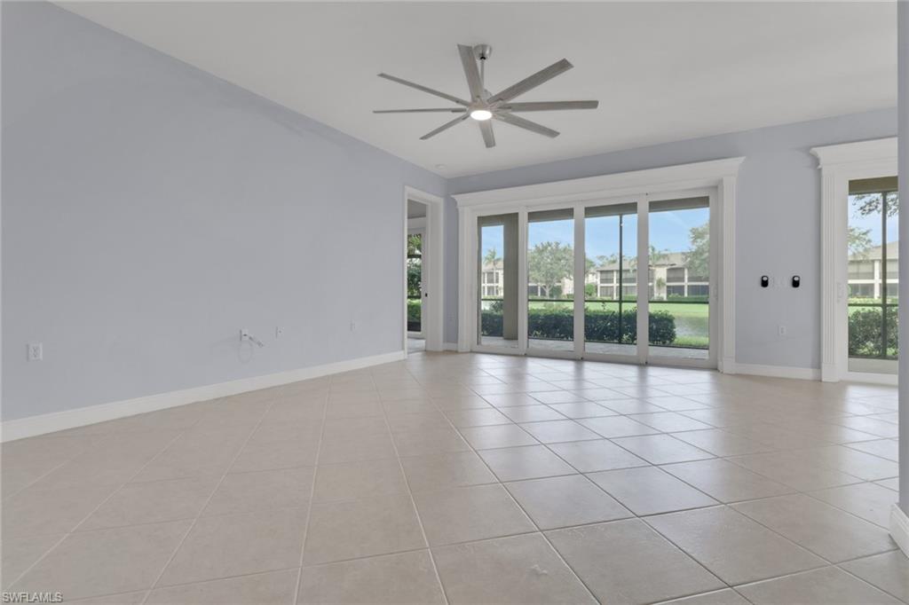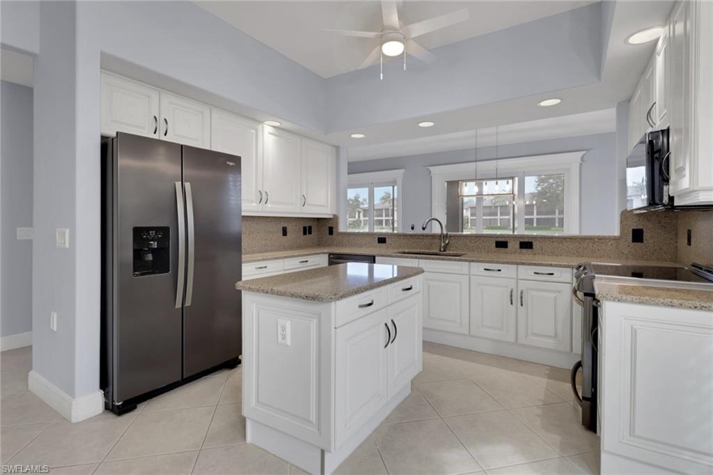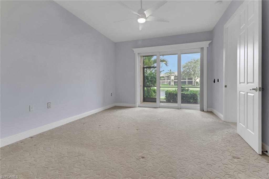 Hurricane Impact windows and doors and NEW 2025 paint and fans/light fixtures throughout! Enjoy the Naples lifestyle in this well maintained first-floor coach home in the highly-desirable gated Vineyards community. This spacious residence features an open floor plan with high ceilings, plenty of natural light, and peaceful lake views. The primary suite offers space and a private bath with both a tub and step-in shower. Additional highlights include a den, guest bedroom and bath, laundry room, and a kitchen with a breakfast area, stainless steel appliances, and ample storage. The large screened lanai sit on a serene lake with two ceiling fans to enjoy outside year round. The two-car garage is spacious with a great driveway with plenty of room to park. Regency Reserve offers resort-style amenities, and optional Vineyards memberships provide access to golf, tennis, fitness, dining, and social activities, all close to the beaches, shopping, and dining Naples is known for.