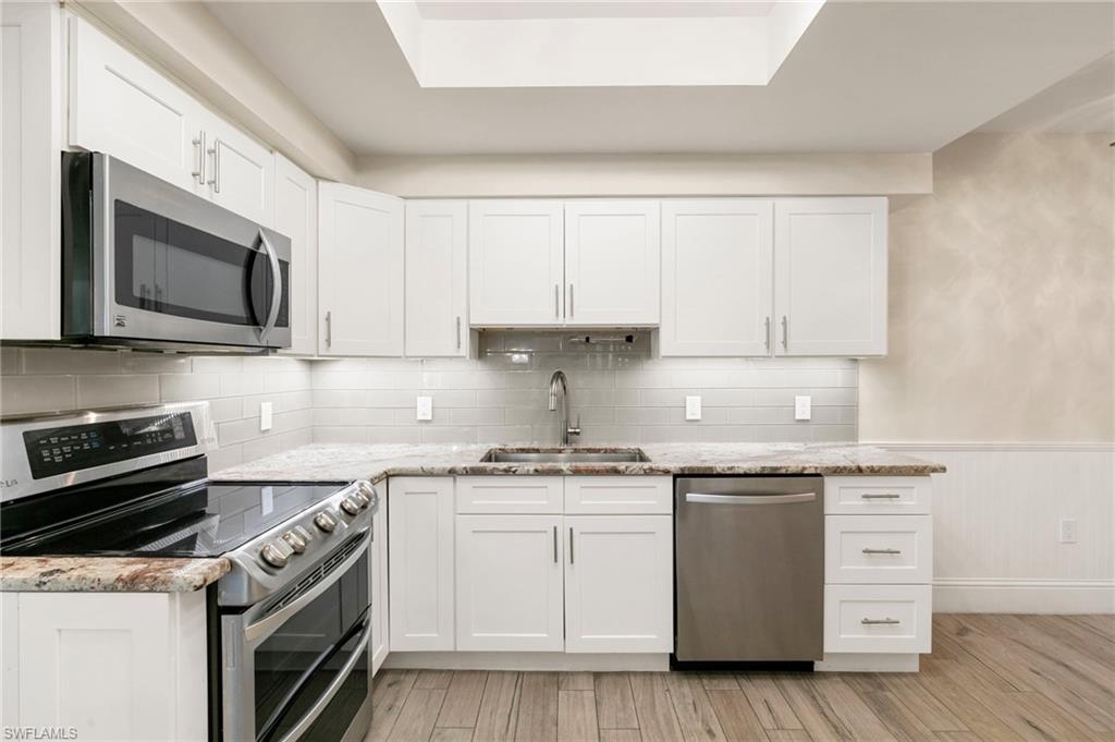 This spacious 3 bedroom updated second floor condo is located at the South end of Marco Island. The location is close to beach, Caxambas park, and Marco Walk Plaza. Easily accessed by either elevator or stairs. Located on Caxambas pass the building has a beautiful roof top deck with 360 views. This is a great place to settle in and read or view the sunset. This condo has two very large screened balconies, one facing West and one with a view of the pass. This condo has been beautifully updated including new kitchen and baths, appliances, flooring and shutters. The eat in kitchen offers stainless appliances, granite and newer white cabinetry. Walk in laundry room includes extra storage and a utility sink. Split bedroom floor plan affords privacy. The electric shutters can be conveniently operated from your phone app. Loads of closet space though out this condo. The primary bath has walk in shower, large vanity (plumbed for 2nd sink) plus bidet. The building has excellent amenities including available docks for very reasonable lease, guest suite for lease, social/party room, sauna, pool and spa, BBQ grill, covered parking and a very large exterior storage space. Building has completed its structural integrity study. Seawall has been replaced. This is a wonderful residential building, offering excellent location and space.