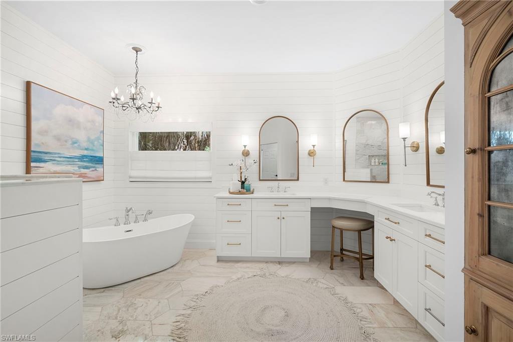 Stunningly Remodeled Coastal Retreat in Naples, FL Located west of I-75 and minutes from downtown Naples and its world-renowned beaches, this breathtaking 5-bedroom, 4-bath home sits on 2.73 acres of lush, tropical landscape. Completely remodeled with a classic coastal design, this home offers both luxury and functionality in every detail, this home is truly move-in ready and waiting for you to make it your own. Key Features: Spacious Layout: 5 generously sized bedrooms, 4 modern bathrooms, and a dedicated home office perfect for remote work. Chef’s Kitchen: Featuring exquisite Taj Mahal quartzite countertops, custom cabinetry, large island, stainless steel appliances, beverage drawers, and a wine fridge, double ovens, induction cook top, this kitchen is every chef's dream. A walk-in pantry adds extra storage for all your culinary needs. Family Room & Formal Living Room: The family room offers a cozy gathering space, while the formal living room, complete with a fireplace, provides an elegant touch to your entertaining options. Upgraded Finishes: Impact windows and doors throughout provide added security and peace of mind, while the whole-house reverse osmosis system ensures pure, clean water throughout the property. 2 newer A/C units with ultraviolet lights, new water heater., well and pool pumps ensuring that you can enjoy peace of mind and convenience. Outdoor Living: With 2.72 acres, there’s plenty of room to create your own private oasis, and the home’s newer roof ensures lasting durability. Three-Car Garage: Ample space for vehicles, storage, or a hobbyist's dream workshop. This property combines the best of modern design with the charm of coastal living, offering easy access to Naples' finest beaches, shopping, and dining. It’s truly a one-of-a-kind gem in one of the most sought-after areas of Southwest Florida. No Flood insurance required!