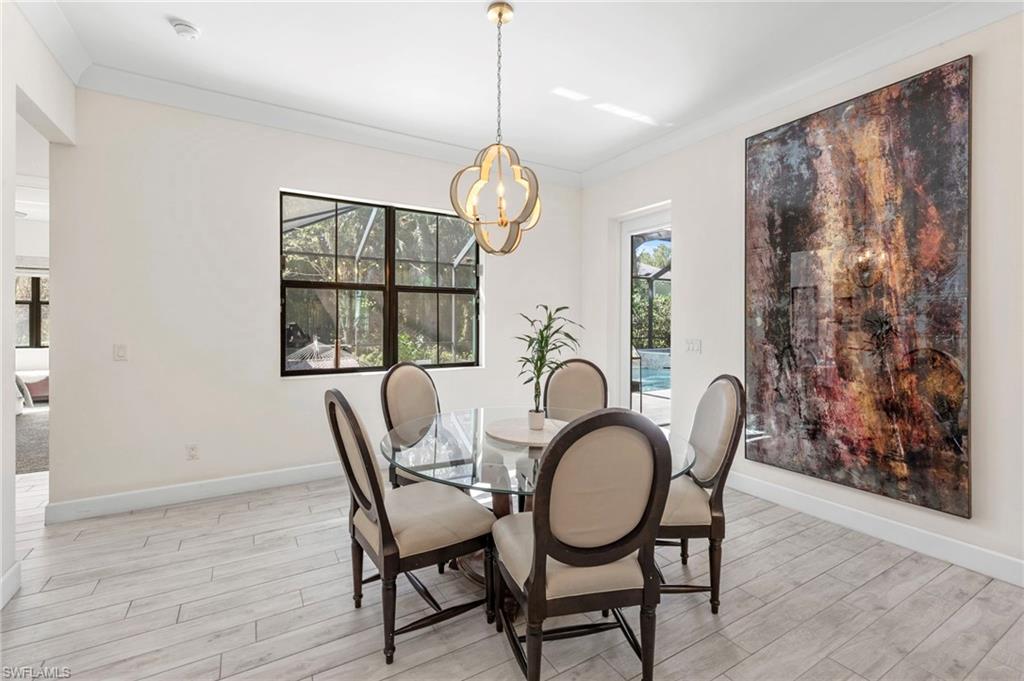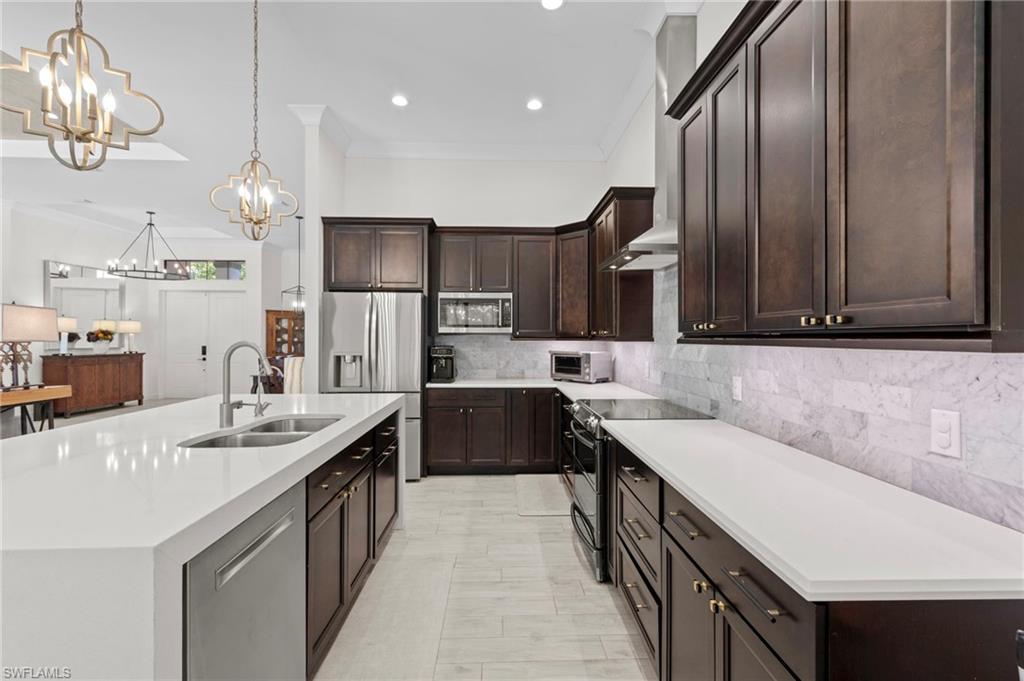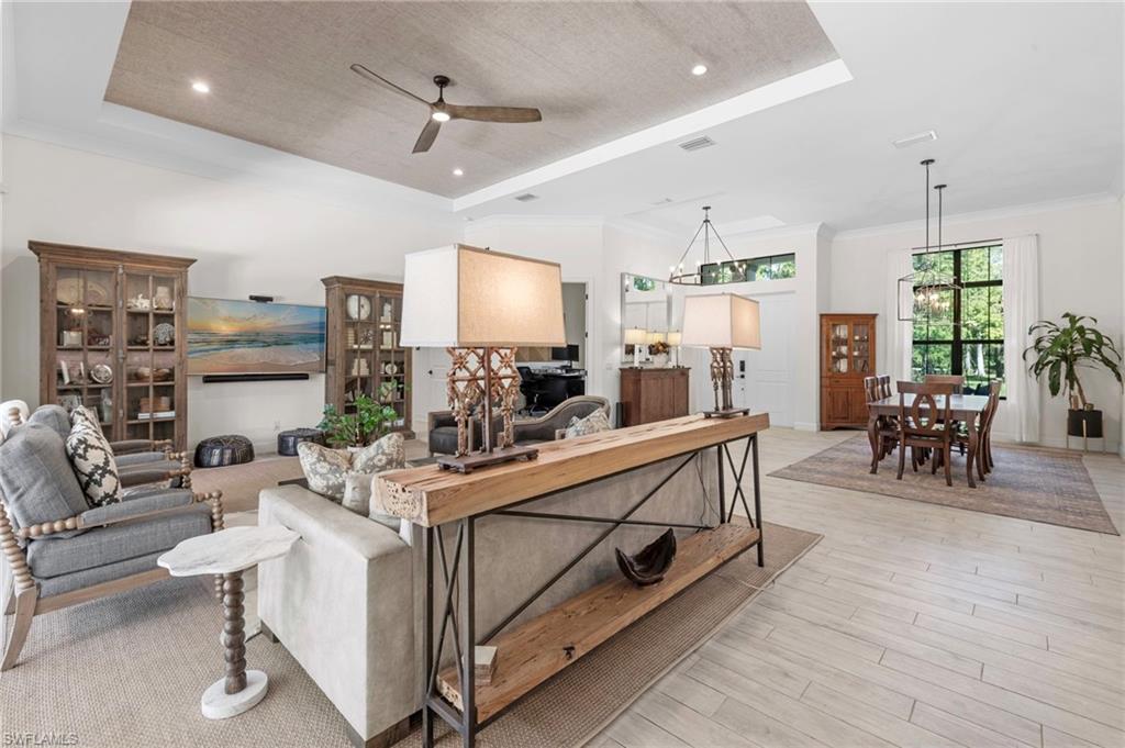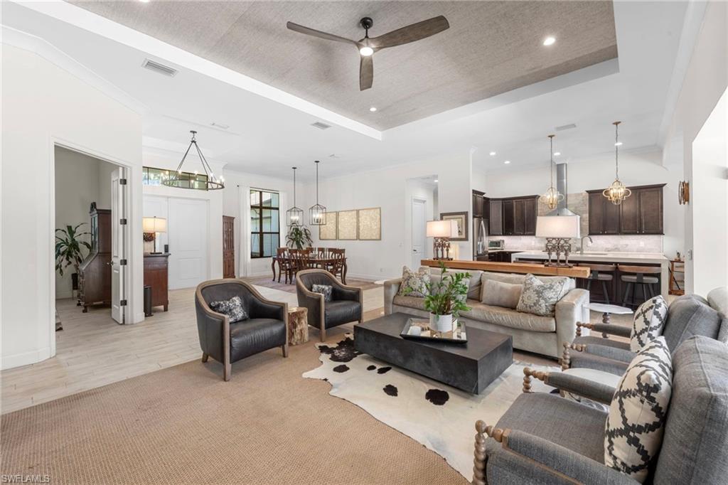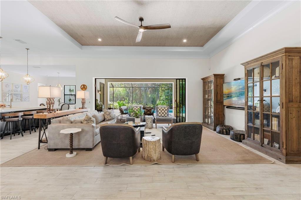 Experience the charm of this exquisite newer construction home nestled in the desirable Logan Woods community. This residence boasts an inviting open-concept floor plan that encompasses 5 spacious bedrooms plus a den, alongside 3 full bathrooms and a 3-car garage. One of the standout features of this home is the custom saltwater pool, complete with a beautifully designed flow-over spa, perfect for relaxation and entertainment. Step inside to discover the elegance of 12-foot tray ceilings that enhance the living area, creating an airy and sophisticated atmosphere. The home is designed for seamless indoor-outdoor living, featuring pocket sliding doors that open up to the lanai, allowing for effortless transitions between the two spaces. The kitchen showcases custom solid wood cabinetry. Additional highlights include a paved driveway, the efficiency of whole-house SOLAR POWER, a spacious mudroom, and an oversized garage finished with epoxy flooring. The property is enveloped in lush, tropical landscaping, creating an inviting and serene environment that complements the home’s design. With its ideal southern exposure, this residence offers the perfect balance of indoor and outdoor living. Logan Woods is located in the heart of Naples, just a short drive from the pristine Vanderbilt Beach, Mercato shops, downtown, and the RSW airport. This community is known for its top-rated school zones and provides the ultimate in privacy with its expansive lots. Don’t miss your chance to schedule a tour and see for yourself the beauty and comfort this remarkable home has to offer!