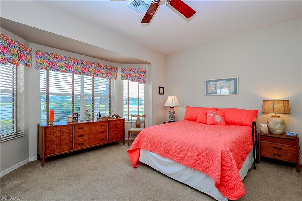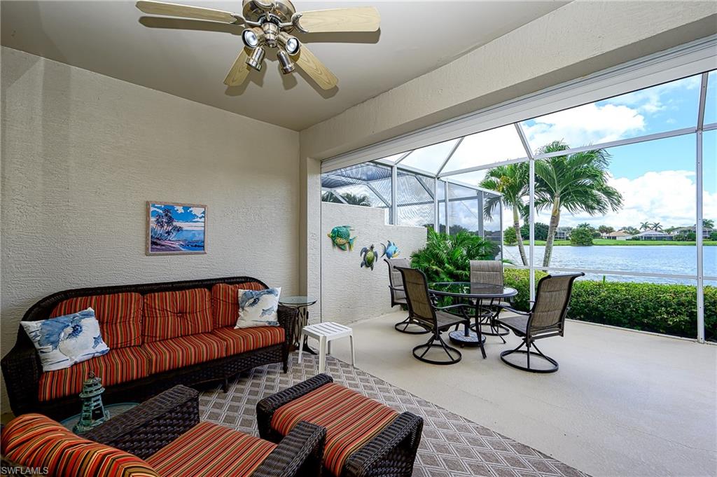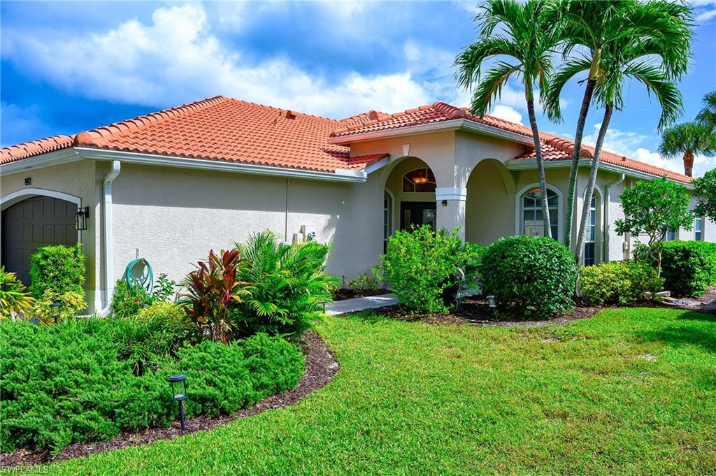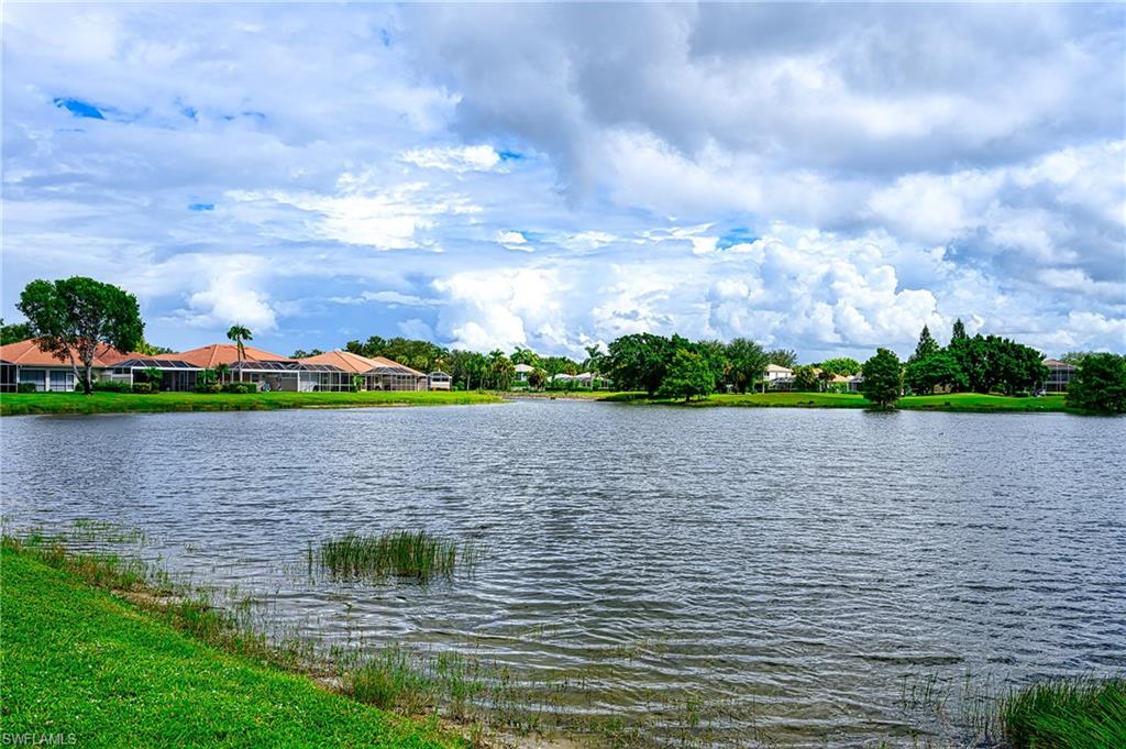 Truly Magnificent Lake and Golf Couse Views! Two car garage Villa being offered turnkey furnished- buy as an investment, vacation home or Full time residence! Wonderful Great Room floorplan featuring a Large kitchen equipped with Stainless appliances. Enjoy Three Bedrooms (One currently being used as a Den has built in Murphy Bed with Closet space) with two spacious baths. The Primary Bedroom occupant will wake up to breathtaking sunrises! Newer Roof and Air Conditioning Unit. Low HOA fees include basic cable, internet, plus lawn and irrigation. Golf carts are welcome! Great neighborhood, pet friendly and a fantastic place for walking or riding your bike. Access to Colonial Links pool & larger Master pool by HG Club house with workout facility, pickle ball, tennis and kids play area. Located next to schools with a private entrance to Laurel Oak Elementary for Heritage Greens residents only. Minutes to I-75, 10 miles to beaches, 20 minutes to the airport and close to all shopping and restaurants. A Must see!