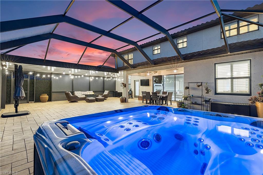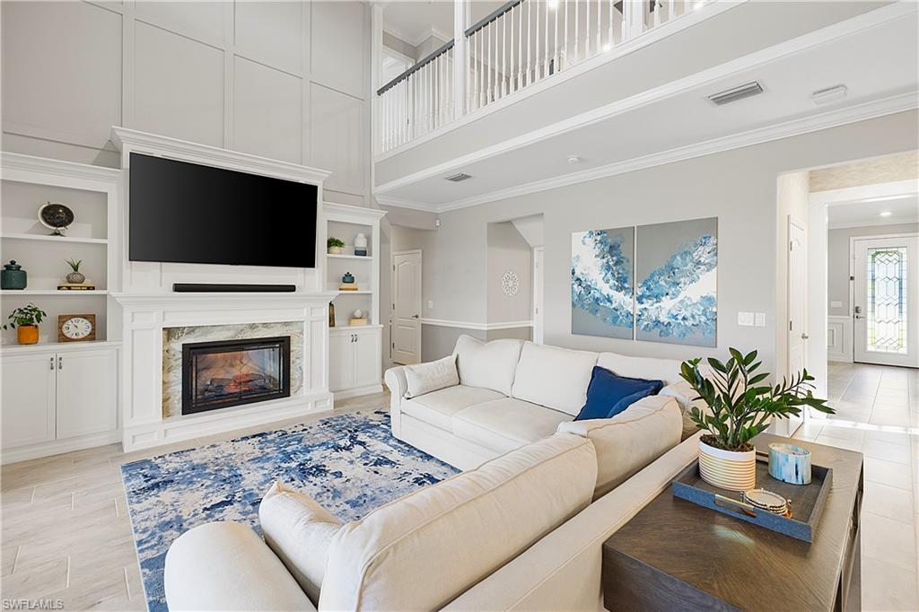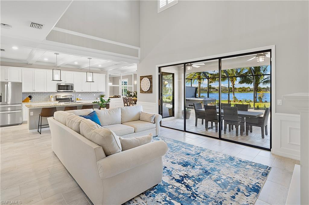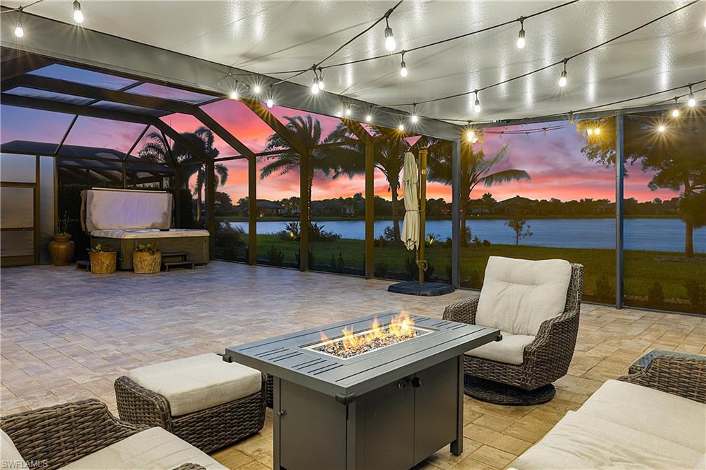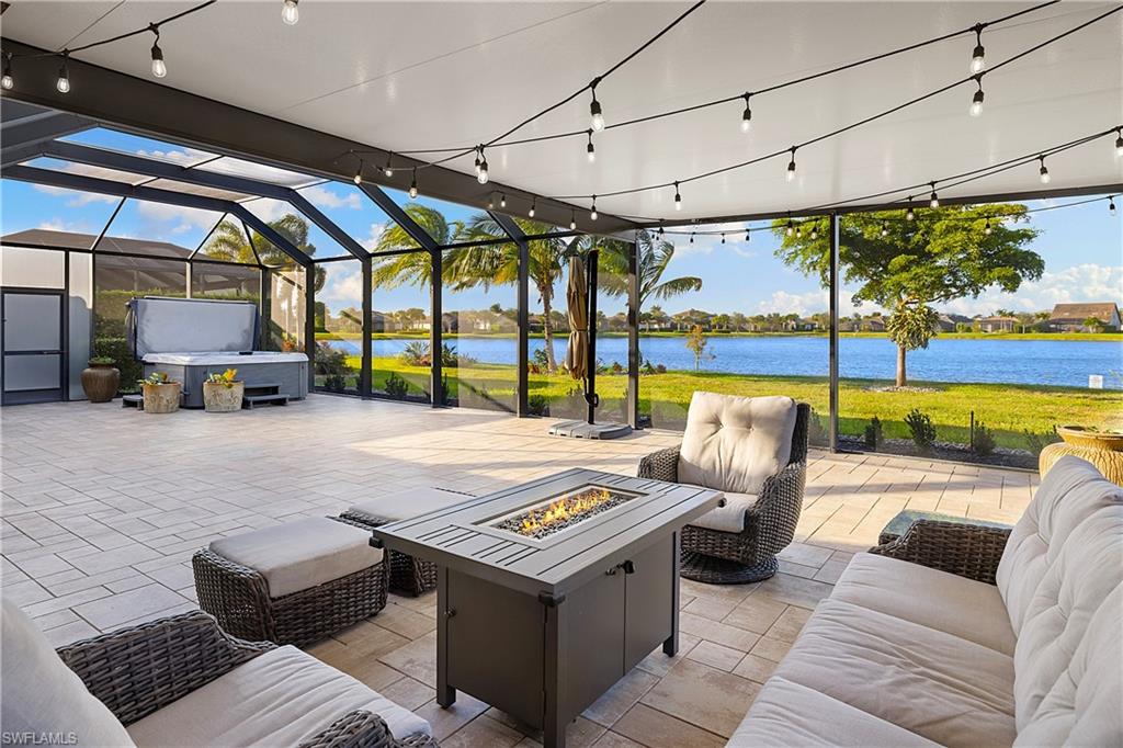 SPECTACULAR, ONE OF A KIND “SORRENTO” MODEL WITH SHIMMERING LAKE VIEWS FROM THE EXPANSIVE SCREENED LANAI AND COVERED/EXTENDED AWNING, IS AVAILABLE NOW IN THE PLACE AT CORKSCREW! This 2-Story residence, built in 2018, features 5 bedrooms (including 1st floor bedroom) plus a versatile loft space, Den/Media Room, 4 full bathrooms (including a POOL BATH), plus a Powder Bath, 3-car split garage, 3,357sf Living area. Embrace the best of Florida Living with this home’s 50’ X 25’ SCREENED PAVERED LANAI and 17.5' x 24' AWNING for additional outdoor covered space... perfect for entertaining friends and family, lounging in the sun, or relaxing in the ABOVE GROUND LUXURY SPA after a long day at work. Pet lovers… there is ample room for you to add a fence behind the lanai cage for your furry friends to play. Entering from the COVERED FRONT PORCH, you will be greeted by an additional downstairs living space with a BUILT IN OFFICE. This home boasts a 2 STORY GREATROOM paired with DESIGNER WOOD TRIM ACCENT WALLS, WHITE WOOD CEILING ACCENT BEAMS and a CUSTOM ENTERTAINMENT BUILD-OUT with ELECTRIC FIREPLACE, SHELVING and CABINETS. Across the Greatroom you will find a CHEF’S DREAM KITCHEN featuring STAINLESS STEEL APPLIANCES, subway tile backsplash, white wood ceiling BEAMS in the kitchen and casual dining along with built in mirrors in the casual dining space. The BUTLER’S PANTRY showcases a WINE FRIDGE and QUARTZ countertops. The custom OVERSIZED WALK-IN PANTRY with sliding barn doors, butcher’s block counters, built-in shelving enhanced by under-cabinet lighting is a chef’s delight. Additional custom finishes within this home include MILLWORK throughout the 1st story, CROWN MOLDING, PLANTATION SHUTTERS, designer light fixtures and fans, BUILT IN DESK, as well as a 22KW FULL HOME GENERATOR AND 500 GALLON PROPANE TANK that puts all storm stress at ease. Upstairs you'll find the SPACIOUS PRIMARY SUITE with dual closets that include BUILT IN CLOSET ORGANIZERS and a Primary Bath with double sinks and a separate soaking tub and shower. The Primary Suite is joined by 3 additional Guest Bedrooms, 2 Full Baths (one guest bedroom is ensuite), Loft and ENCLOSED Den/Media Room. EVERY BEDROOM HAS BUILT-IN CLOSET ORGANIZERS! THIS PROPERTY IS HIGH AND DRY AND LOCATED IN FLOOD ZONE X... NO FLOOD INSURANCE REQUIRED! The amenities at The Place at Corkscrew are second to none!... Resort Pool w/100' Waterslide & Spa, Indoor Restaurant and Bourbon Bar, Cafe, Outdoor Bar, Fitness Center, Movement Studio, Tennis, Pickleball, Bocce, Basketball, Playground, Dog Park, Childwatch, Spa Services, 2 Entry Gates. Just Minutes to Schools, Shopping, Restaurants, Airport, Beaches. For GOLF ENTHUSIASTS, the highly rated Jack Nicklaus designed OLD CORKSCREW GOLF CLUB is open to the public and located across the street from the community! NEW PUBLIX GROCERY STORE PLAZA, JUST 1.4 MILES AWAY! OTHER TENANTS INCLUDE DUNKIN DONUTS, UPS STORE, LEGNO ITALIAN RESTAURANT, NAIL SALON, DENTAL OFFICE, AND MORE!