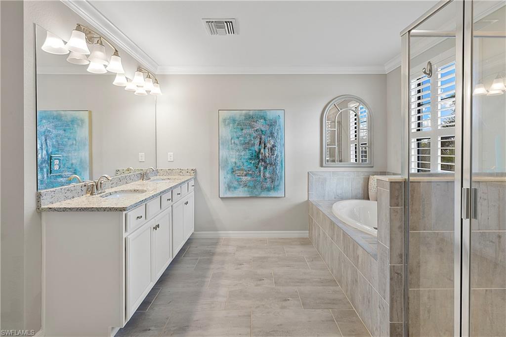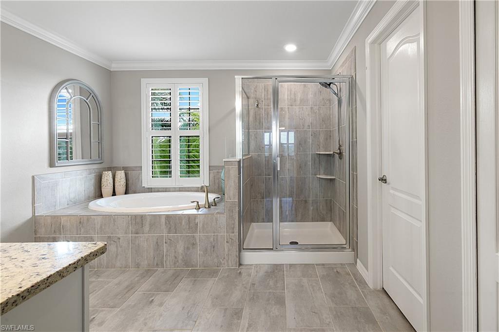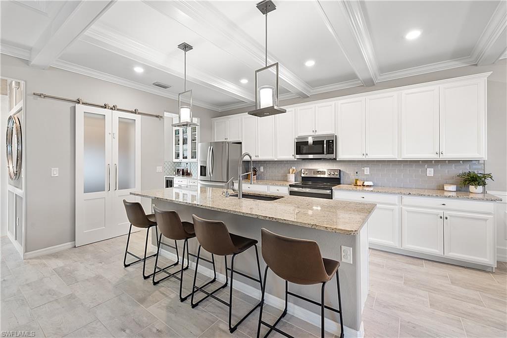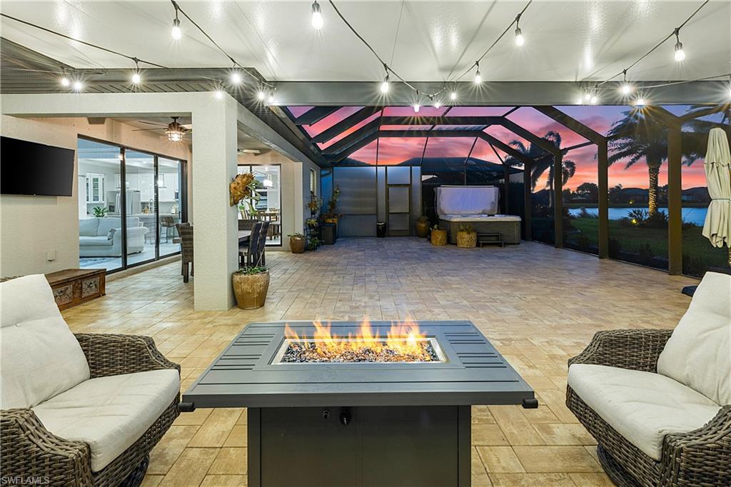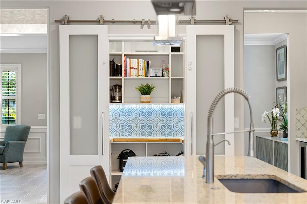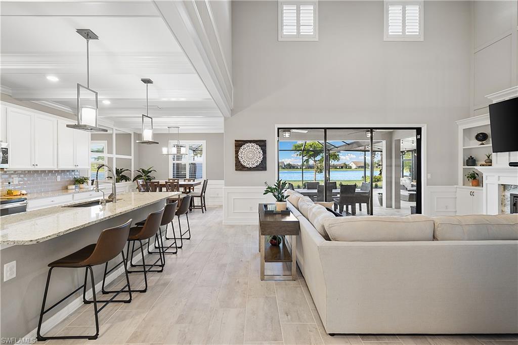 SPECTACULAR, ONE OF A KIND “SORRENTO” MODEL WITH SHIMMERING LAKE VIEWS FROM THE EXPANSIVE SCREENED LANAI AND COVERED/EXTENDED AWNING, IS AVAILABLE NOW IN THE PLACE AT CORKSCREW! This 2-Story residence, built in 2018, features 5 bedrooms (including 1st floor bedroom) plus a versatile loft space, Den/Media Room, 4 full bathrooms (including a POOL BATH), plus a Powder Bath, 3-car split garage, 3,357sf Living area. Embrace the best of Florida Living with this home’s 50’ X 25’ SCREENED PAVERED LANAI and 17.5' x 24' AWNING for additional outdoor covered space... perfect for entertaining friends and family, lounging in the sun, or relaxing in the ABOVE GROUND LUXURY SPA after a long day at work. Pet lovers… there is ample room for you to add a fence behind the lanai cage for your furry friends to play. Entering from the COVERED FRONT PORCH, you will be greeted by an additional downstairs living space with a BUILT IN OFFICE. This home boasts a 2 STORY GREATROOM paired with DESIGNER WOOD TRIM ACCENT WALLS, WHITE WOOD CEILING ACCENT BEAMS and a CUSTOM ENTERTAINMENT BUILD-OUT with ELECTRIC FIREPLACE, SHELVING and CABINETS. Across the Greatroom you will find a CHEF’S DREAM KITCHEN featuring STAINLESS STEEL APPLIANCES, subway tile backsplash, white wood ceiling BEAMS in the kitchen and casual dining along with built in mirrors in the casual dining space. The BUTLER’S PANTRY showcases a WINE FRIDGE and QUARTZ countertops. The custom OVERSIZED WALK-IN PANTRY with sliding barn doors, butcher’s block counters, built-in shelving enhanced by under-cabinet lighting is a chef’s delight. Additional custom finishes within this home include MILLWORK throughout the 1st story, CROWN MOLDING, PLANTATION SHUTTERS, designer light fixtures and fans, BUILT IN DESK, as well as a 22KW FULL HOME GENERATOR AND 500 GALLON PROPANE TANK that puts all storm stress at ease. Upstairs you'll find the SPACIOUS PRIMARY SUITE with dual closets that include BUILT IN CLOSET ORGANIZERS and a Primary Bath with double sinks and a separate soaking tub and shower. The Primary Suite is joined by 3 additional Guest Bedrooms, 2 Full Baths (one guest bedroom is ensuite), Loft and ENCLOSED Den/Media Room. EVERY BEDROOM HAS BUILT-IN CLOSET ORGANIZERS! THIS PROPERTY IS HIGH AND DRY AND LOCATED IN FLOOD ZONE X... NO FLOOD INSURANCE REQUIRED! The amenities at The Place at Corkscrew are second to none!... Resort Pool w/100' Waterslide & Spa, Indoor Restaurant and Bourbon Bar, Cafe, Outdoor Bar, Fitness Center, Movement Studio, Tennis, Pickleball, Bocce, Basketball, Playground, Dog Park, Childwatch, Spa Services, 2 Entry Gates. Just Minutes to Schools, Shopping, Restaurants, Airport, Beaches. For GOLF ENTHUSIASTS, the highly rated Jack Nicklaus designed OLD CORKSCREW GOLF CLUB is open to the public and located across the street from the community! NEW PUBLIX GROCERY STORE PLAZA, JUST 1.4 MILES AWAY! OTHER TENANTS INCLUDE DUNKIN DONUTS, UPS STORE, LEGNO ITALIAN RESTAURANT, NAIL SALON, DENTAL OFFICE, AND MORE!