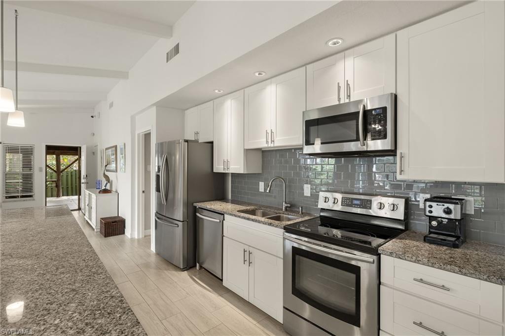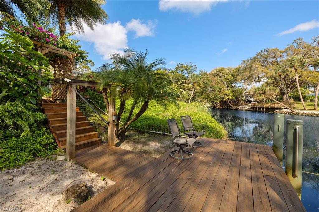 Step into your own gated private oasis with this beautifully remodeled 2-bedroom, 2.5-bath riverfront pool home, offering the perfect blend of tranquility and convenience. Situated in a peaceful setting, this home boasts a kayak dock right at your doorstep, making it an ideal location for water lovers. Launch your kayak, explore the river, or simply enjoy the serenity of the waterfront view. Inside, every detail has been thoughtfully designed. Featuring an open floor plan, vaulted ceilings, modern kitchen, and spacious living area all of which are flooded with natural light, offering a seamless connection to the outdoors. The Zen garden creates the perfect space for relaxation, while the lush surroundings set the tone for peace and calm. Located just minutes from downtown Bonita Springs, this property offers easy access to shopping, dining, and entertainment.. just minutes from Sugarshack Downtown, while providing a private retreat from the hustle and bustle. This is truly a must-see home, offering the best of both worlds – a serene riverside lifestyle and close proximity to all the vibrant attractions Bonita Springs has to offer. Don’t miss out on the opportunity to make this riverfront paradise your own!