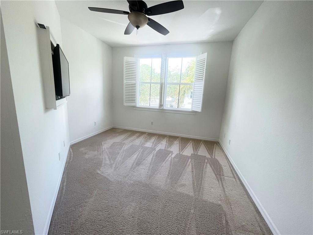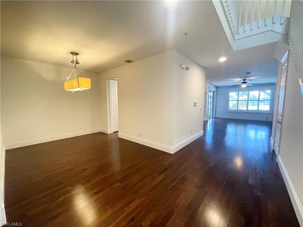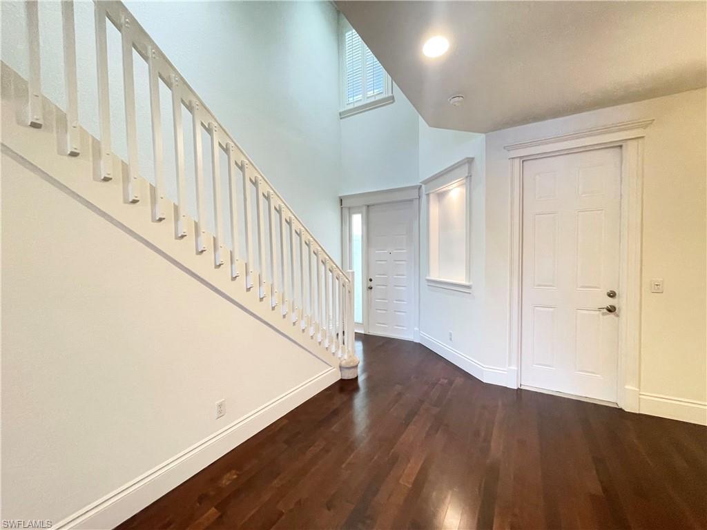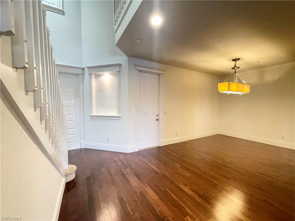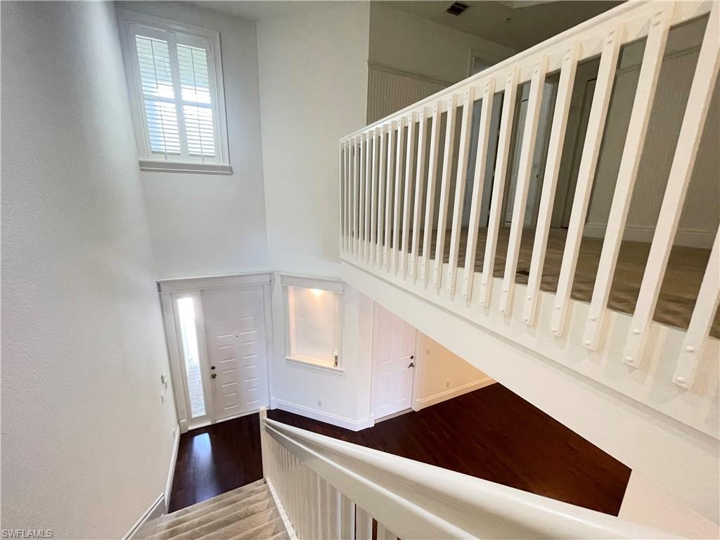 Now offered is a well cared for Townhome, 3 bedrooms, 2.5 bathrooms located in North Naples with easy access to shopping, Dining, schools and travelling. Low Fees, and move-in ready. The open style Kitchen has been updated with a newer refridgerator and Stove, and Quartz countertops. Flooring is wood throughout on first floor, Expresso colored and white Plantation shutters throughout this home. Garage is oversize, 2 car. Driveway can also park 2 cars as well. There is a New Water heater, (October, 2025). Living quarters are upstairs, along with a Loft/Multi-purpose area, and laundry room. The Primary BR is large with good Closet space and a accomadating Primary bathroom with Large soaking Tub plus Shower and door on the water closet all with a nice window, light and bright. The other two bedrooms, Guest Bathroom and Laundry Room are synomous in size. Pets are acceptable, but limited to 1 pet, 40 lbs. Mariposa is known for its large square footage. Come and see for yourself!